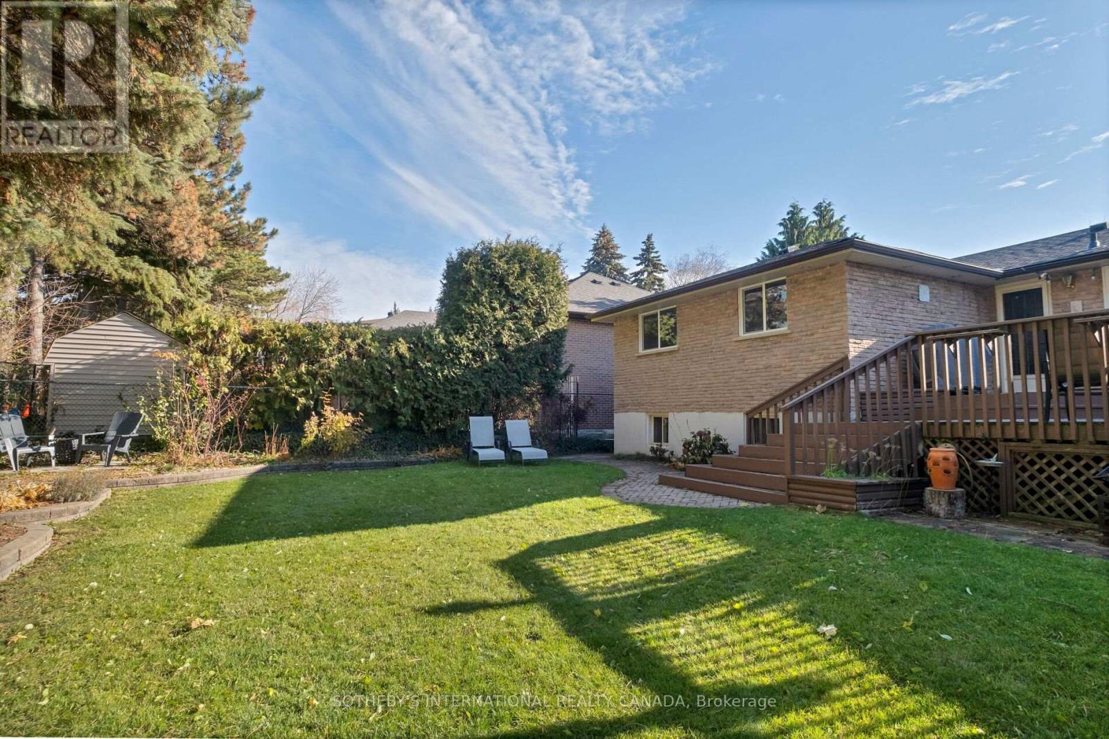 Welcome to 36 Shieldmark Crescent, a beautifully updated 3+1 bedroom, 3-bath home nestled on a quiet, tree-lined crescent in one of Thornhill's most desirable neighbourhoods. Step inside and experience designer finishes throughout: matte-finished hardwood floors, smooth ceilings with pot lights, custom trim and crown mouldings, and Hunter Douglas window coverings that elevate every space. The updated eat-in kitchen boasts granite countertops and flows seamlessly into bright, open-concept living and dining areas-perfect for entertaining. The serene primary suite offers a private retreat with a walk-in closet, custom built-ins, and a spa-like ensuite. Downstairs, the fully finished lower level features a separate entrance, a cozy family room with a custom wall unit and gas fireplace, and versatile space ideal for an in-law suite, home office, or future rental opportunity. Outside, perennial gardens frame the home, creating a tranquil four-season setting. The backyard is a private oasis-lush, serene, and designed for relaxation. The garage is also wired for EV charging. Location is everything: Minutes to Highway 407, world-class dining, The Thornhill Club, community centres, Uplands Golf & Ski Club, ravines, walking trails, and parks. Enjoy endless recreation and the convenience of the future TTC subway station at Yonge & Royal Orchard-all just minutes away. Furniture, lawncare and cleaning service can be included. Move in and make it yours. (41999430)