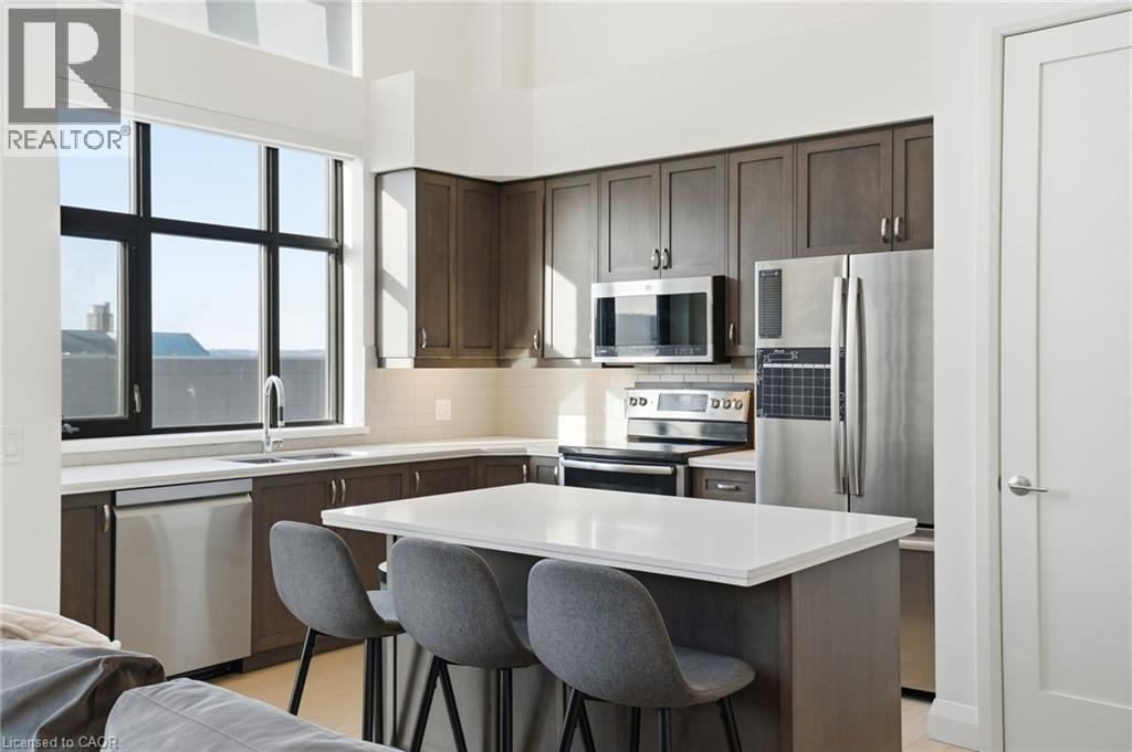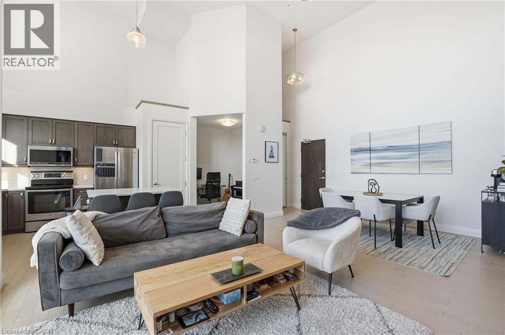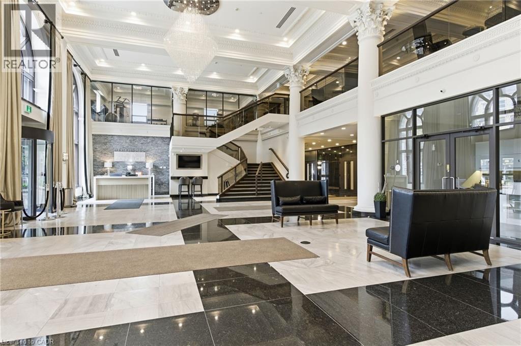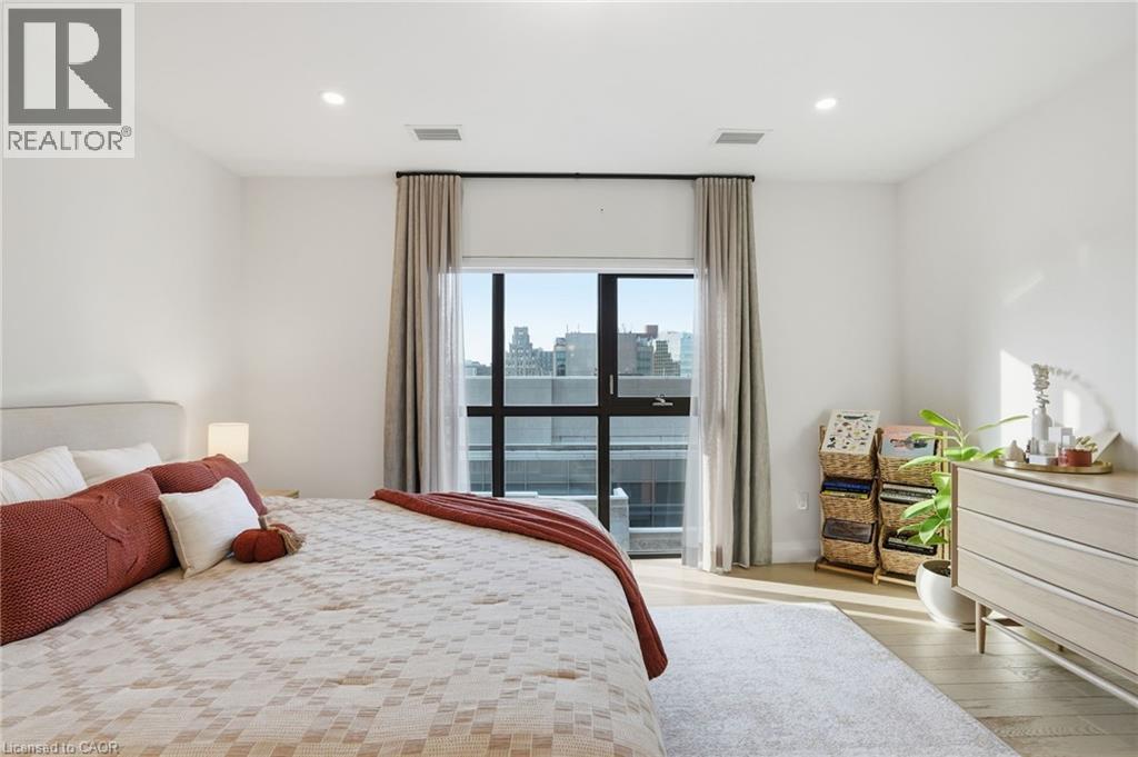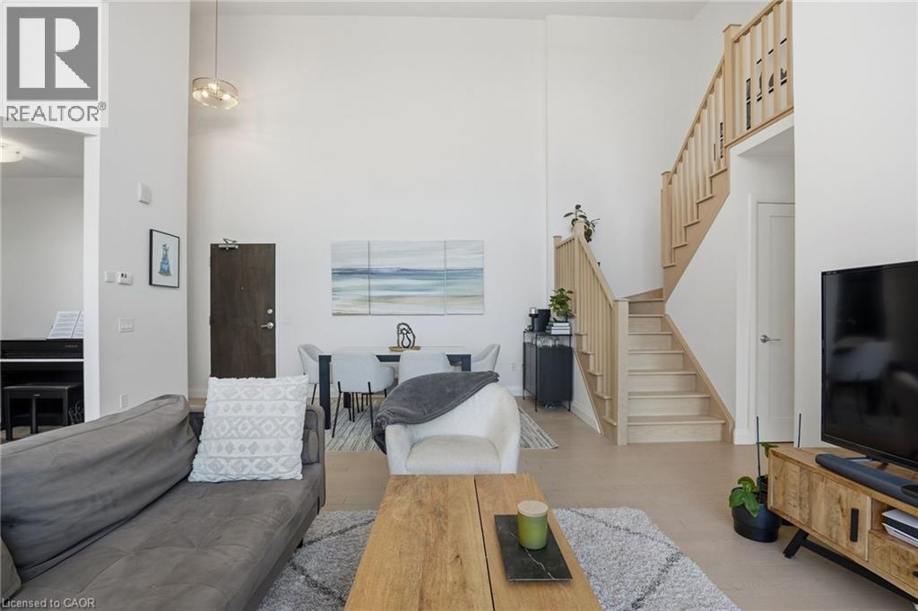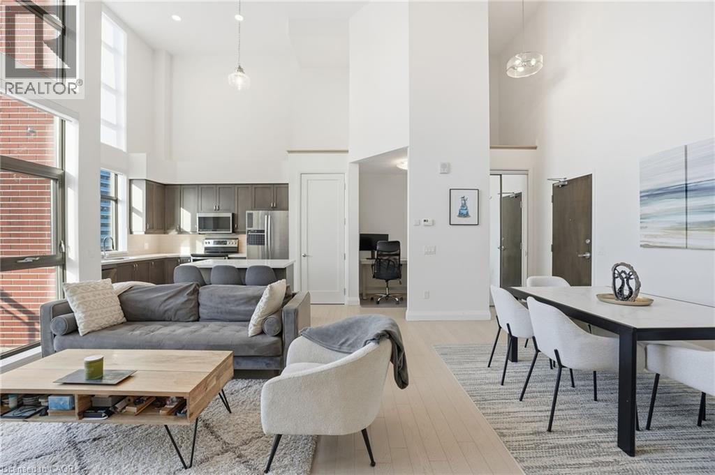 Step into elevated city living in this rare two-storey 2-bedroom, 2-bathroom, plus den lower penthouse at the iconic Residences of Royal Connaught. This 1,267 sq ft west-facing suite features dramatic 18-foot ceilings, expansive floor-to-ceiling windows, and breathtaking, unobstructed views of the Escarpment, Gore Park, and Hamilton Harbour. The main level offers a bright open-concept living space with a den, laundry, and a spacious primary bedroom complete with walk-in closet and ensuite privileges, delivering true one-floor convenience. Upstairs, the second bedroom boasts its own 4-piece ensuite, ideal for guests or family. Thoughtful upgrades include quartz countertops, under-cabinet lighting, engineered hardwood floors, and custom motorized blinds. Enjoy your private balcony, ample storage throughout, and access to premium amenities including a rooftop terrace with fireplace and BBQs, party and media rooms, and a fully equipped gym. Starbucks is conveniently located between the two lobbies, just an elevator ride away. Unbeatable location steps to the GO Station, James Street North, King William Street, the Art Gallery of Hamilton, the Farmers’ Market, and more. Includes underground parking and a storage locker located right next to the unit. Luxe, location, and lifestyle all in one. (70079369)