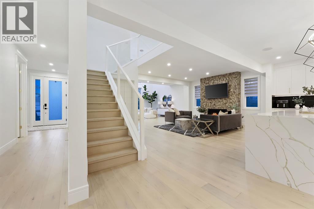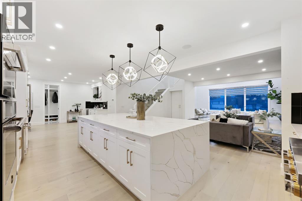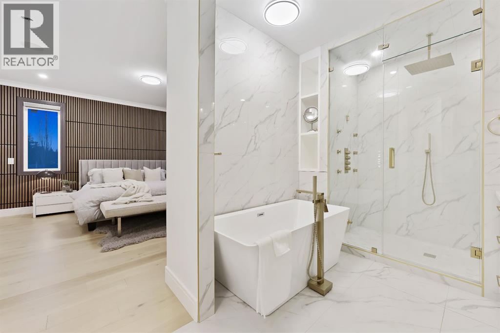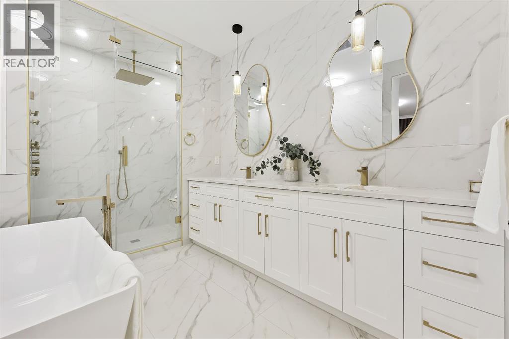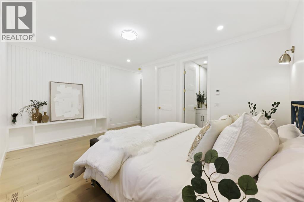 This Modern Art Piece, an exceptional custom-built luxury home located in the heart of Brentwood. Meticulously constructed by the builder as a Modern Master Piece, this home reflects uncompromising craftsmanship, premium materials, and thoughtful design throughout. Offering 7 bedrooms, 5.5 bathrooms, and over 3,600 sq. ft. of well designed living space, plus a fully developed legal basement suite with a private, separate walk-up entrance, This property delivers outstanding versatility and value. The striking contemporary exterior, showcases contemporary brick and Hardie Board finishes, enhanced by professional landscaping and elegant exterior accent lighting. Step inside to be greeted by a dramatic 19-foot ceiling in the main living room with an open-to-below second-storey design, creating a bright and expansive atmosphere. The grand living space is anchored by a custom gas fireplace with stone façade, seamlessly flowing into the gourmet kitchen, with an expensive 10-foot quartz waterfall island which serves as the centre piece perfect for entertaining, complemented by top-of-the-line Jen Air appliances and refined finishes. Adjacent to the kitchen is a stylish dining nook with custom wall paneling, while a thoughtfully designed bar offers an ideal space for evening hangouts or serving guests. A private back entry leads to a functional mudroom. The main floor also features a bedroom with its own 3-piece ensuite, ideal to entertain guests, or for extended family needs, along with another 2-piece designer powder room. Upstairs, enjoy an open bonus room overlooking the living area, framed with modern glass railings, The upper level boasts two luxurious primary bedrooms, each with spa-inspired en-suites featuring floor-to-ceiling ceramic tile, in-floor heating, and premium lavatories throughout. one with steam shower, and a free standing soaker tub, The fully developed basement with 9ft ceiling, includes a legal suite with two bedrooms, a full bathroom, a kitc hen with shaker-style cabinetry, complete appliance package, and its own full-sized washer and dryer, The other portion of the basement offers roughed-in plumbing, ready for Customization to suit your lifestyle needs. The home is equipped with three separate furnaces, providing efficient climate control for each level. The backyard features two single-car garages, along with a finished lawn to complete the outdoor space.The location is truly unbeatable—just steps from Brentwood LRT Station, Brentwood Village, Northland Mall, and K–12 schools. The University of Calgary is only minutes away, and quick access to Crowchild Trail ensures effortless commuting while remaining tucked away ,completely peaceful and quite, An outstanding property with exceptional build quality, modern luxury, and an unbeatable lifestyle in one of Calgary’s most sought-after communities. (31560109)