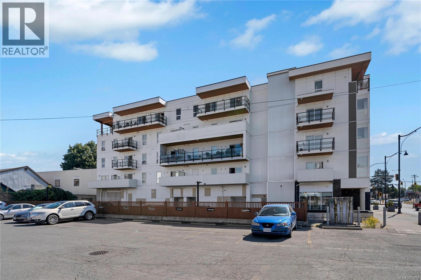 Experience elevated living in this stunning top-floor condo of Dakova Square, located in the heart of downtown Duncan. This spacious 1,149 sq ft unit is one of the largest unit in the building and offers 2bed, 2 bath, and a den, large balcony - perfect for enjoying beautiful sunset views from the comfort of your living room. Thoughtfully designed with in-suite laundry, secure underground parking, and modern finishes throughout, this top-floor retreat combines comfort, convenience, and a vibrant urban lifestyle. Don't miss this rare opportunity! Floor plan/measurements by Stellar Real Estate Marketing, buyer to verify if important. (30303159)