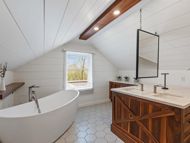 Située en cul-de-sac au bord de la rivière Achigan, cette propriété allie charme ancestral et style contemporain. Agrandie en 2013-2014 avec un espace vitré spectaculaire et un garage double, elle offre une vue imprenable et une belle lumière naturelle. Trois chambres à l'étage, une au sous-sol, deux salles de bains dont une refaite en 2019, planchers chauffants et foyer au bois. Terrain intime de 15 745 pi². Fenêtres remplacées dans l'ancienne section. Un cadre paisible et inspirant à Saint-Roch-de-l'Achigan. (52294941)