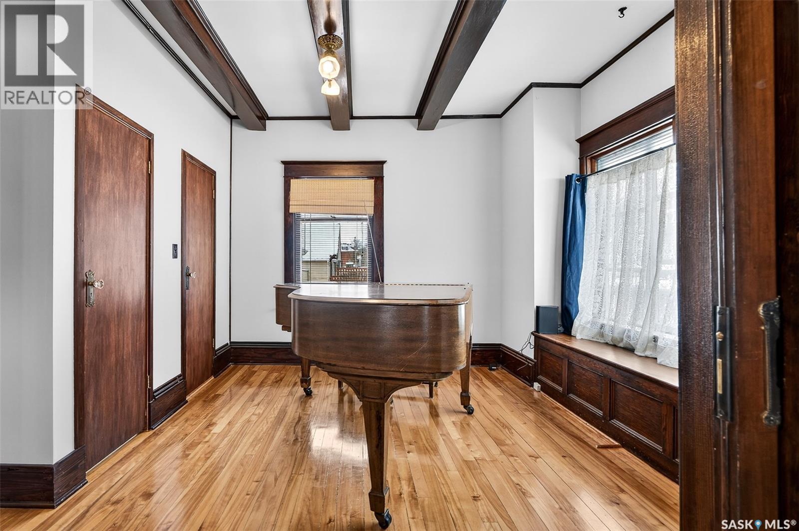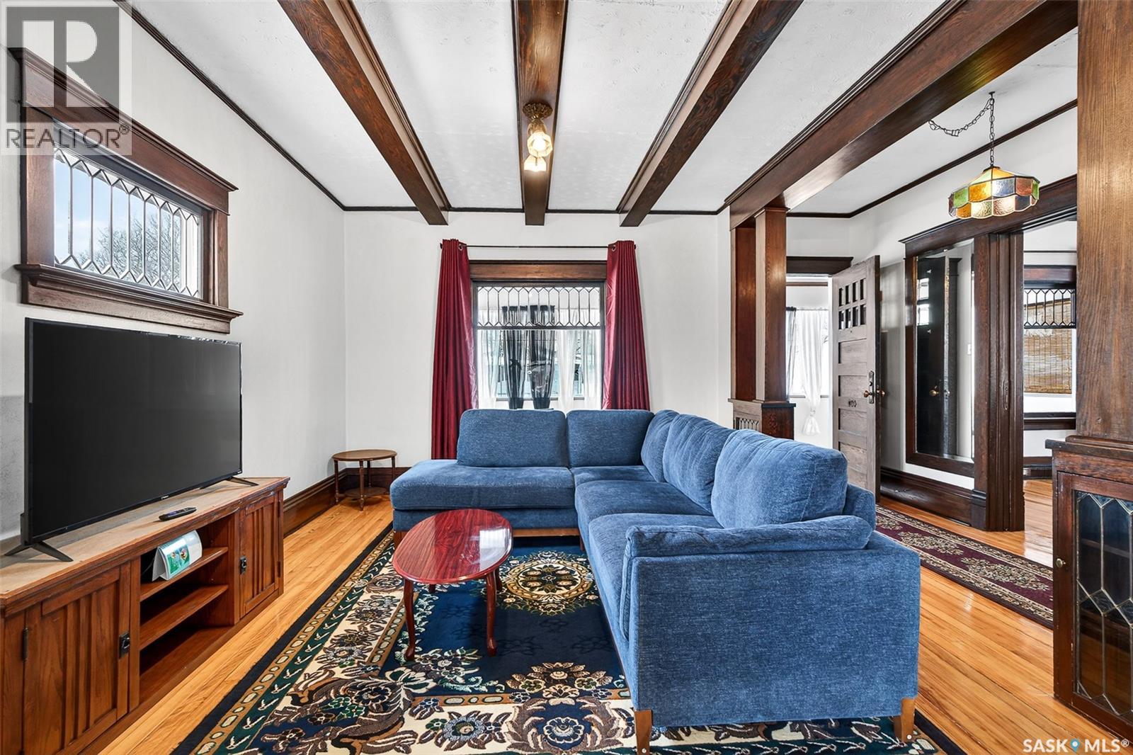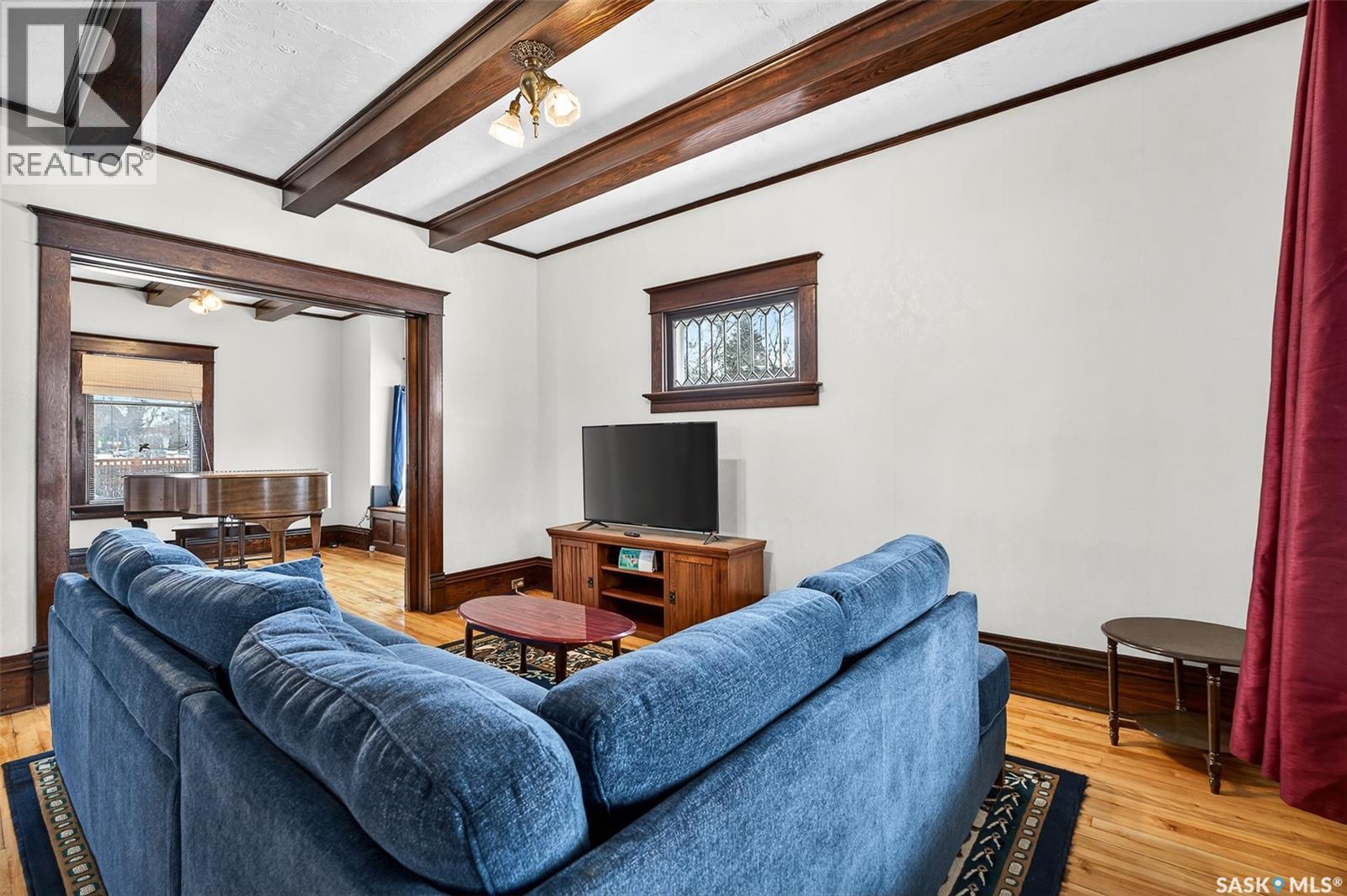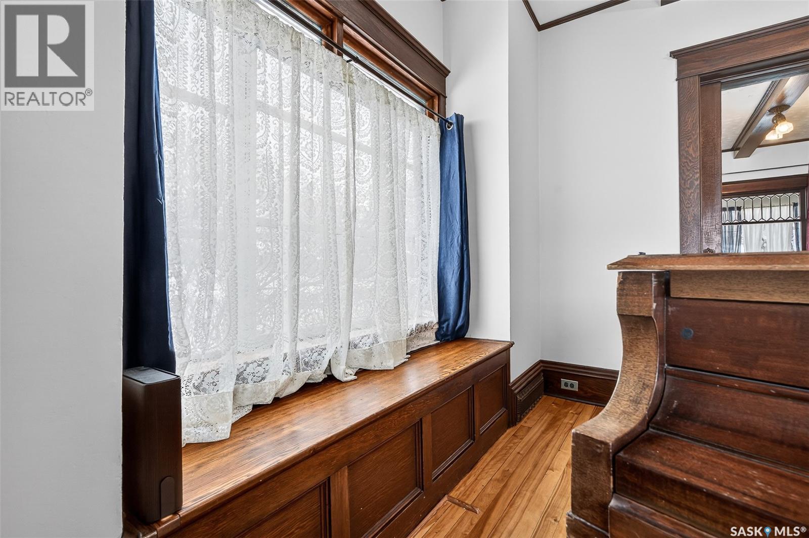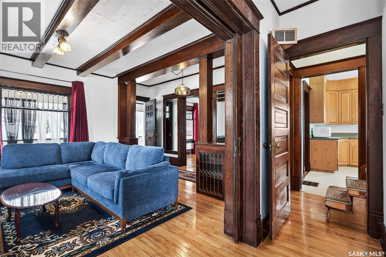Beautiful character home in the heart of Moose Jaw! This 3 bed, 2 bath home hosts over 1800 sq ft, sits on a 60' x 135' lot and holds so much historical charm. Beautiful maple hardwood floors throughout, wood trim and beams, original pocket doors, beveled windows, and 9' ceilings create a warm and welcoming place to call home. You are welcomed into a heated front veranda, perfect for cozying up with a book and for all your coat/shoe storage. Step in and be wowed by the architecture that has been preserved so well here. You have a large living room with built-in bookcases, opening up to a secondary living space that features an 1800s baby grand piano (included with the home). You have a large formal dining room with built-in ledge off of your spacious kitchen which hosts plenty of cabinetry. A 2-pc bath completes this level. The 2nd level hosts 3 good-sized bedrooms and a 4-pc bathroom. Downstairs you will find an additional family room, a large laundry room, storage room and cold room. This house holds so much space for all your hobbies and is truly a great place to come home to at the end of a long day. The property also comes with a detached garage, shed, and beautiful landscaping (including established raspberry bushes)! The location offers convenience as you are within walking distance to all your amenities and can enjoy living within the heart of historical downtown Moose Jaw, as well as within walking distance to multiple schools, churches, etc. This home has had updated shingles, siding, electrical and plumbing over the years. Recent inspection report will be available for prospective buyers to view! Book your showing today! (29306598)