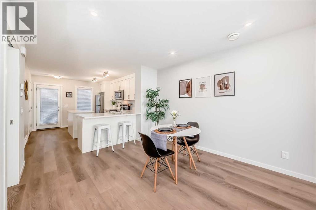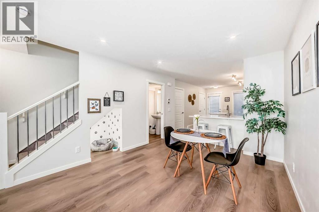 Meet your elevated escape! This like-new, pet-friendly townhome offers chic, low-maintenance living with low condo fees and almost 1400 sq ft of thoughtfully designed space. The home features 2 spacious primary bedrooms, each with its own ensuite, plus a convenient main-floor powder room and a versatile bonus room - perfect for an additional bedroom, home office, kid's play area, etc. The bright, modern interior of this beautiful home showcases white cabinetry and white quartz countertops throughout plus stainless steel appliances, an upgraded kitchen backsplash, and a kitchen island that adds extra storage and workspace. A breakfast bar makes casual meals easy, while a dedicated dining room is perfect for entertaining. Upgraded window coverings and a smart mix of laminate and carpet flooring will make a stylish statement that you can be proud of. The upper-floor laundry adds everyday convenience while central air conditioning keeps things comfortable year-round. Relax and finish the day on your large, private rooftop patio with mountain view - ideal for enjoying summer evenings with family and watching sunsets with that special someone. Located in amenity rich Seton, your new home is walking distance to numerous restaurants, dental clinic, pharmacy, nail salon, gas station, gym, playground and the Seton Homeowner's Association. Immediate possession, Move-in ready, 'Like-New' condition, and packed with an array of lifestyle perks, this home truly lives large! (31559768)