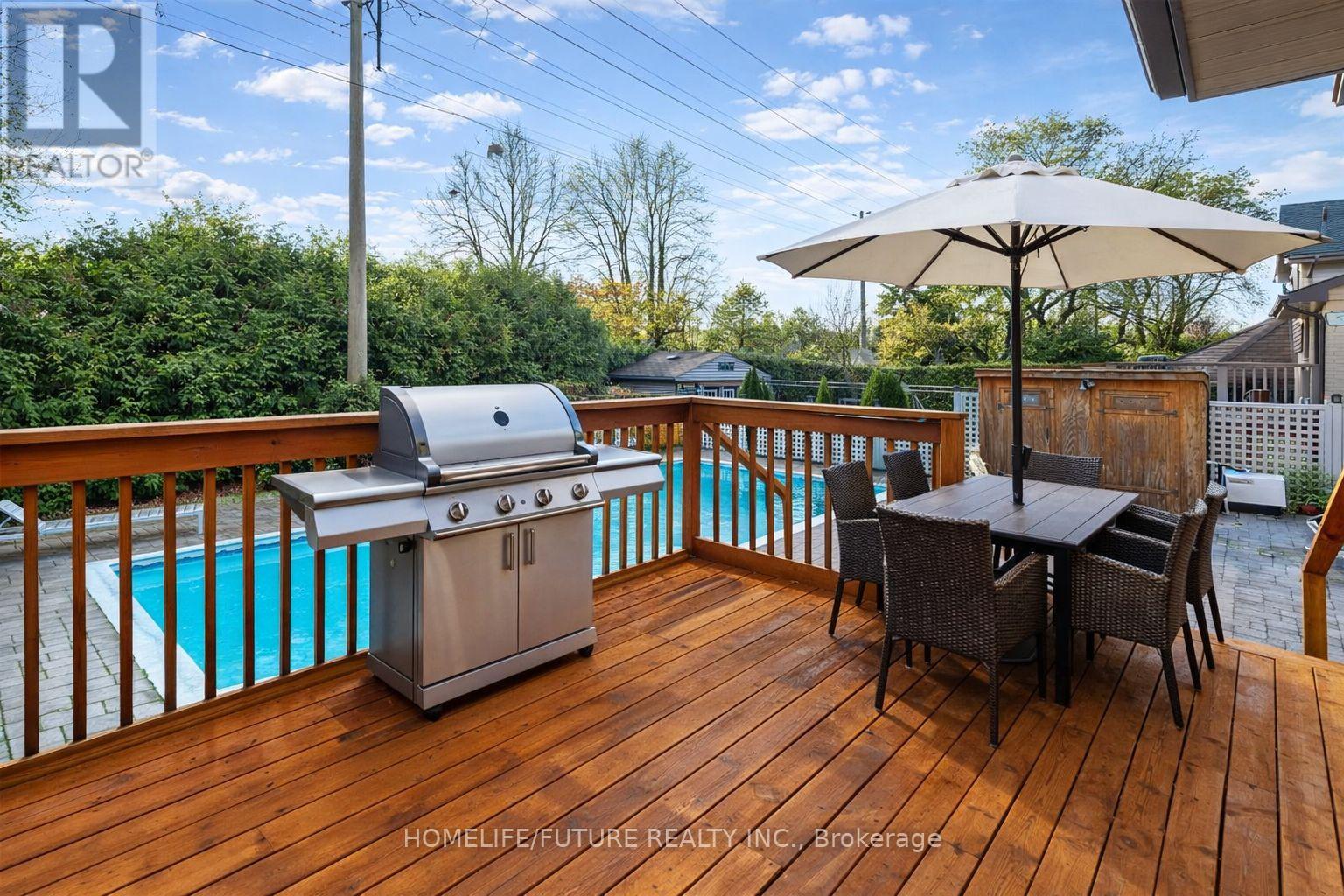 Beautiful detached family home set on a generous 55-ft lot in a sought-after neighbourhood. Enjoy a private inground pool and professionally landscaped backyard-perfect for relaxing or entertaining. The stunning new kitchen (2026) features quartz countertops and backsplash, an undermount sink, and stainless steel appliances. Bright and inviting living room with a gas fireplace, plus a spacious family room with a wood-burning fireplace and a walkout to the deck, offering multiple areas for lounging, dining, and entertaining. Hardwood and laminate flooring throughout the main and second floors. Ideally located within walking distance to transit, parks, schools, and shopping. Major updates include a furnace (2021), tankless water heater (2021), attic insulation (2021), new roof (2025), exterior paint (Oct 2025), sealed driveway (Oct 2025), fresh interior paint, a 200-amp electrical panel, Ring video doorbell, and Hornbill smart lock. (42000693)