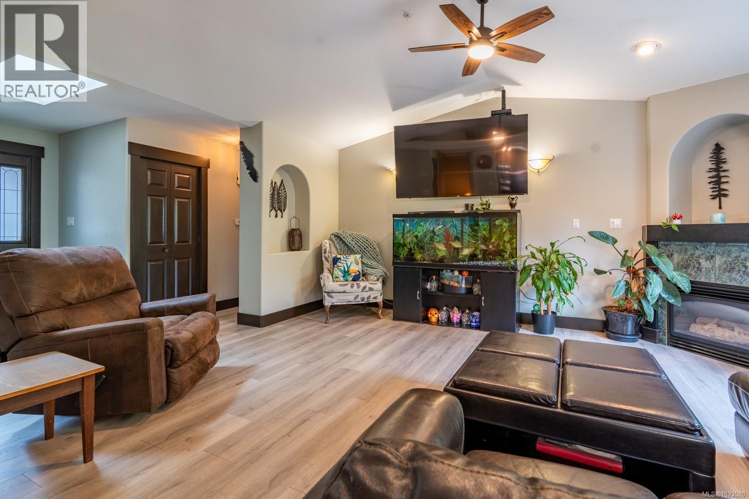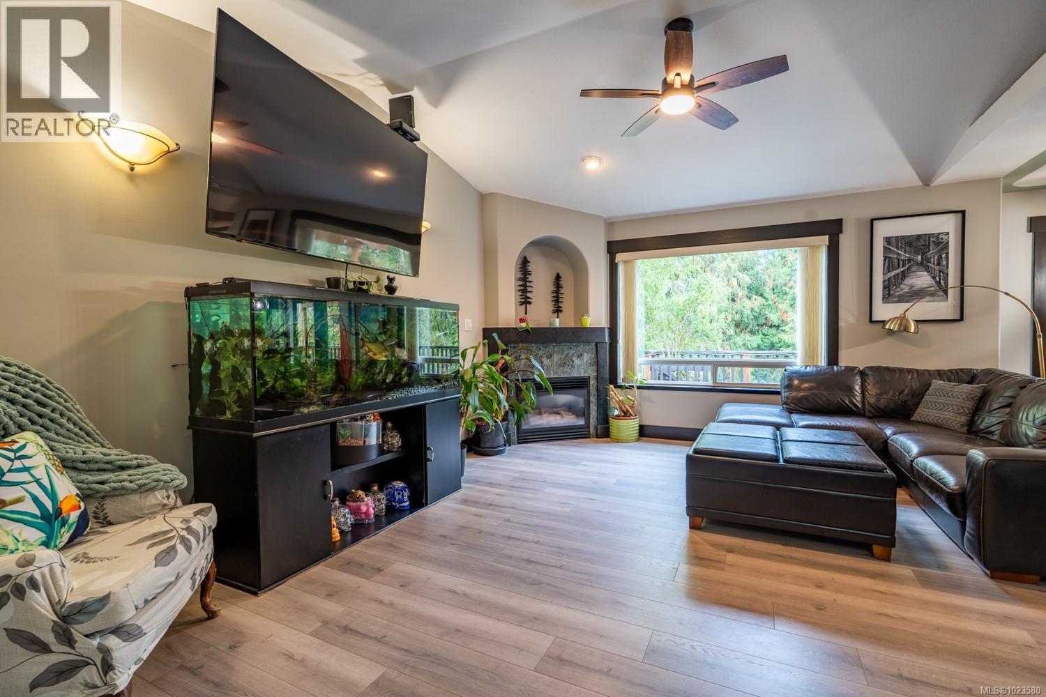 Open House Jan 25th from 10:00 am until Noon. Welcome to 1941 Kells Bay, a beautifully maintained 4-bed, 3-bath home in Cinnabar Valley on a no through road. This bright, spacious residence features an open living area with a cozy gas fireplace and an updated kitchen with quartz countertops, stainless-style appliances, and a pantry. The primary suite offers a walk-in closet and 4-piece ensuite, with two additional bedrooms and a full bath completing the main floor. The redone basement adds versatility with a large rec room, bedroom, 4-piece bath, laundry, and storage—easily suited for family or income potential. Enjoy the private patio backing onto Richards Marsh Park, fresh paint, new laminate flooring, newer roof, & a storage shed. Close to schools, parks, & amenities, this move-in-ready home blends comfort, updates, & a prime location in one of Nanaimo’s most sought-after neighbourhoods. All measurements are approx, please verify if important. (30303333)