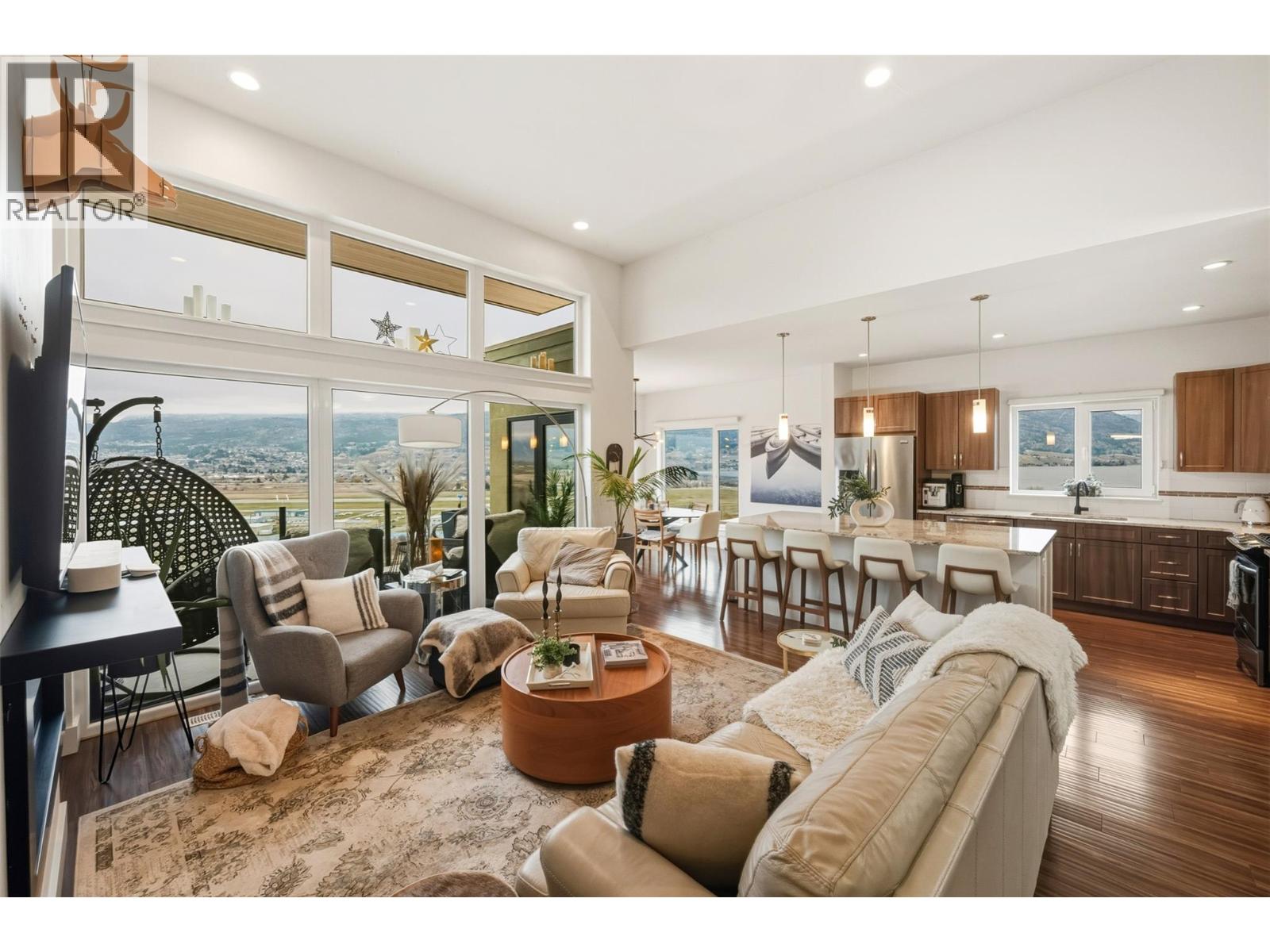 CONTINGENT. Oh My! The Views! Enjoy the panoramic Skaha Lake and City of Penticton views from this gorgeous modern contemporary home with a stunning location within Skaha Hills. This 4 bedroom, 3 bathroom home plus den is sure to please the entire family. The Main Floor features an open concept kitchen, living and dining area, spacious primary room with walk in closets and a 4 pc bath with walk in shower, the second bedroom, the main 4pc bath and a den/office with a stunning view. Downstairs you'll find 2 more bedrooms, another 4pc bath, the large utility/storage room and a spacious open concept living room/rec room. The downstairs could quite easily be converted into a private suite or even an Airbnb for added income. It's the large decks that have made Skaha Hills famous and this one is spectacular. The panoramic views of the city, the lake, the mountains and the coming and goings at the airport allow for hours of sightseeing. No view day or night ever seems to be the same! These well built Greyback homes are Provincial Property Tax free and have a secure 99 year prepaid lease. Skaha Hills features resort amenities; pool and hot tub, weight room and gym, tennis and pickle ball courts, Play Winery, hiking and biking trails and our own Dog Park all for a low HOA fee of $196 a month. Consider joining the Hill and basking in all the Okanagan Lifestyle can throw your way. Book your own private showing today. (39653270)