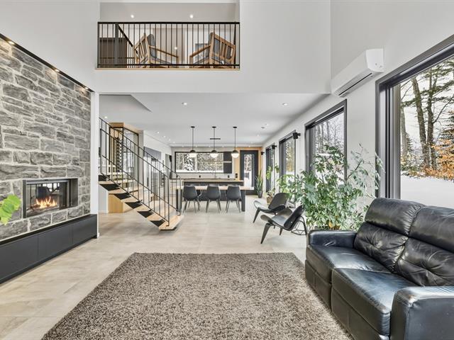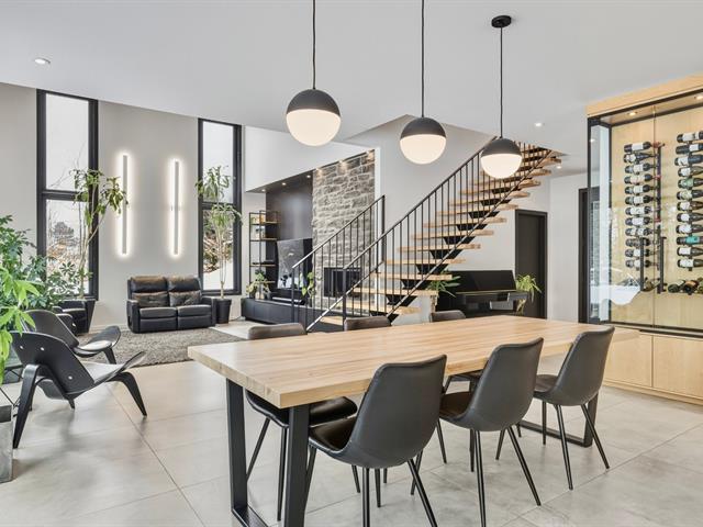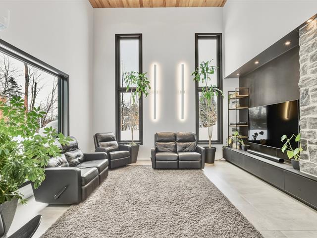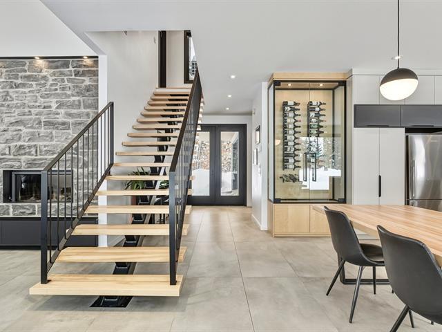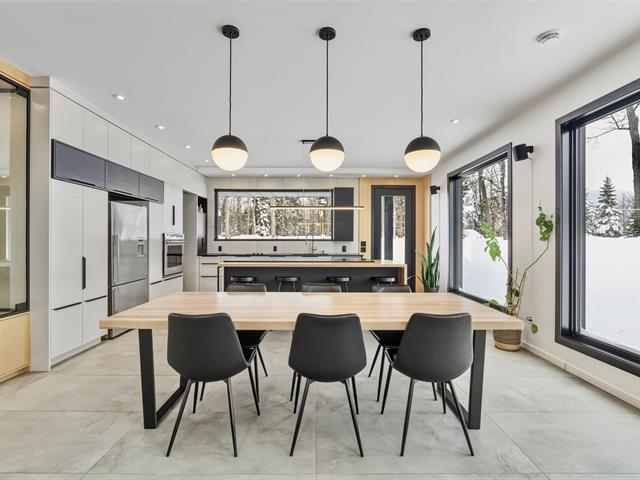 NOUVEAU ET DIGNE D'UNE REVUE ! Splendide propriété moderne, construction 2020 située sur un grand terrain intime de 32 220 pieds carrés, bordé d'arbre mature. Propriété avec fenestration et luminosité abondante et une liste impressionnante d'extras et d'options, tel : garage double, garage détaché à l'arrière, piscine creusée chauffée et à l'intérieur : plancher chauffant, électroménagers encastrés, cellier, 2 thermopompes, foyer, garde-manger walk-in, 2 douches en céramique et beaucoup plus. Située à proximité de plusieurs services, cette propriété sera assurément un coup de coeur. À VOIR! (45387408)