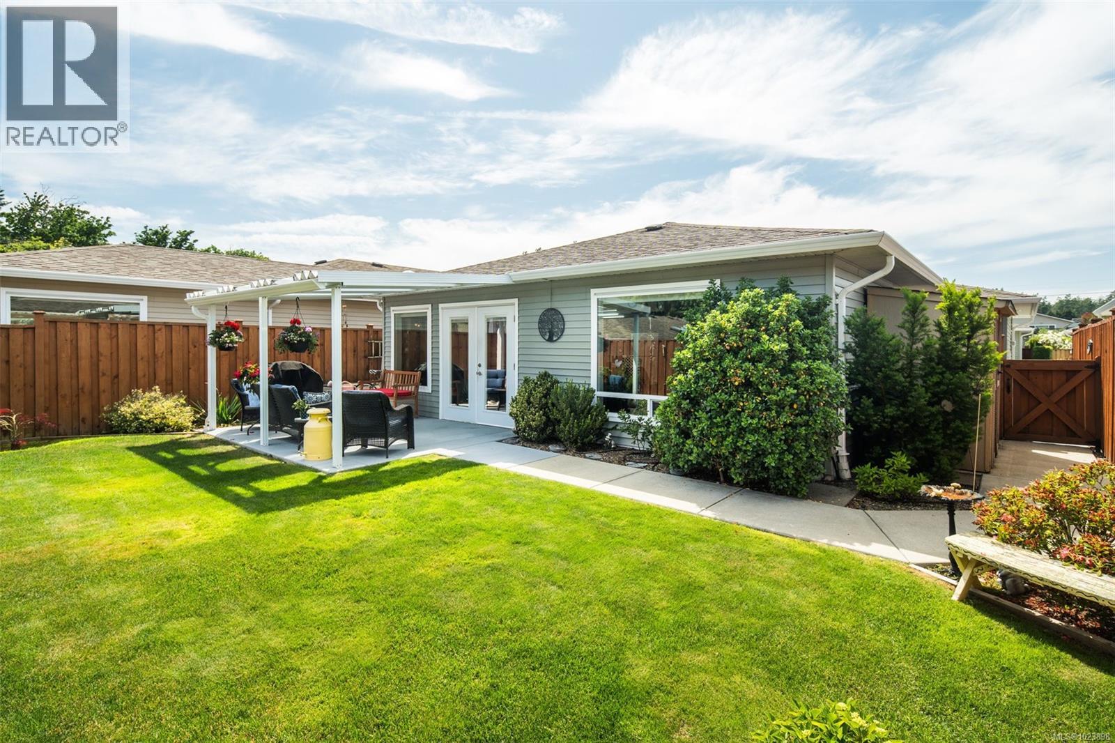 Discover Hummingbird Green Village, an exclusive haven for those who value beauty, serenity, and discretion.This 2-bedroom, 2-bathroom home blends modern elegance with practical design.The open-concept layout features an accent wall suited for your finest pieces. Lush greenery complements the impeccably maintained lawn, cared for with the owner’s golf-honed patience and precision. Wider doorways, a flush entrance, and an accessible ensuite shower ensure ease of mobility, rare in this complex. The kitchen offers sleek countertops, premium appliances, and generous storage. Engineered hardwood flooring, vaulted ceilings, architrave moulding, and staircase-style wiring elevate the home’s efficiency and style. The covered patio leads to a secluded backyard, naturally screened for privacy and free from prying eyes. Minutes from BC Ferries, the airport, the beach by the Sidney Pier, and a direct highway to downtown Victoria, travel is effortless. Claim your place at Hummingbird Green Village. (30303999)
