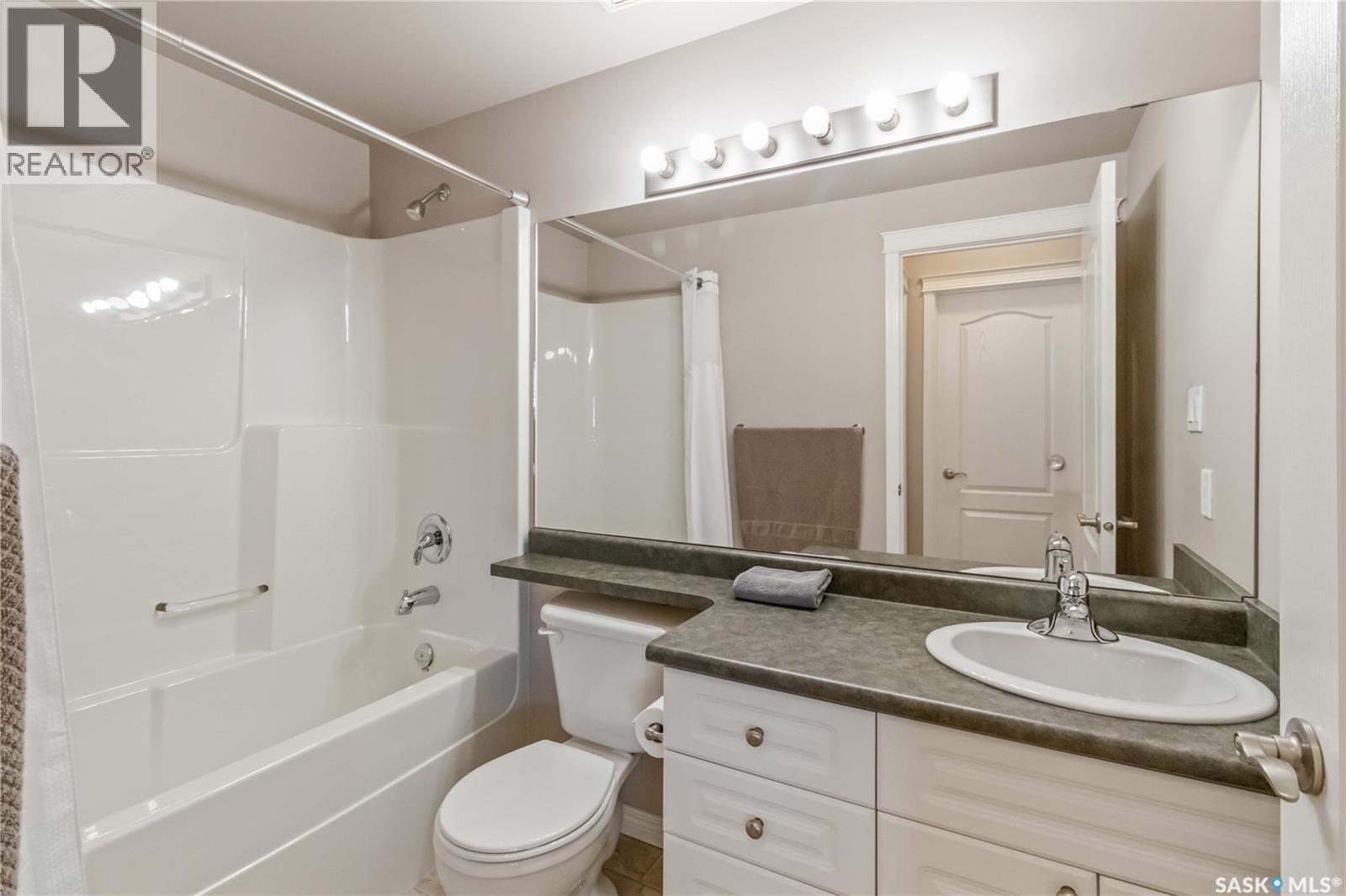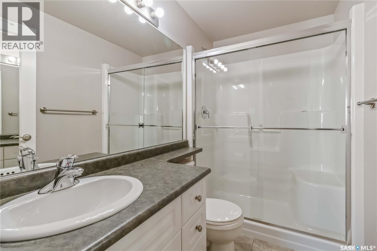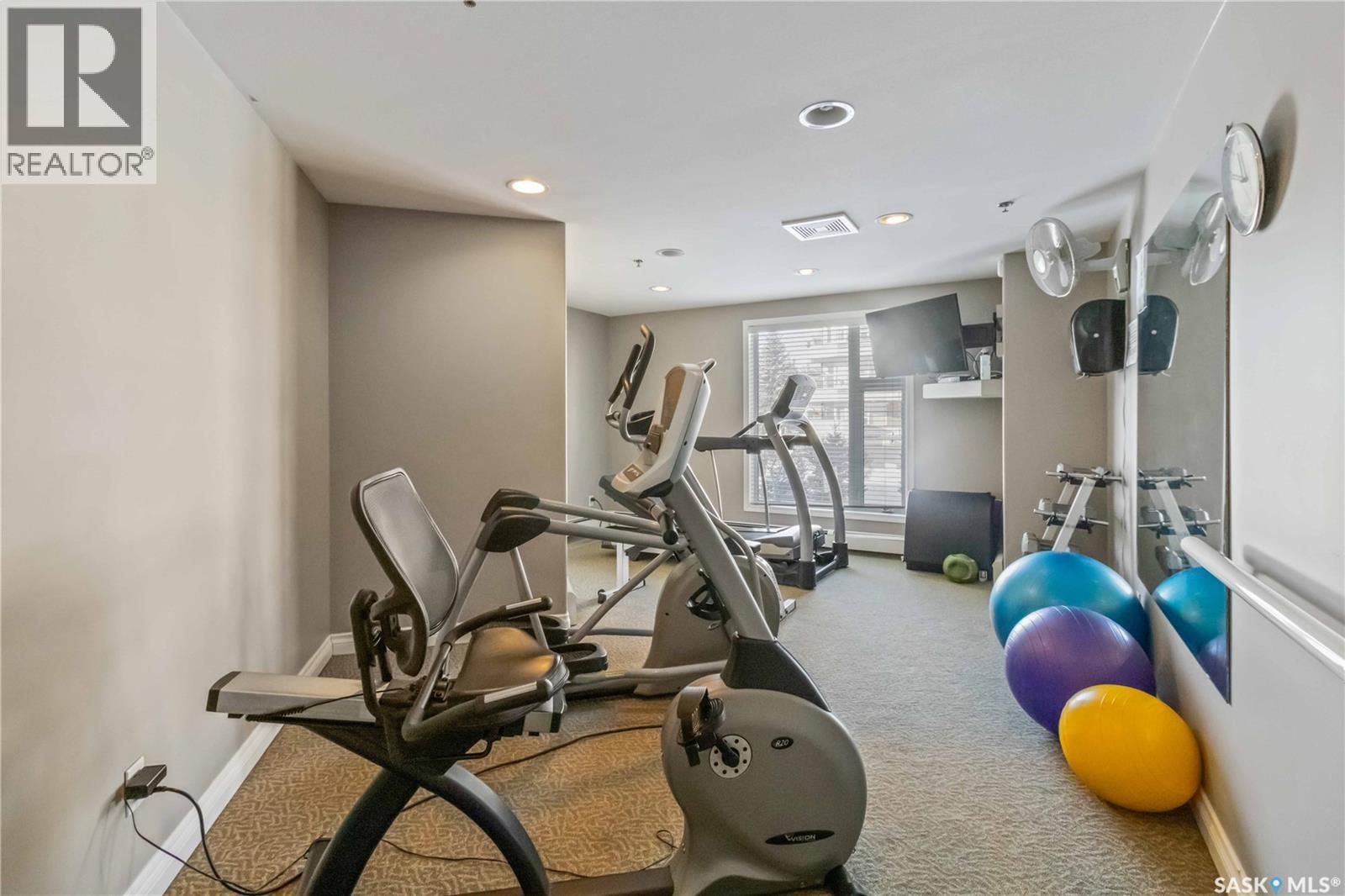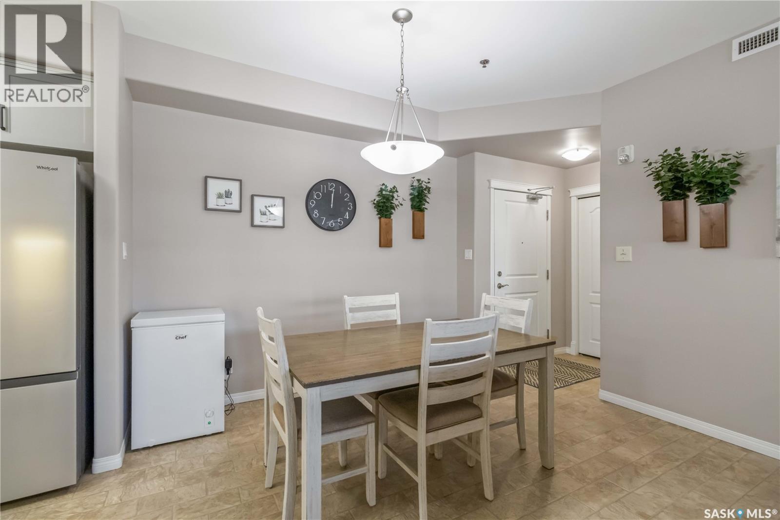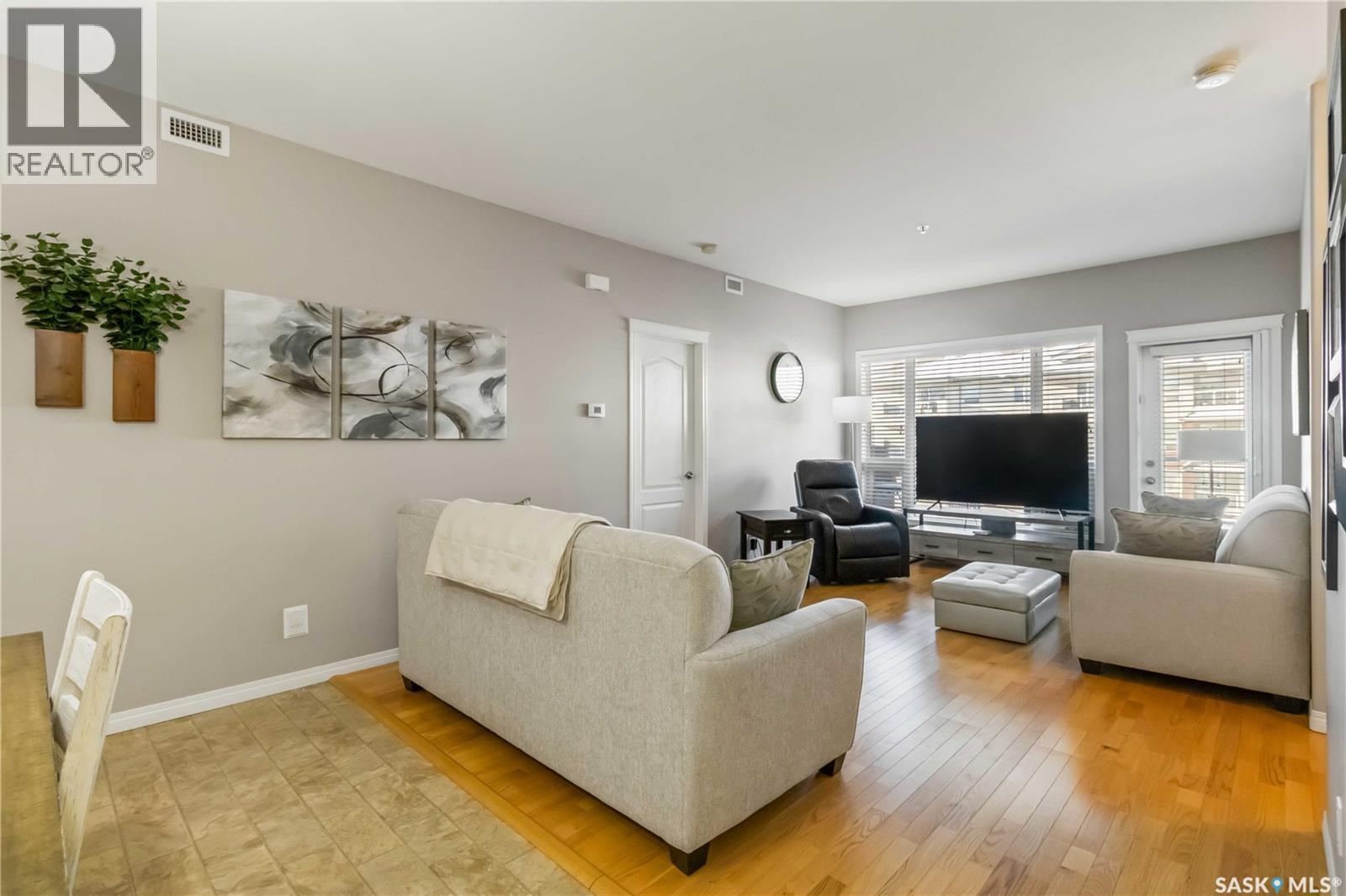 Welcome home to this bright and spacious two bedroom, two bathroom third level condo, located in a quiet building with elevator access and underground parking for accessibility and convenience. This well designed unit has expansive windows that fill the space with natural light throughout the day. The fully renovated kitchen is a true highlight, professionally completed by Superior Cabinets featuring full extension soft close drawers, quartz countertops, and upgraded appliances, including in suite washer and dryer. The central air conditioning unit was replaced for additional comfort and peace of mind. The primary bedroom offers an excellent retreat with a generous walk in closet and a three piece ensuite. Engineered hardwood flooring flows through the living room and bedrooms, adding warmth and style to the space. Step outside onto the west facing balcony to enjoy open views and the convenience of a natural gas BBQ line, perfect for entertaining or relaxing evenings at home. This well kept unit and building offer a high quality living experience, complete with one heated underground parking stall and your own private storage room. Ideally located close to Market Mall, schools, and a wide range of amenities, this is an unbeatable location. Do not miss your opportunity to own this bright, upgraded, move in ready condo. (29307338)