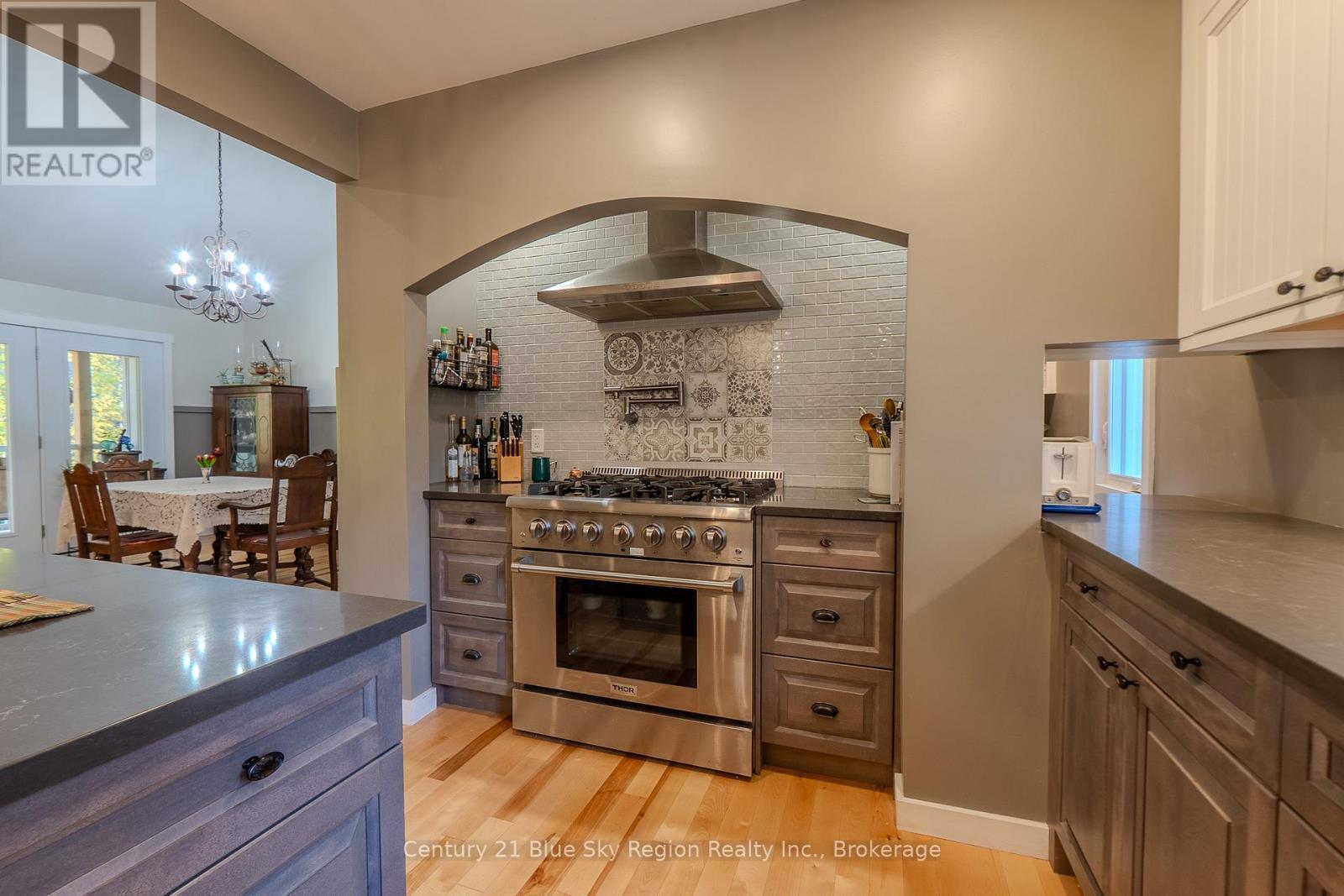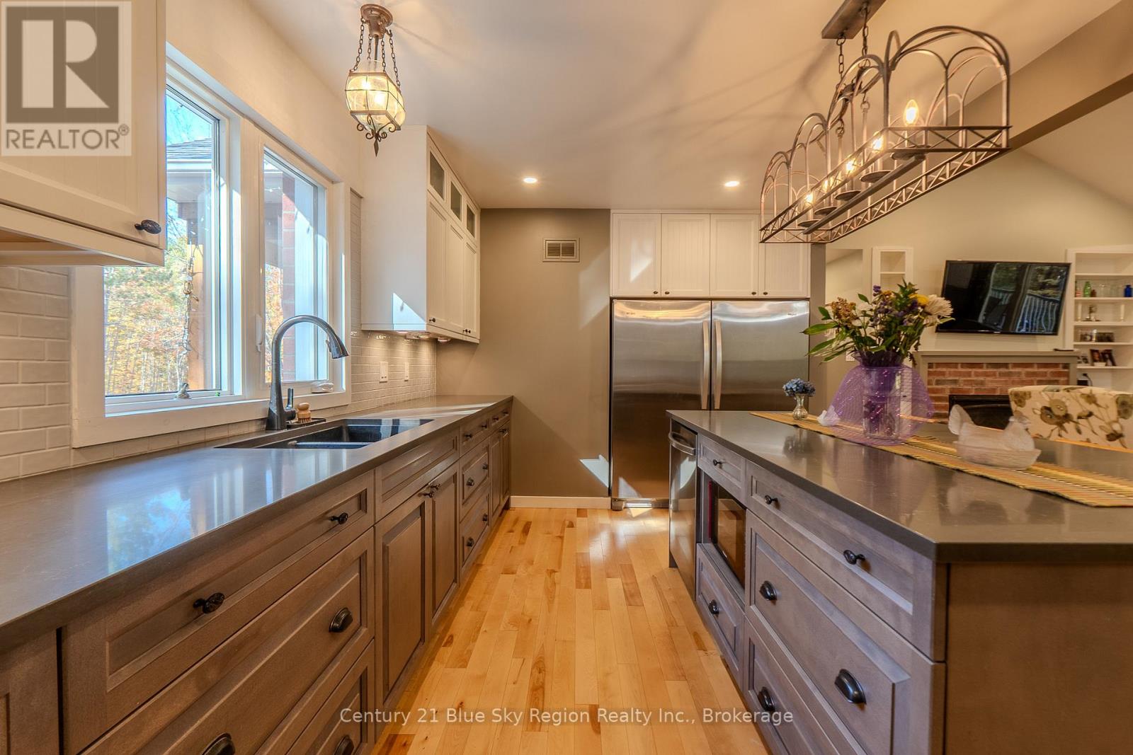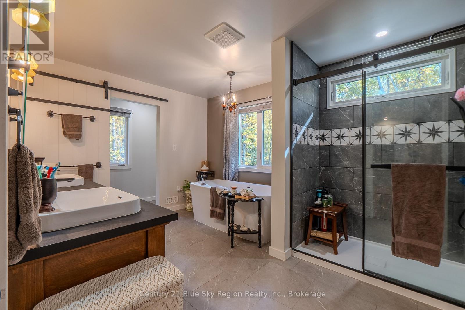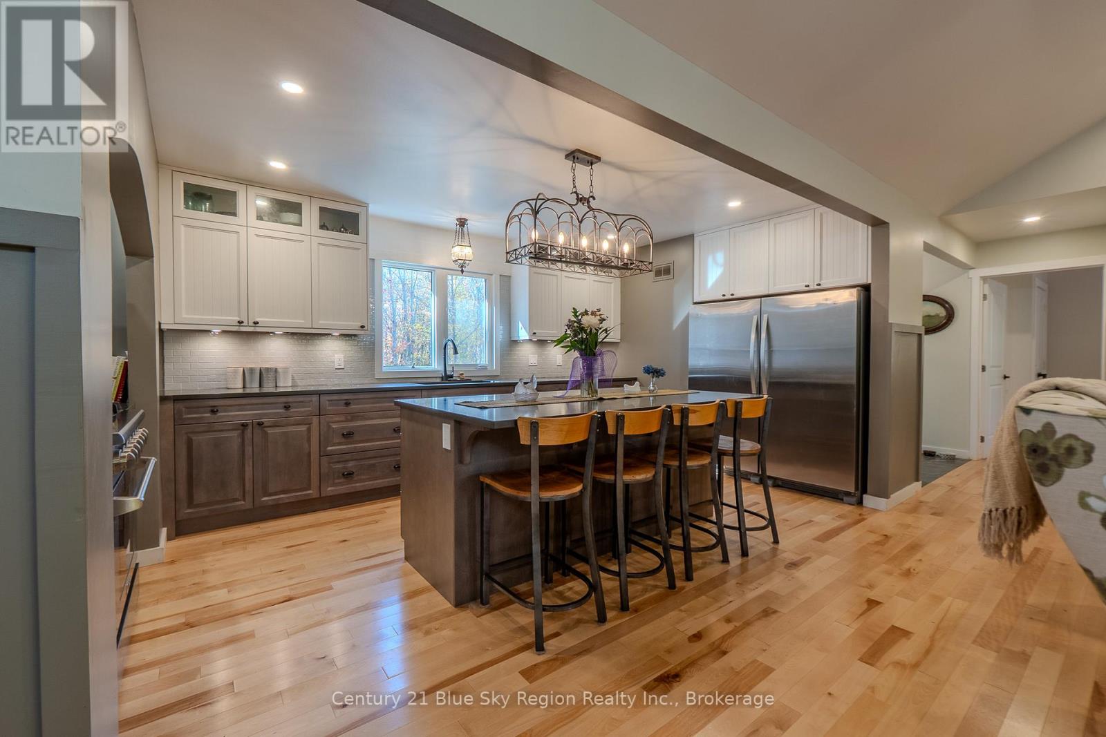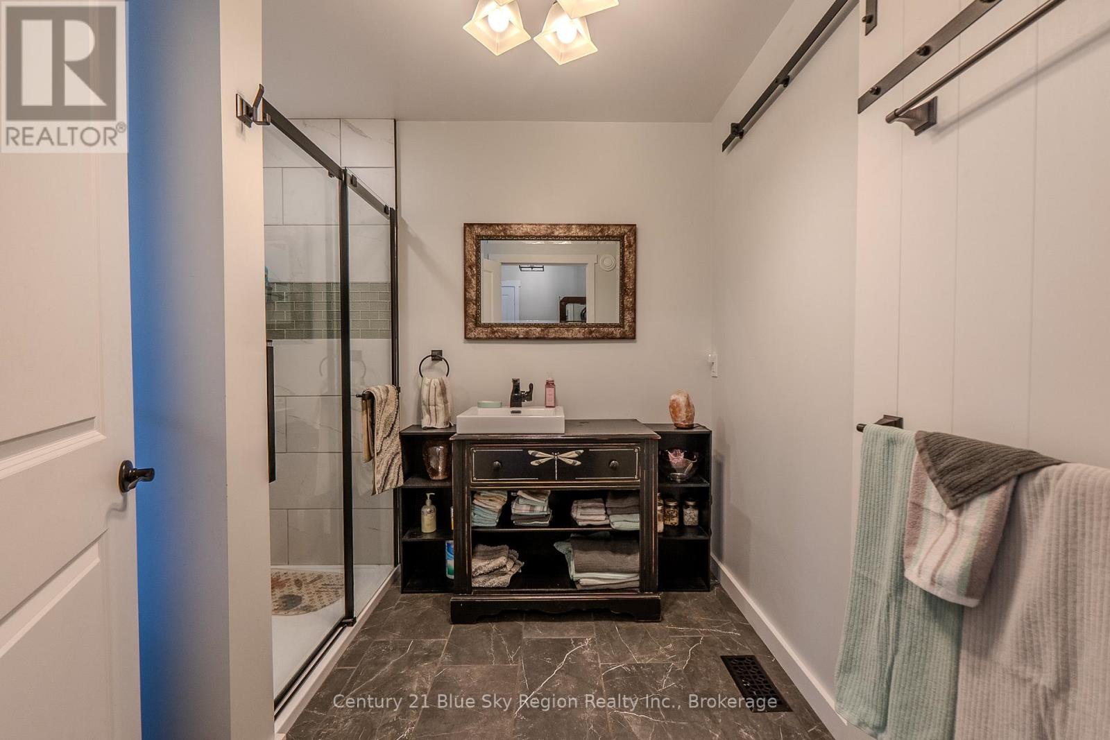 Privately set on nearly 10 acres and 400 feet from the road, this craftsman house was created with accessibility and light in mind. Wide hallways, spacious rooms, and 32"+ doorways. The front porch welcomes you into a spacious, tiled entry. Off the entry is a bright bathroom featuring a unique vanity, walk-in shower, toilet, and a barn-style cheater door leading to a large, well-lit bedroom. The great room features a propane fireplace with built-in storage cabinets and a coffee nook. A terrace door welcomes you to a 10X28 deck with a propane hookup for entertaining and BBQ'ing. The open concept kitchen features full-height uppers, a large island, and Silestone countertops, a tiled cooking area boasting a 36" THOR propane range with a pot filler and adjoining prep-pantry with a baker's pass-through to the kitchen. A side-by-side fridge and freezer finish the kitchen. The Master bedroom features a large walk-in shower, a stand-alone tub, double sinks, and a linen closet. The master suite is completed with an impressive walk-in closet. Descend to the walk-out lower level with storage and central vac located under the stairs. A 2-piece marble floor washroom is at the bottom of the stairs next to another storage/workshop area, and a versatile 14'X24' sewing/exercise room. Large windows and a terrace door lead to the rear stone patio. Flexibility is the word with roughed-in plumbing and doorways that allow for a conversion in a granny suite. The lower level includes a large rec room with wiring for recessed speakers. CAT-5 is fed into every TV space to take advantage of the Fiber internet servicing the house. The basement also features a wood fireplace, kitchenette, 2 bedrooms, a large 3-piece bath, and a terrace door to the patio. The home is heated by a high-efficiency furnace with LifeBreath HRV and cooled by A/C.A full service generator provides power during outages. (42001710)