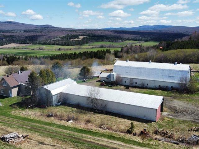 La Patrie (Estrie): 170.84-acre farm offering 45.5 acres of partially drained arable land, renovated 4-bedroom house, and superb view of Mont Mégantic. Functional farm buildings including garage, shed, and barn for approximately 80 cows. 113-acre mixed forest crossed by a stream, ideal for hunting and outdoor activities. A great opportunity for your farming projects or country living. GST/QST must be added to the asking price (53415401)