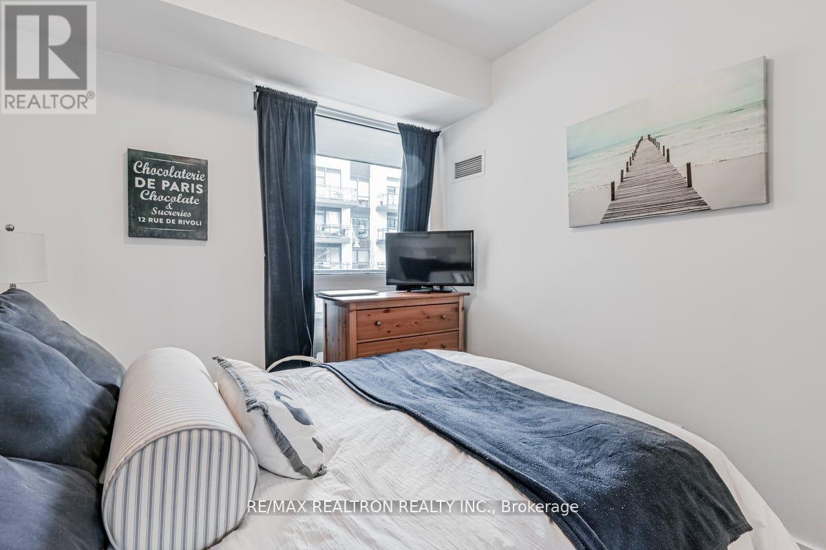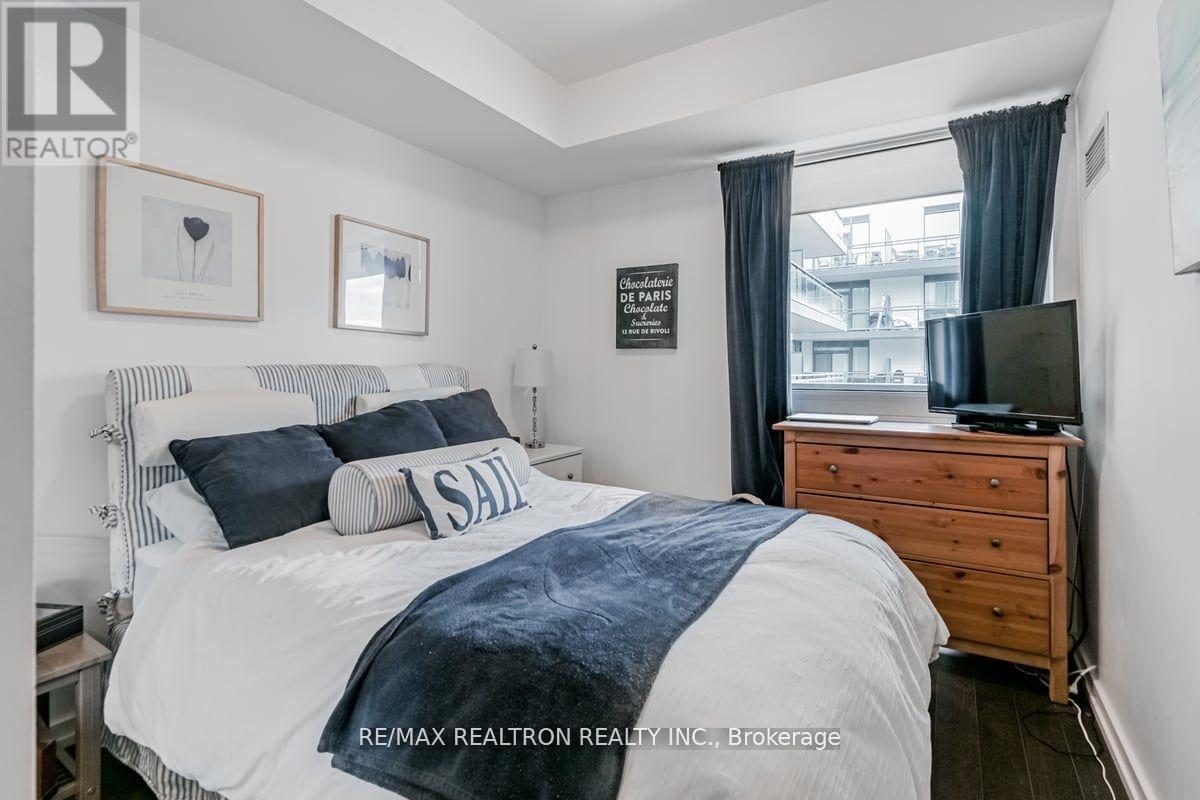 Immerse yourself in the captivating beauty of eastern exposure with stunning morning sunrises over the marina and soothing shade in the evenings. This charming 525 sqft one-bedroom, one-bathroom condo boasts a courtyard view and an expansive balcony offering breathtaking vistas of the marina and Lake Simcoe. Enjoy the convenience of double rooftop lounges equipped with BBQs, perfect for entertaining while overlooking the serene waters of Lake Simcoe. Window coverings are provided, with the primary bedroom closet featuring mirrored doors. Electric BBQs are permitted on the balcony, adding to your outdoor dining experience. (42002156)