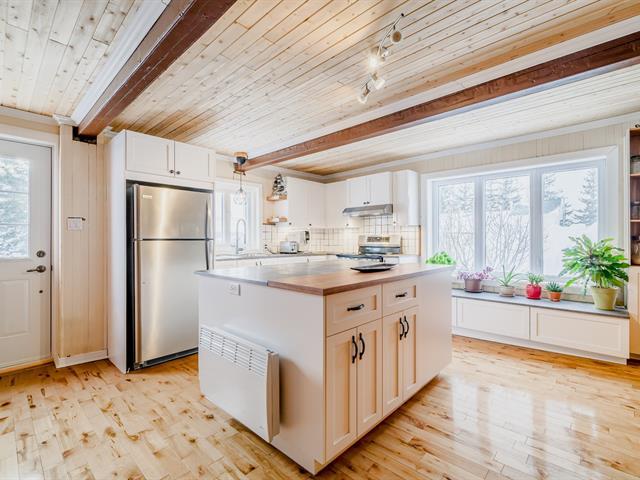 Ideal for a family wishing to enjoy the convenience of nearby amenities while benefiting from an agricultural setting, this property stands out with its expansive lot of over 2,418.20 m². Renovated with modern style, it offers bright and functional living spaces. The completely remodeled kitchen combines contemporary design with practicality and opens onto a welcoming open-concept living area. The house includes two good-sized bedrooms and a functional bathroom. Outside, the land allows for the possibility of raising livestock. Several parking spaces are available, in addition to a detached garage. (38964885)