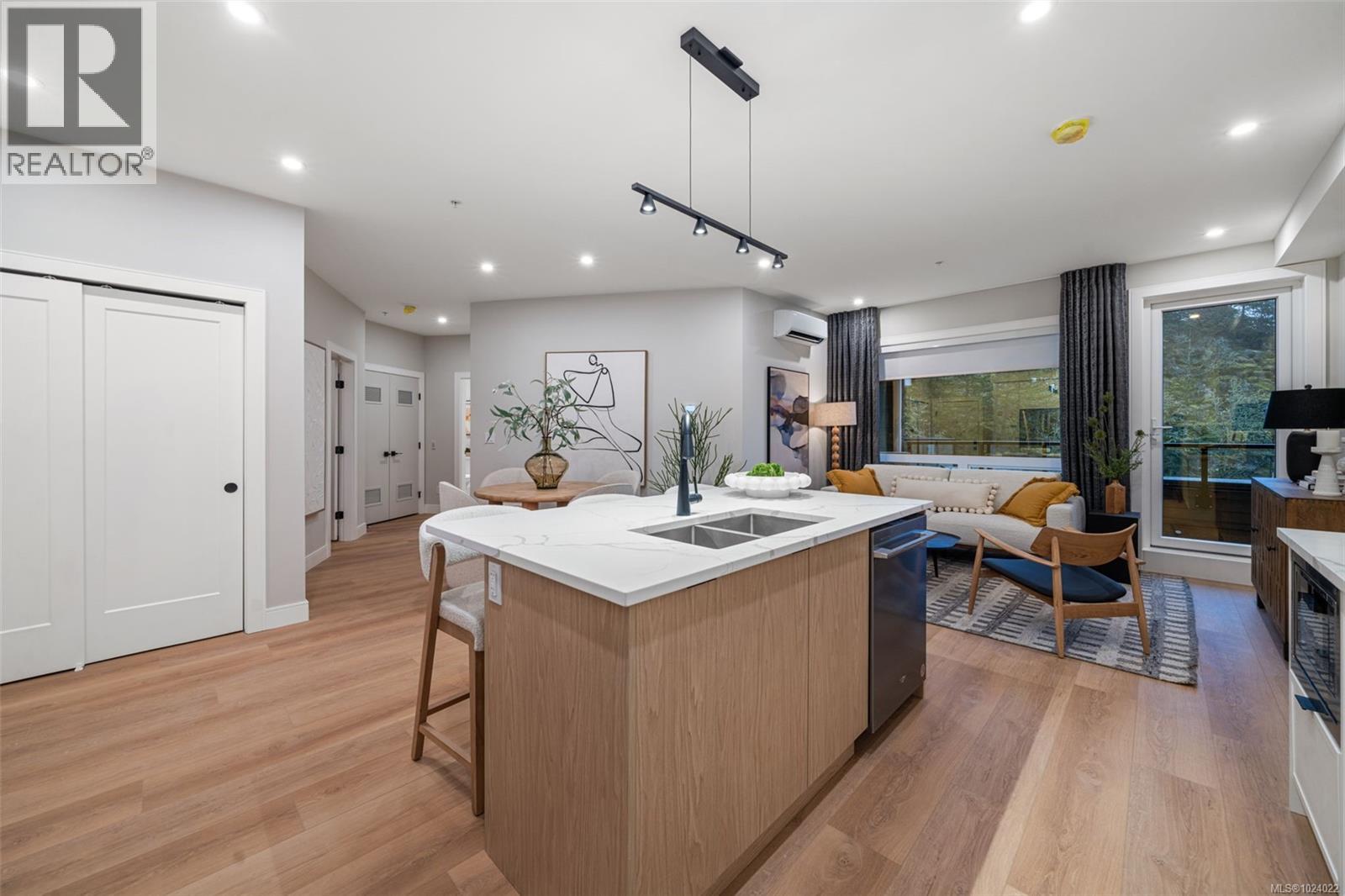 Smart pricing. Quality construction. This move-in ready 2 bed 2 bath plus den condo is perfect for those looking for open-concept living with the flow of indoor & outdoor space. At 1100 square feet, this unique and thoughtfully designed floor plan includes a spacious den that is perfect for a home office or flex space. The dining area off the kitchen is great for entertaining friends or family dinner at home. Welcome to The Ridge at Vista Point, where breathtaking views of the Juan De Fuca Strait, the Olympic Mountains, downtown Victoria, and the Sooke Hills define luxury living. Nestled serenely on the south side of Skirt and Bear Mountain, this exquisitely designed complex offers some of the largest floor plans on the market, with oversized outdoor areas that are perfect for entertaining. Each residence includes a secure underground parking space, storage locker, multi-head ductless heat pump for efficient heating and cooling, a gas cooktop, high-quality vinyl flooring, and quartz countertops throughout. Building amenities feature a state-of-the-art gym, community gardens, bike wash, dog wash, and outdoor patio for lounging. Residents enjoy access to Bear Mountain's world-class offerings, including two championship golf courses, an exclusive gym and pool, fine dining, scenic hiking trails, and more. Conveniently located with easy access to the TC1 highway and just minutes from essential amenities, The Ridge at Vista Point provides unparalleled luxury living. Show Home open Thursday - Sunday from 1-3pm or call your realtor today to book a showing! (30305217)