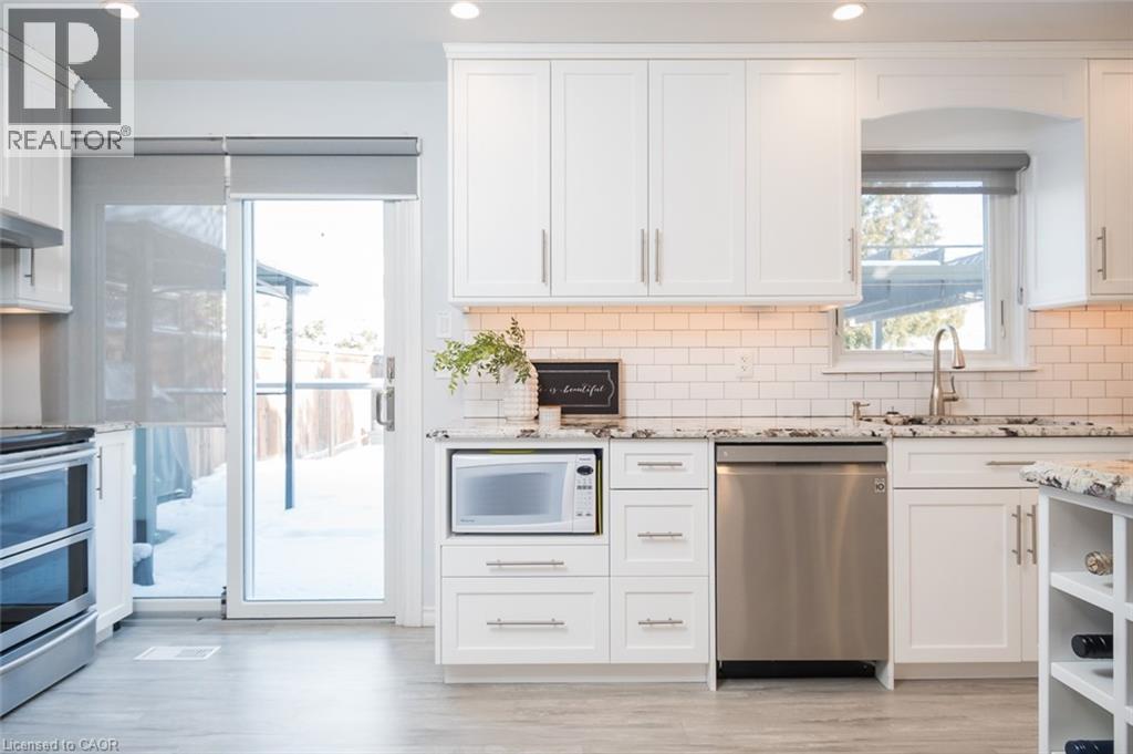 Meticulously cared for and maintained, this detached home offers an ideal family layout on a generous lot, with extensive updates. The main floor features hardwood flooring throughout, a front entry with closet, and an open living and dining area that flows into the renovated kitchen. that features granite countertops, custom cabinetry, stainless steel appliances, updated hardware and fixtures, pot lights, and a breakfast bar with seating. Upstairs, a wood staircase leads to three well-proportioned bedrooms, including a primary bedroom with hardwood flooring and two additional bedrooms all with closet space. The custom renovated lower level provides a flexible extension of the living space. Finished with a glass staircase detail and a wood board accent wall, this level includes a built-in granite bar with wine fridge, bar fridge, and cabinetry, along with space suited to a home office, lounge, or recreation area. The exterior offers composite decking at the front porch and rear deck, patterned concrete throughout the driveway, walkways, and back patio, and a fully fenced backyard with a pergola, gazebo, garden shed, and natural gas BBQ hook-up. Parking includes an attached garage with an epoxy floor and a driveway that comfortably accommodates four vehicles. Set in an established neighbourhood close to everyday amenities, this detached home offers space, quality, and a well-rounded level of updating that provides confidence for the next owner. (70081710)
