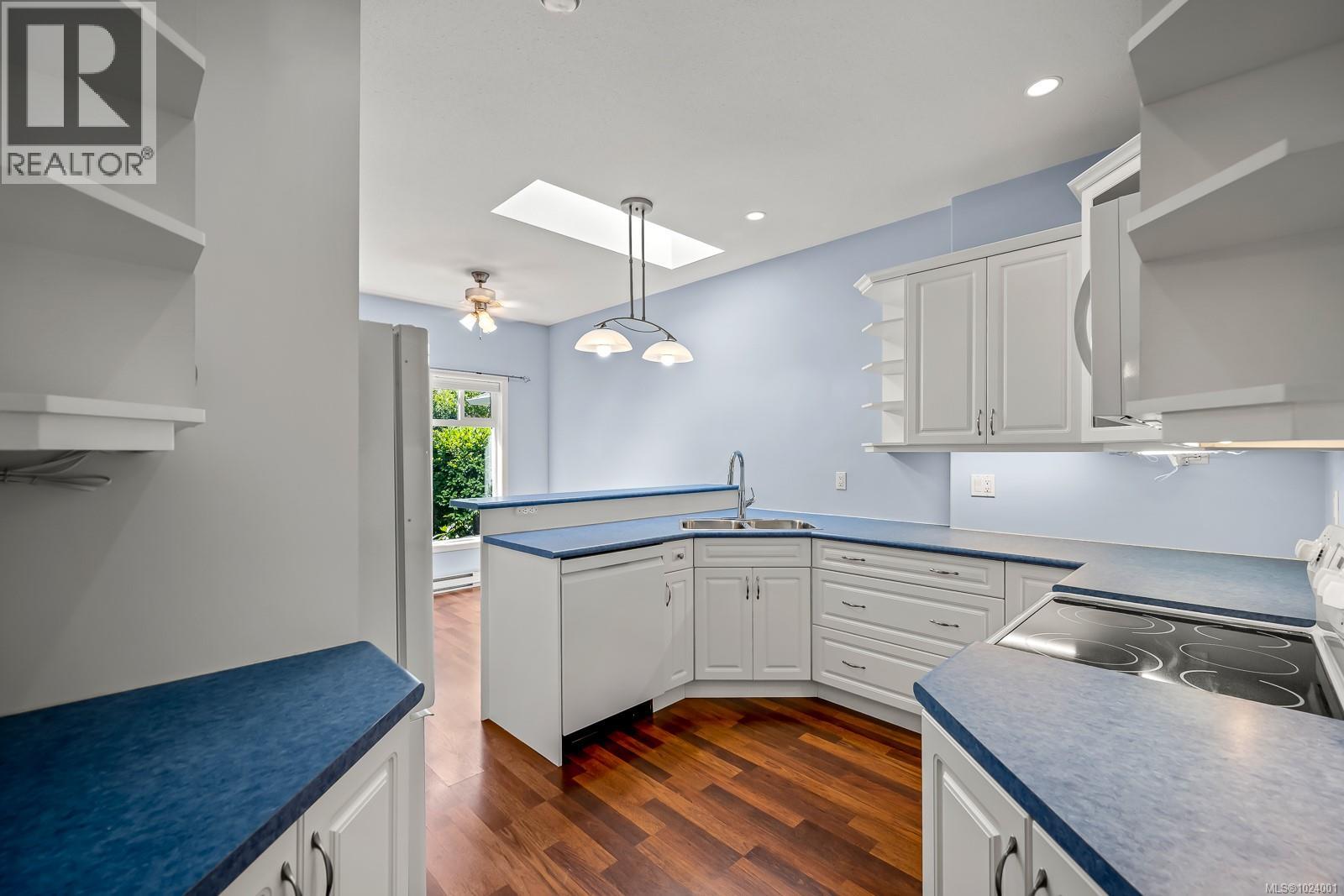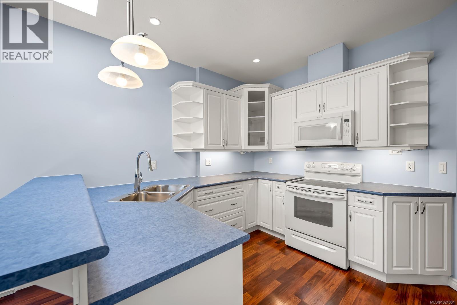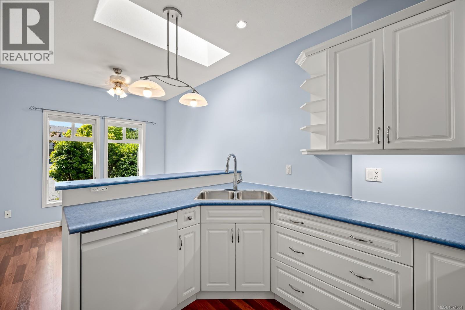 COMOX PATIO HOME with basement living! Located in the beautifully maintained Parkwood Estates, this spacious 2-level patio home offers 3 bedrooms and 3 full bathrooms, perfect for downsizers who still want room for guests or hobbies. The main level features a semi-open layout with 9-foot ceilings, warm laminate flooring, a cozy gas fireplace, and access to a private deck. The kitchen is filled with natural light and provides plenty of workspace for cooking and entertaining. Also on the main floor are two bedrooms and two bathrooms, including the primary suite with a full ensuite. Downstairs, you'll find a generous media room that opens to a covered patio, a third bedroom and full bathroom, plus access to a massive crawl space for extra storage. Parking includes a single-car garage and an additional space right out front. The grounds of this 55+ complex are beautifully landscaped with water features, bridges, and mature plantings. Parkwood Estates backs onto the scenic North East Woods trail network and is just a short walk to the beach and estuary. It’s also only minutes by car to golf courses, the airport, grocery stores, and all that downtown Comox has to offer. Pet-friendly, $366/month strata fee, and available for quick possession—this home is move-in ready! (30305418)