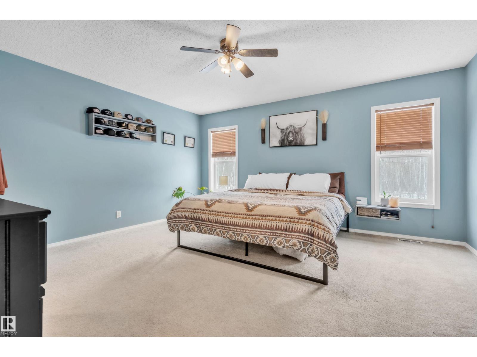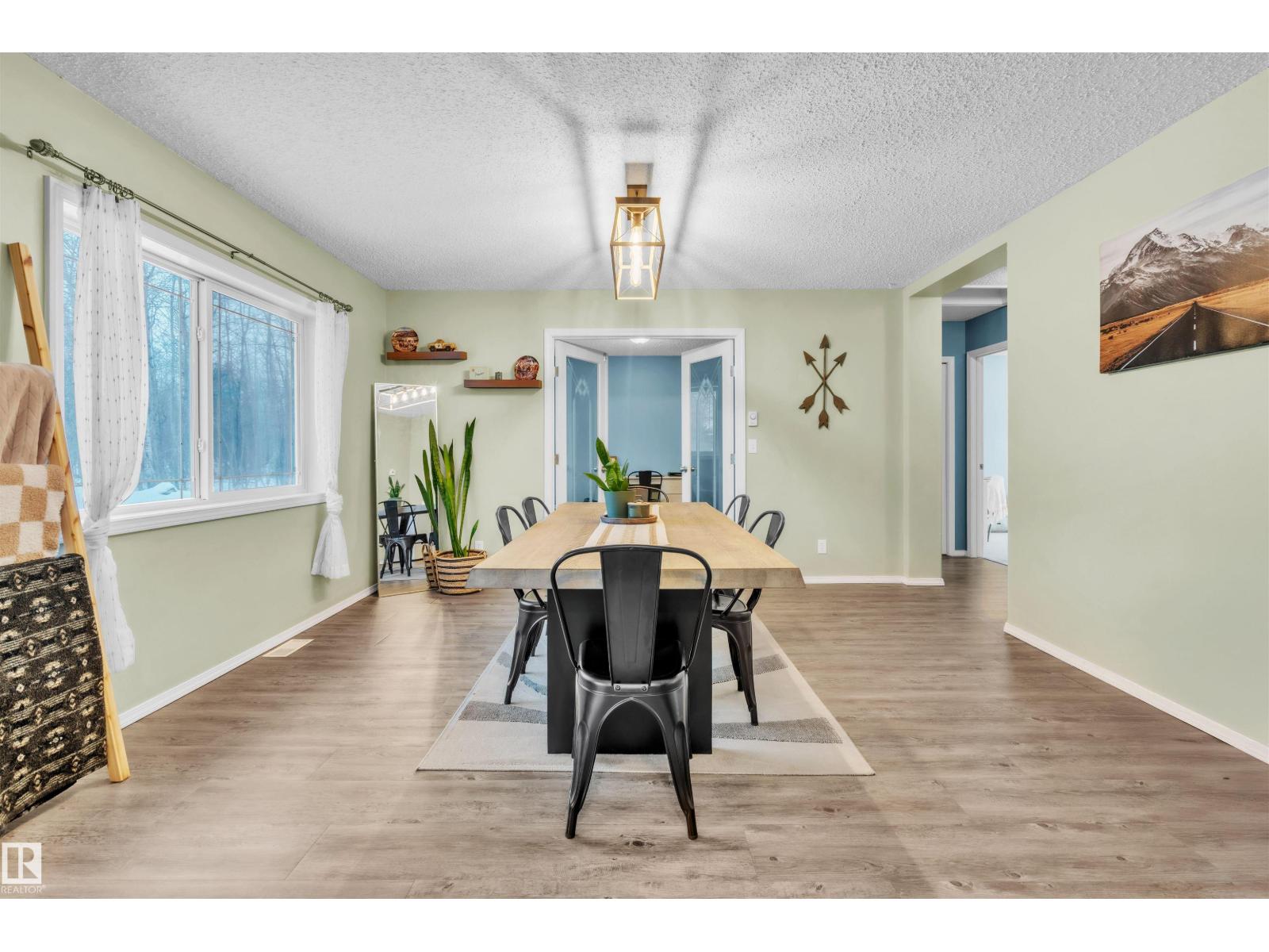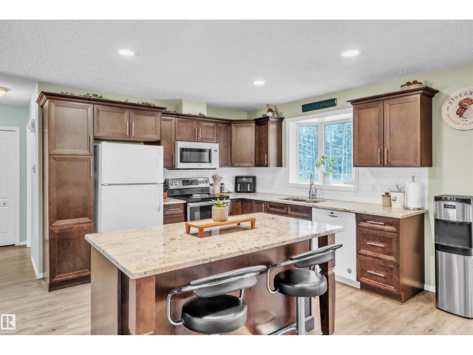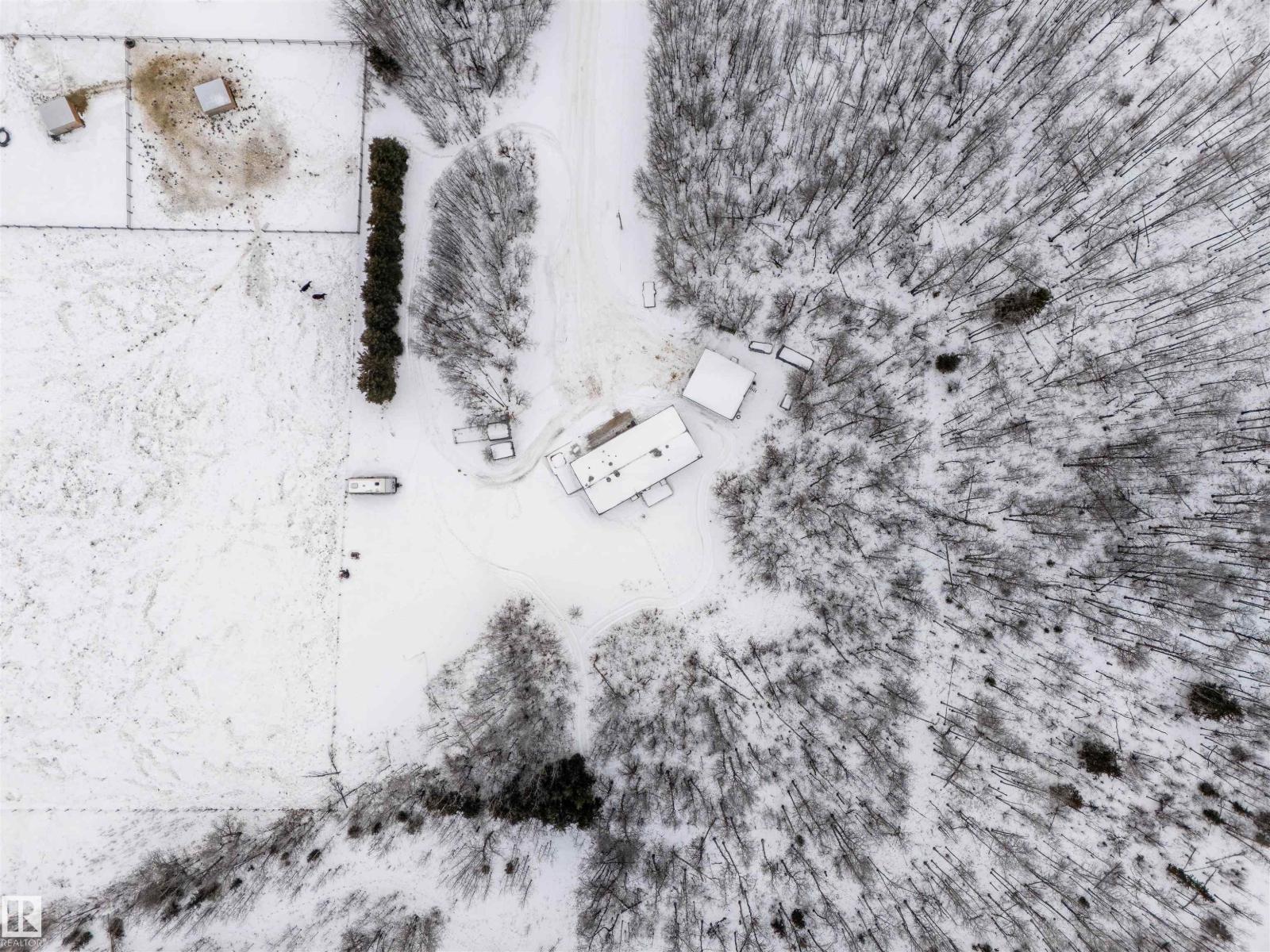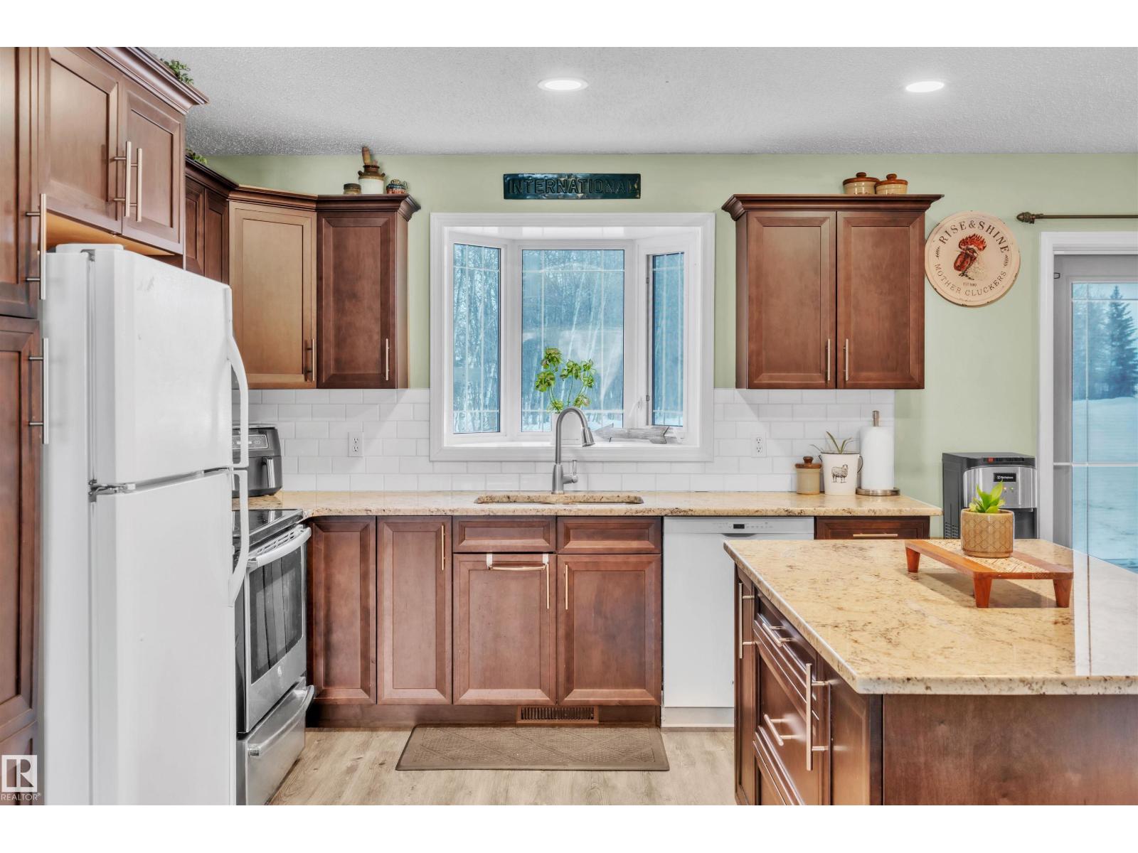 This inviting open-concept 1965 sq ft home offers a perfect blend of warmth, functionality, and modern style. The kitchen features rich dark cabinetry, light granite countertops and a central island with seating—ideal for everyday living and entertaining. Open to the kitchen, the spacious dining area easily accommodates a large table and flows seamlessly into the bright living room. Large patio doors fill the space with natural light and provide outdoor access, while a cozy wood-burning stove adds warmth and character. The layout comfortably fits full-sized furnishings and creates a welcoming atmosphere throughout. The large primary bedroom includes a full ensuite for added comfort and privacy. Situated on 4.81 acres, this property offers peaceful country living in a private setting, ideally located just minutes from the Cold Lake oil patch and Imperial Oil / Esso operations. An oversized double detached garage provides excellent storage and workspace. (33752915)