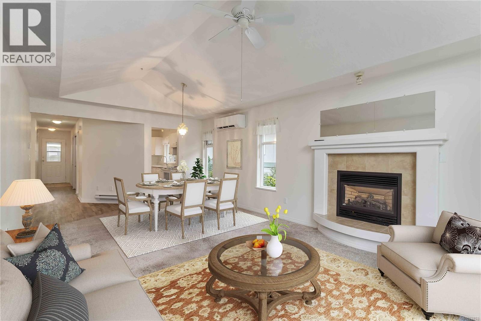OH - Sat 11:45-1:00. HD Photos, Video & Floorplans Online! Rare opportunity to own this well-designed 3BD 3 BTH end-unit townhouse backing onto peaceful green space. Perfect for families, retirees, or anyone needing accessible living, this thoughtfully laid out home w/no-step main level living has an abundance of natural lighting, offering vaulted ceilings, cozy gas FP in the living room, dining, spacious Primary bdrm w/ensuite, full bath, laundry, 2nd bdrm, plus direct patio access—ideal for BBQs & relaxing. Upstairs offers a private 3rd bdrm w/ocean views & its own private full bath. Stay comfortable year-round w/a heat pump & bonus w/crawlspace, garage, & serene outlook. Pet-friendly: 1 dog & 1 cat allowed – no size restrictions. Steps to Admirals Walk – Thrifty Foods, Canadian Tire, E&N Trail, paddle at Thetis Cove, stroll Portage Park & Gorge Waterway. Strata plan finished 1372sqft - total sqft 1599, Floor plan 1425sqft finished - total sqft1855.Quick possession is possible. (30305932)