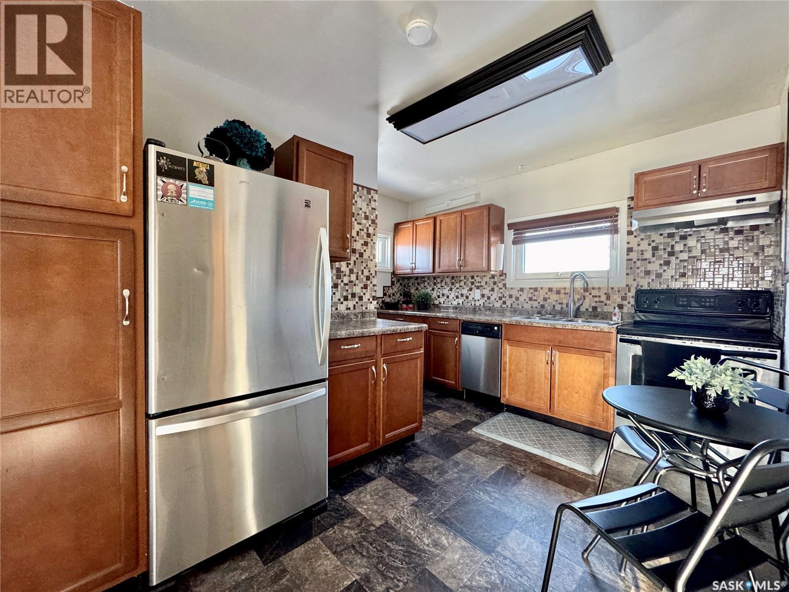 Welcome to 510 Wells Avenue East, a thoughtfully refreshed 1915 two-story home in Langenburg that blends timeless character with meaningful modern updates. A welcoming entryway offers space for multiple people to gather with ease. Throughout the home, you’ll find updated flooring, many updated windows for improved comfort and efficiency, original hardwood flooring in the living room, and tongue-and-groove pine ceilings that add warmth and charm. The updated kitchen features stainless steel appliances, a dishwasher, and a tile backsplash. The main floor also includes a washroom and a bedroom well suited as the primary bedroom. Upstairs, the layout is truly unique, offering a full bedroom with old-world built-in cabinetry and a loft-style office space. A convenient upstairs sink provides added flexibility, whether for a home-based business setup or a simple morning routine. Additional upgrades include updated doors, a brand-new furnace, on-demand water heater, new central air, and a good-sized long lot. This home is a fantastic opportunity for a first-time buyer looking for character, updates, and affordability—all in one package. (29309459)
