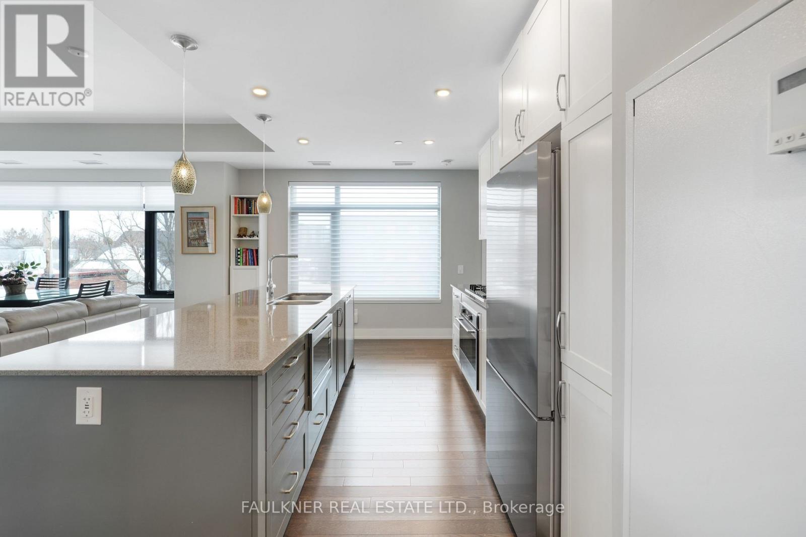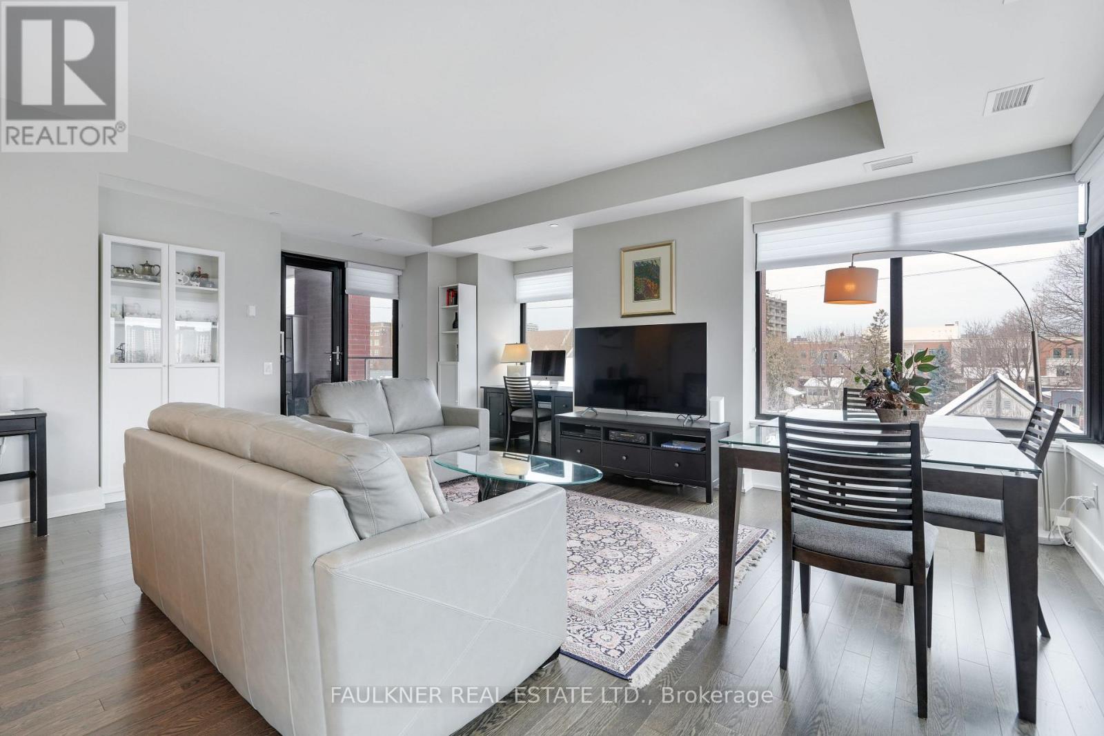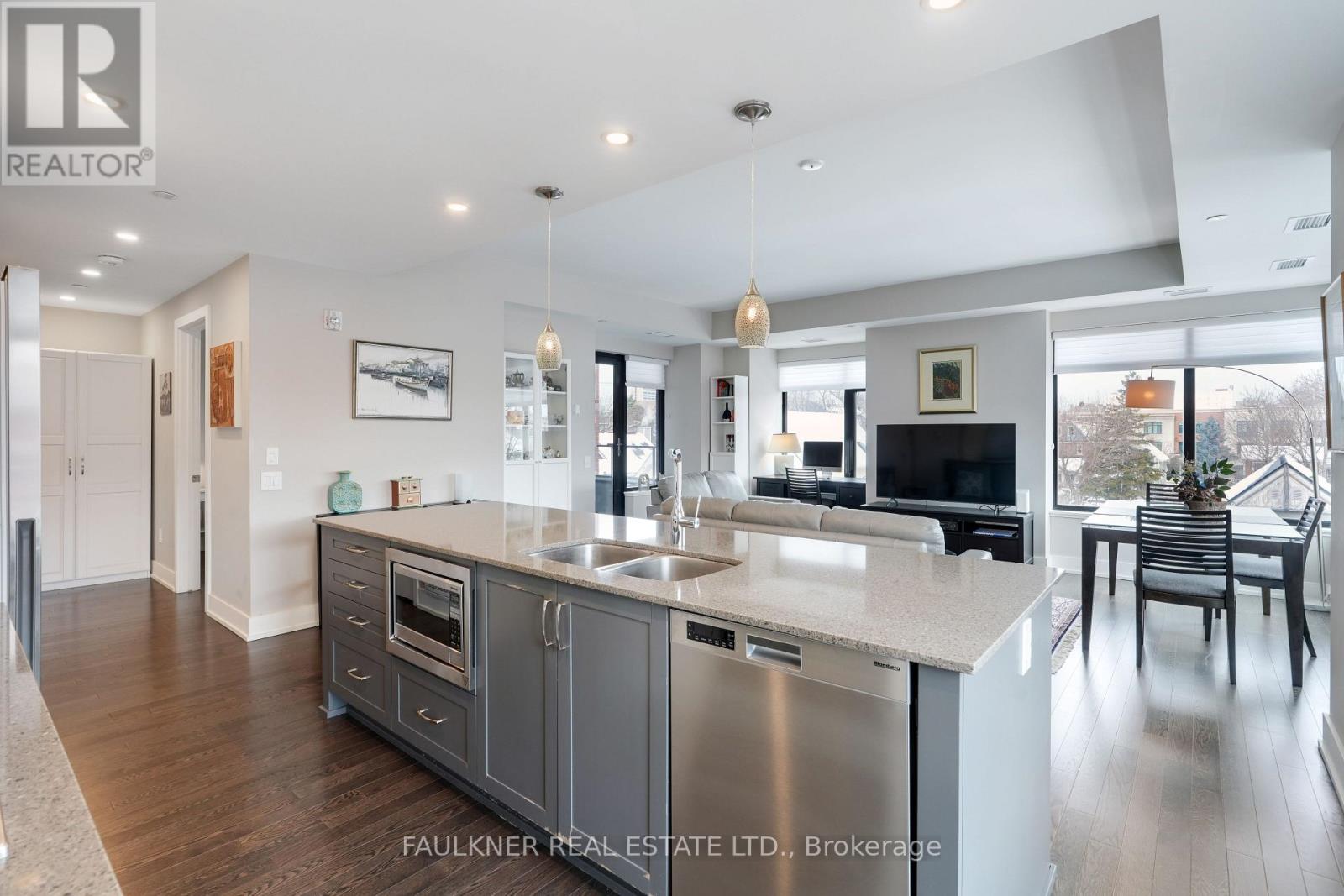 Perfectly situated in Greystone Village, this location is framed by Rideau River parkland, the shops and cafés of Main Street, and is just a short walk to the Rideau Canal and the Glebe via the Flora Footbridge, with downtown and schools conveniently close by. This location offers the perfect balance of natural beauty, serenity, and urban vibrancy.The Corners on Main, a quality-built development by Domicile, delivers an exceptional urban lifestyle with effortless access throughout the city. Greystone Village is conveniently located near the LRT, with easy walking access to Lees Station (Line 1) and Hurdman Bus Station. Filled with an abundance of natural light, this choice corner suite features soaring 9'10" ceilings, hardwood floors, and expansive windows. Its thoughtful layout includes a spacious living and dining room areas, and beautifully balanced with the bedrooms and bathrooms separated from the main living area for added privacy. The efficiently designed kitchen boasts a large granite island and countertops with seating, and an under-mount microwave. Versatile alcoves provide space for a desk and cozy window seat. Located on the third floor, this suite enjoys a tranquil treetop outlook -yet low enough to stay connected to the streetscape while excluding the cars. Step out onto a spacious balcony with a gas hookup for BBQing at home and a privacy screen. 11 Oblats offers residents a strong sense of community and confidence in its management and with amenities including community garden, guest suite, yoga room, exercise room, party room complete with full kitchen, dining and lounge area, rooftop lounge and patio, car wash, pet wash, and generous bicycle storage. Ample visitor parking. EV infrastructure in place. 6' x 6' locker and underground parking included. Status Certificate Package available. Love where you live! (42005451)