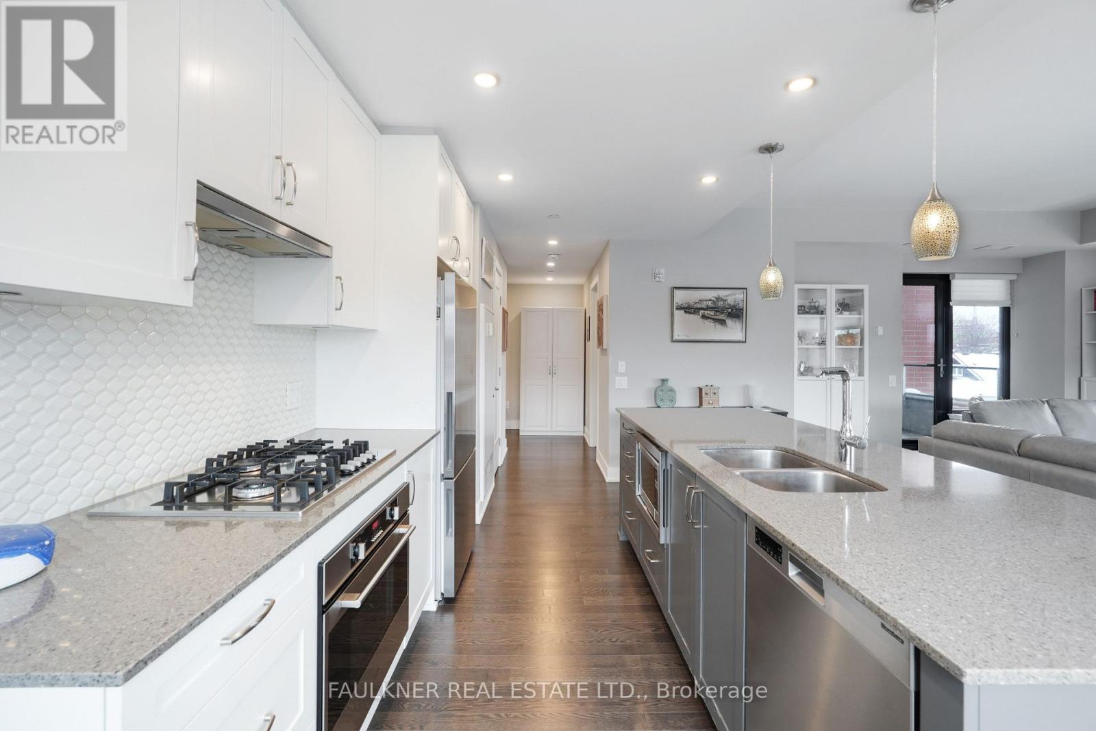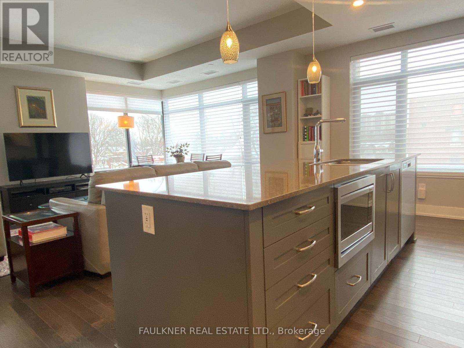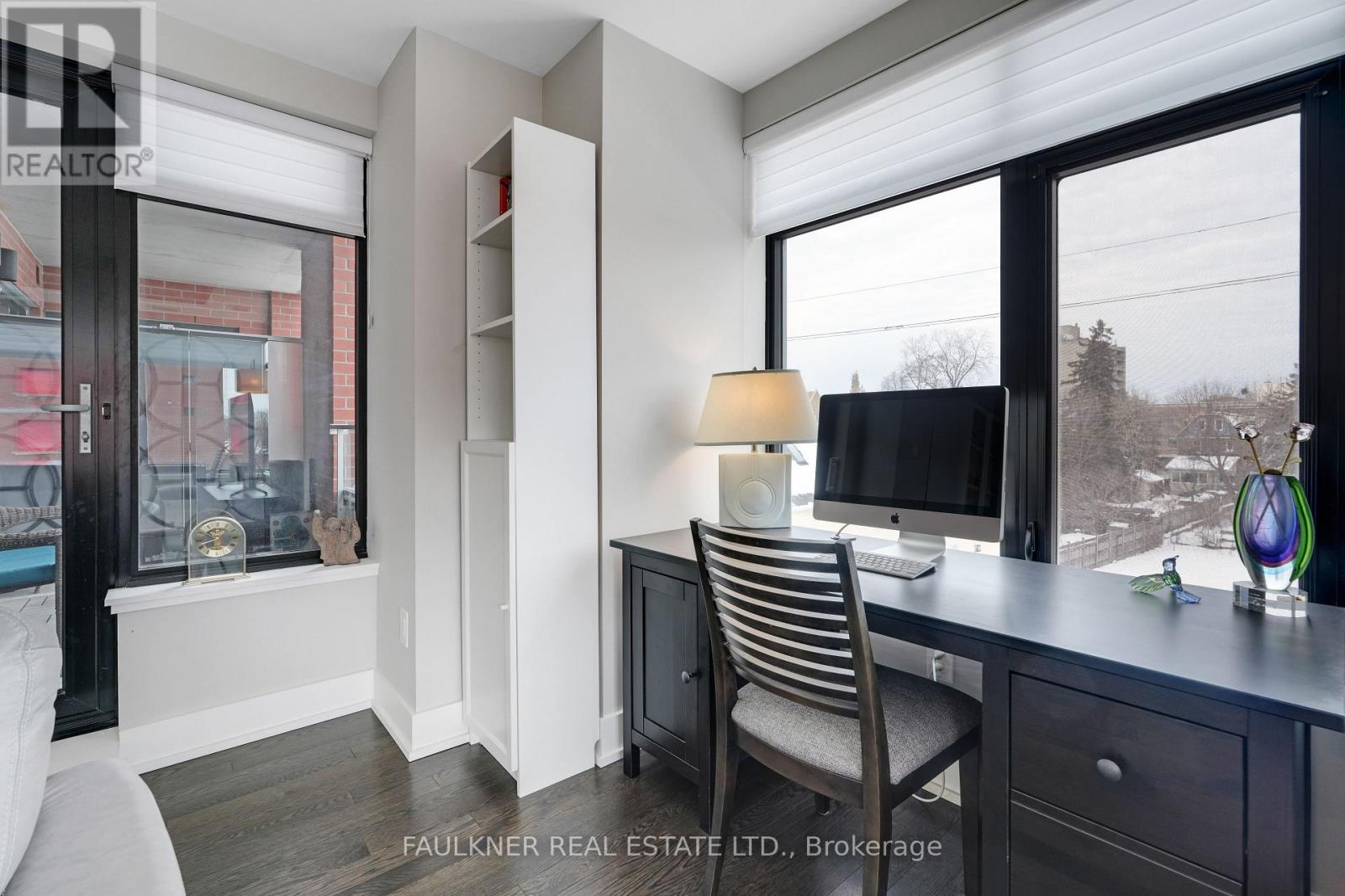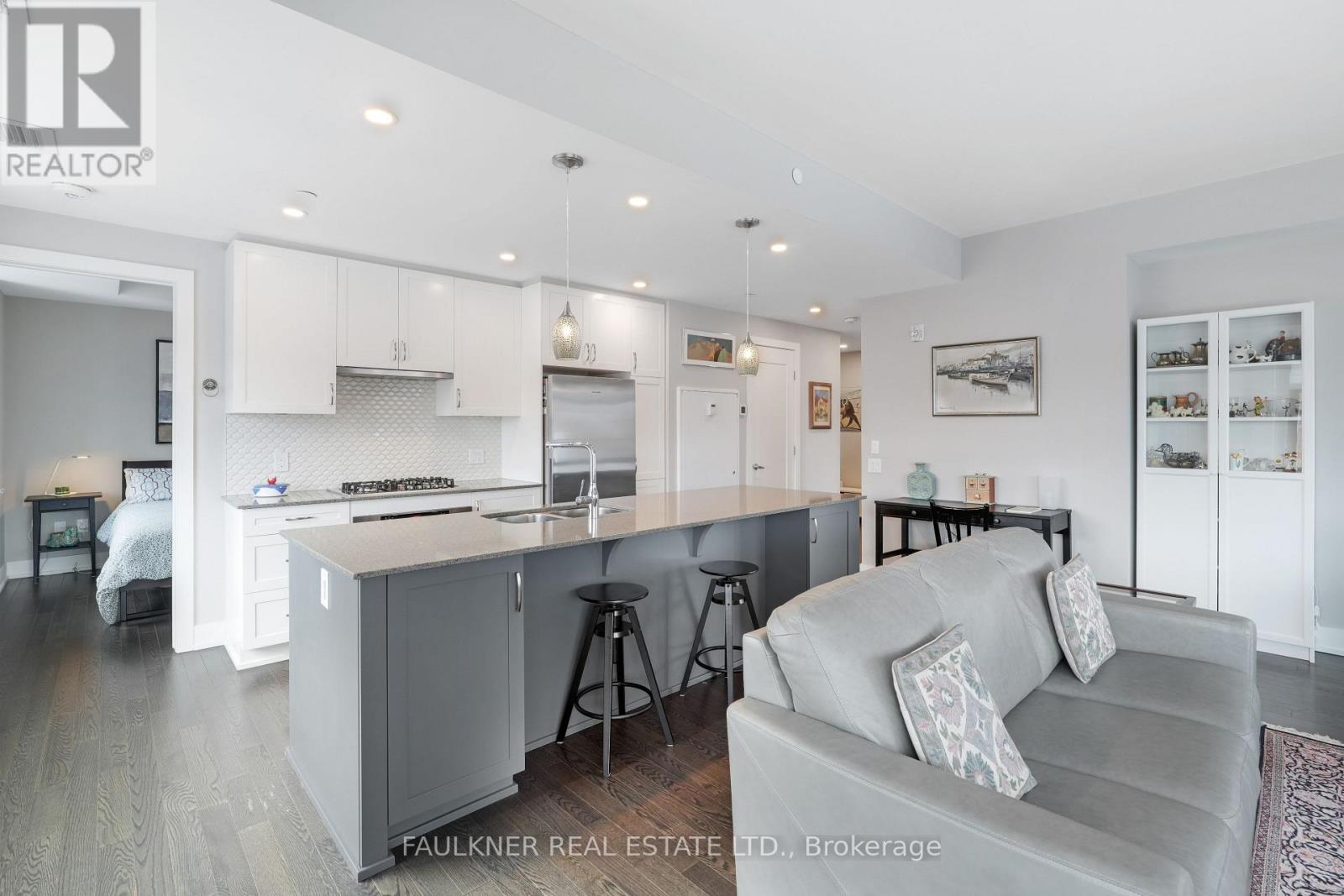 Perfectly situated in Greystone Village, this location is framed by Rideau River parkland, the shops and cafés of Main Street, and is just a short walk to the Rideau Canal and the Glebe via the Flora Footbridge, with downtown and schools conveniently close by. This location offers the perfect balance of natural beauty, serenity, and urban vibrancy.The Corners on Main, a quality-built development by Domicile, delivers an exceptional urban lifestyle with effortless access throughout the city. Greystone Village is conveniently located near the LRT, with easy walking access to Lees Station (Line 1) and Hurdman Bus Station. Filled with an abundance of natural light, this choice corner suite features soaring 9'10" ceilings, hardwood floors, and expansive windows. Its thoughtful layout includes a spacious living and dining room areas, and beautifully balanced with the bedrooms and bathrooms separated from the main living area for added privacy. The efficiently designed kitchen boasts a large granite island and countertops with seating, and an under-mount microwave. Versatile alcoves provide space for a desk and cozy window seat. Located on the third floor, this suite enjoys a tranquil treetop outlook -yet low enough to stay connected to the streetscape while excluding the cars. Step out onto a spacious balcony with a gas hookup for BBQing at home and a privacy screen. 11 Oblats offers residents a strong sense of community and confidence in its management and with amenities including community garden, guest suite, yoga room, exercise room, party room complete with full kitchen, dining and lounge area, rooftop lounge and patio, car wash, pet wash, and generous bicycle storage. Ample visitor parking. EV infrastructure in place. 6' x 6' locker and underground parking included. Status Certificate Package available. Love where you live! (42005451)