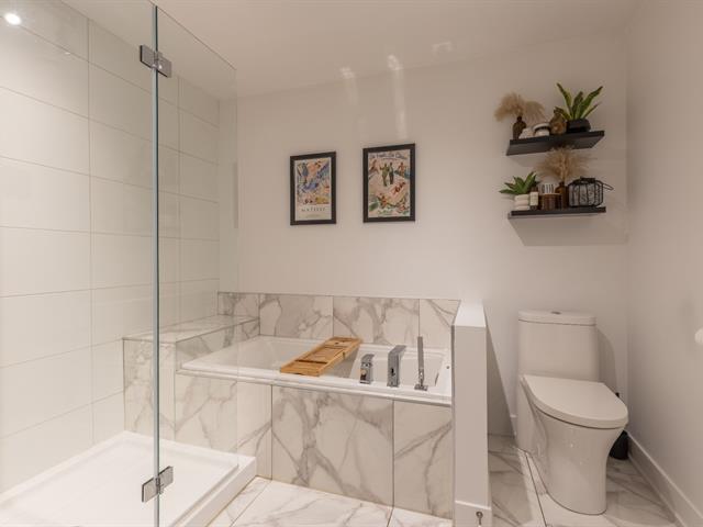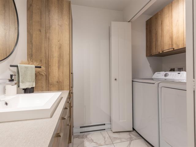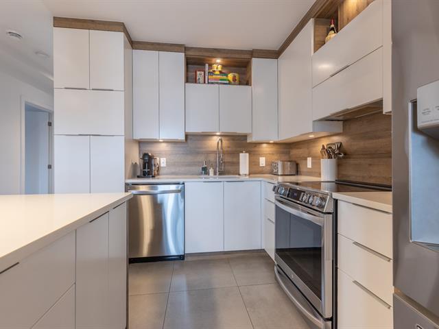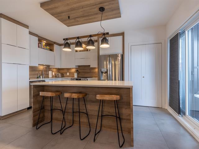 Bright and trendy condo offering 1,113 sq ft of well-designed living space in a semi-detached building entirely renovated in 2017 and converted to divided co-ownership. With corner-unit characteristics, it benefits from abundant natural light and added privacy. Features two comfortable bedrooms, an open-concept kitchen with breakfast island, and seamless living and dining areas. Private patio, wall-mounted heat pump, and exterior parking included. Quiet three-unit co-ownership with low condo fees. Steps from the St. Lawrence River, waterfront paths, and nature park, with easy access to Montréal and the South Shore. (40529576)