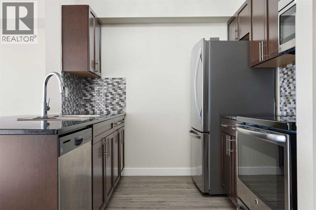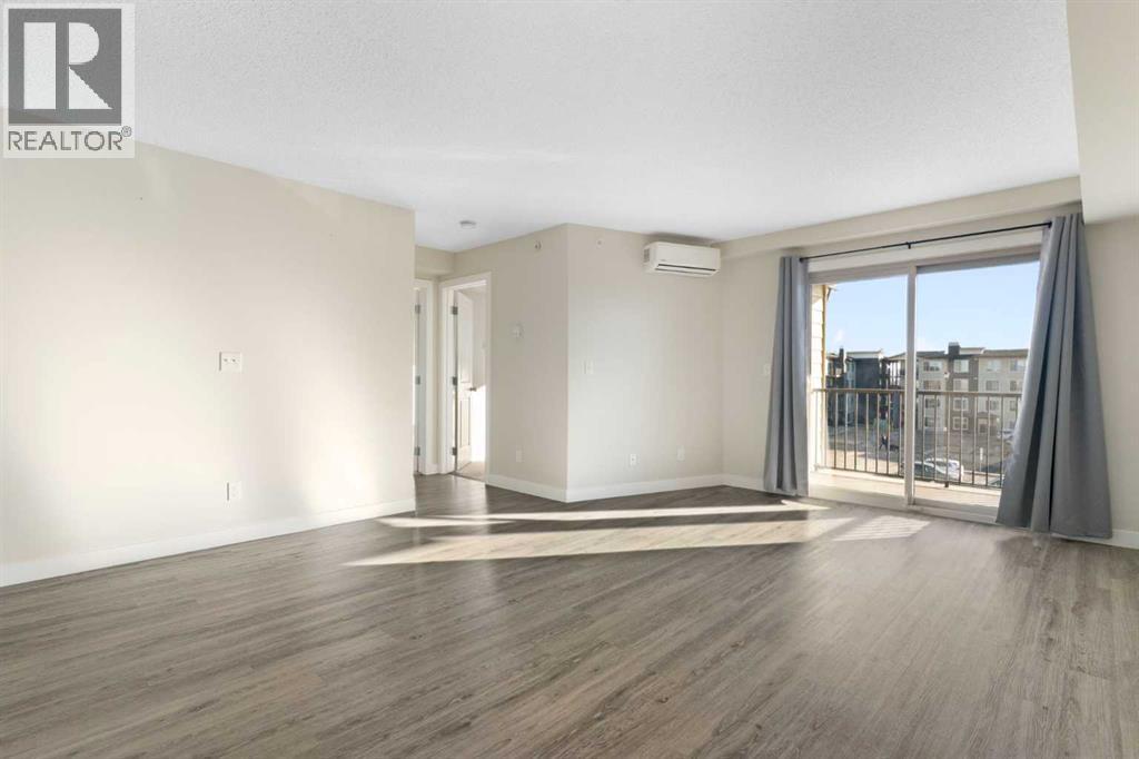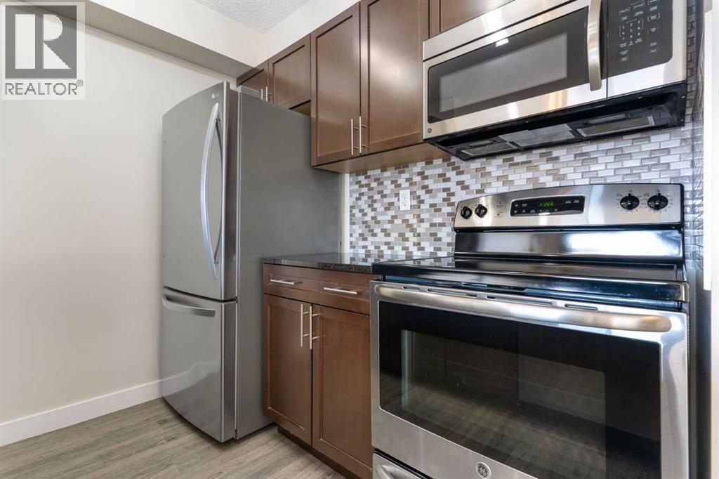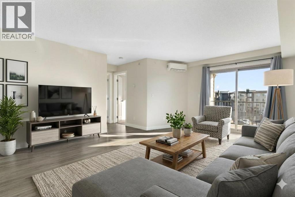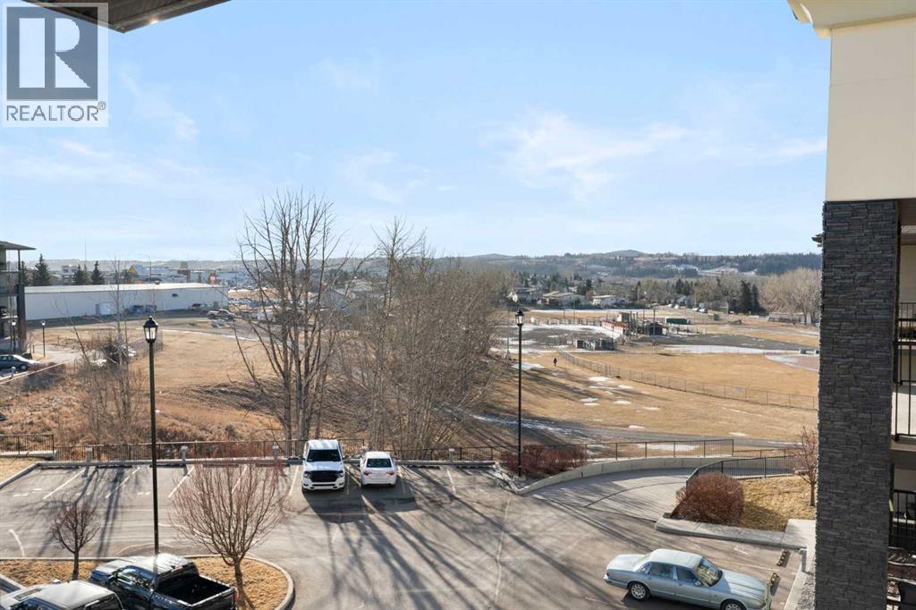 Top Floor | 2 Beds | 2 Baths | Air Conditioned | U/G Storage | 2 Surface Parking Stalls | Pets ok | Experience top-floor living with amazing panoramic views in this beautiful, air-conditioned unit at Glenbow Landing. This meticulously maintained home features a fabulous open layout enhanced by durable vinyl plank flooring. The chef-inspired kitchen offers granite countertops, a breakfast bar, stainless steel appliances, and abundant prep space. It flows seamlessly into a dining area large enough for a substantial table and a bright, inviting living room. Step through the sliding glass doors to your private balcony to take in the scenery. The primary retreat easily accommodates a king-size set and boasts a 4-piece ensuite with granite finishes. A generously sized second bedroom and another full 4-piece bathroom (also with granite) make this unit perfect for guests or a home office. For added convenience, the dedicated laundry room offers significant in-suite storage. Value-added bonuses: Two side-by-side parking stalls (with plug-ins). A massive titled storage room in the underground garage. Pet-friendly (1 dog under 15kg or 2 cats, subject to approval). Book your showing today to see why Living in Cochrane is Loving where you Live." (31563689)