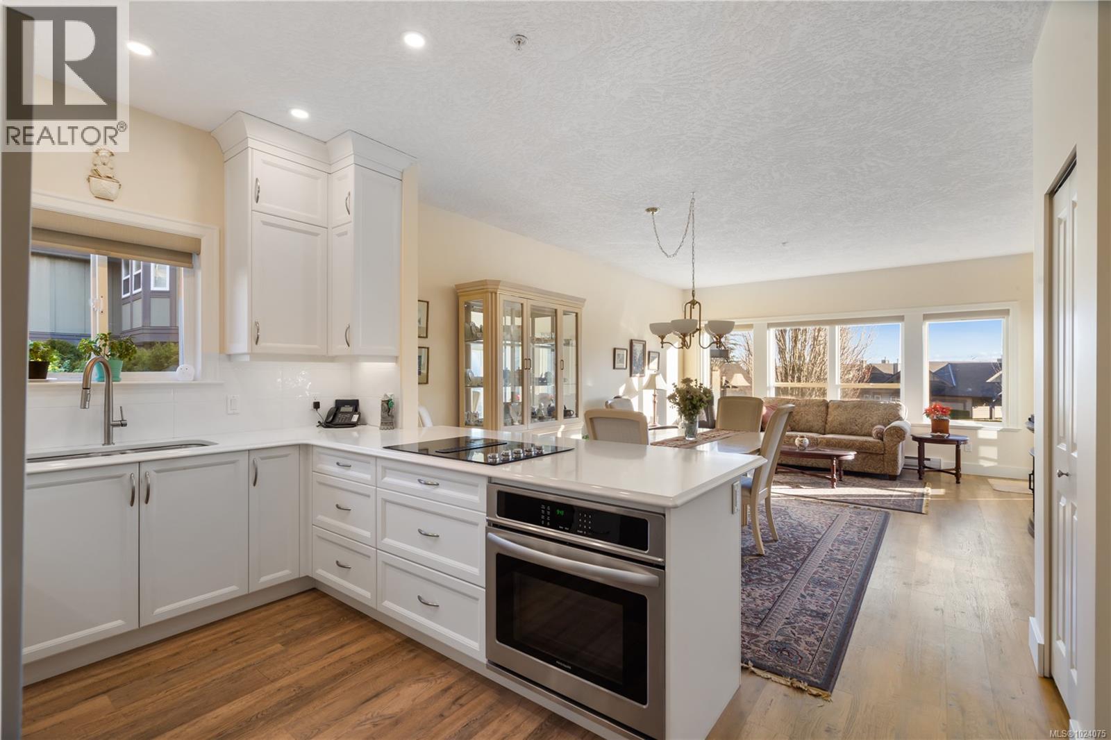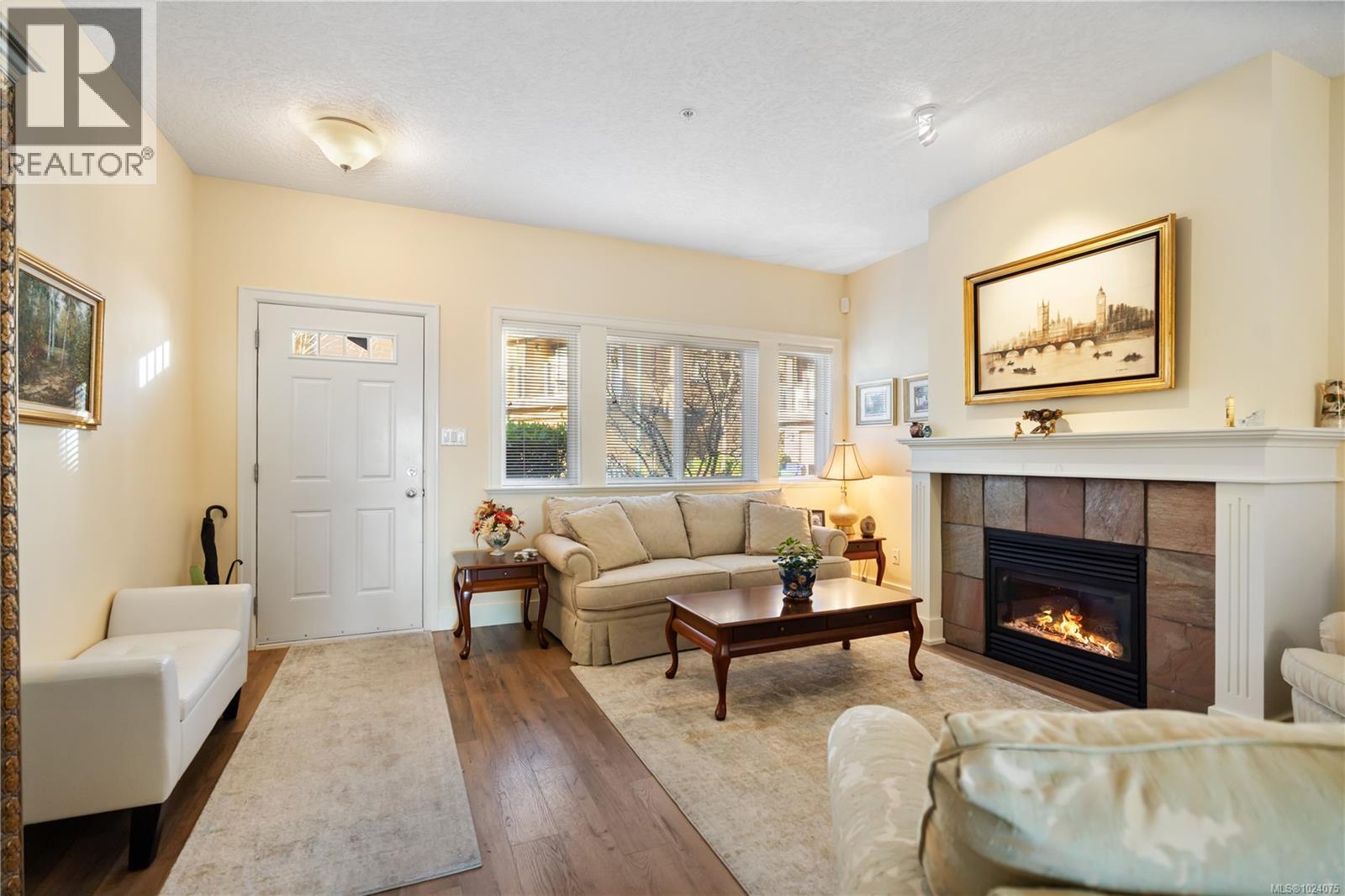 Thoughtfully designed WestRidge townhome offering flexible, family-friendly living with true one-level convenience. The bright, open-concept main floor features a new kitchen with premium stainless steel appliances, Fisher & Paykel counter-depth fridge, granite countertops, white tile backsplash, under-cabinet lighting, and a separate electric cooktop with stainless built-in oven. Cozy gas fireplace anchors the living room, separate from the family and dining areas, which flow seamlessly to the glass-railed balcony. Spacious primary suite includes a walk-through closet and luxurious ensuite with marble countertops, porcelain tile, heated floors, and balcony access. The main floor also offers a convenient 2-piece powder room and laundry hidden in a closet for seamless one-level living. Downstairs, two large bedrooms share a full 4-piece bathroom, complemented by a versatile flex space ideal for a second family room, gym, homework area, or playroom. Private patios and mature landscaping create inviting outdoor living areas, including ample room for potted plants or a small garden. The home enjoys abundant natural light through plentiful glass, connecting indoor and outdoor spaces. Two sets of doors from the family room and primary bedroom lead to the balcony, while a separate balcony off the living room offers elevated views. Situated on a quiet, no-through road, this home is steps from the fully renovated playground and surrounded by nature and mature hedging, providing privacy and serenity often lacking in newer, tightly packed developments. Enjoy proximity to Royal Bay amenities including schools, restaurants, grocery stores, and the ocean, all while benefiting from thoughtful spaces designed for comfort, style, and everyday living. Perfect for families, entertaining, or those seeking the flexibility to age in place. (30306700)