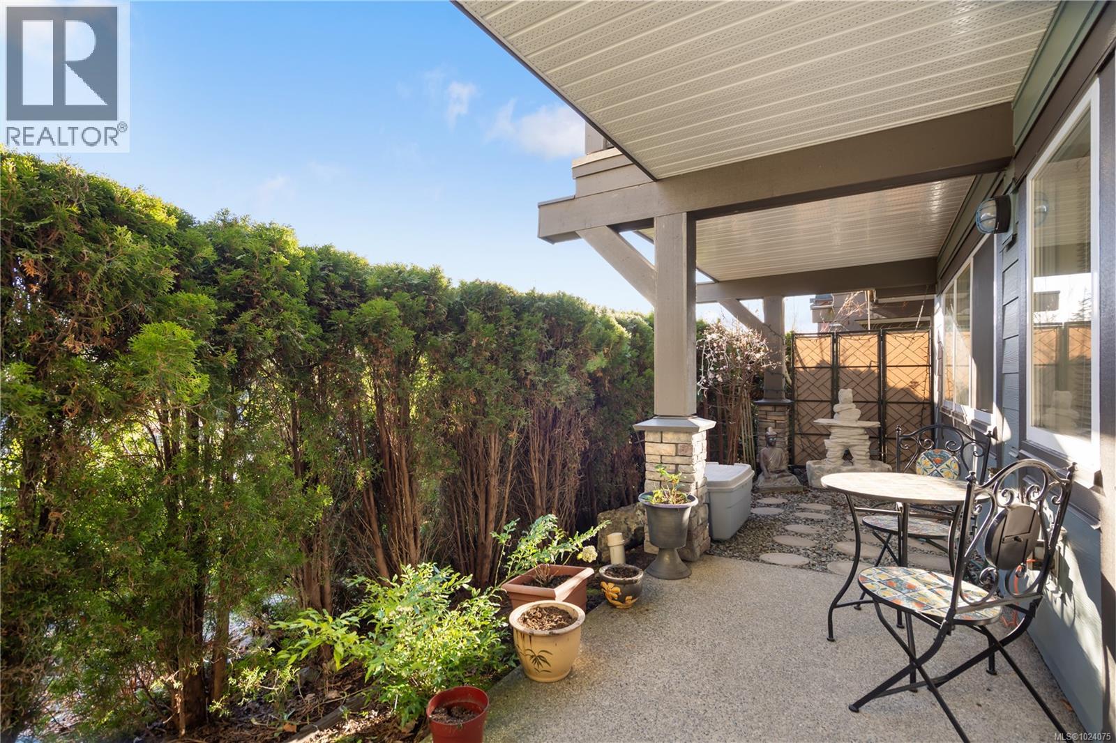 Mature landscaping and established hedges provide privacy and a serene backdrop to the rear of the townhome