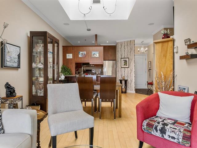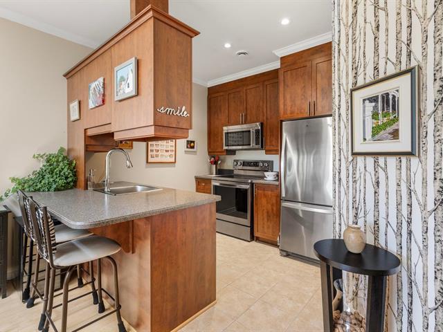VISITS will begin at the open house of February 1st. Top floor pristine 2 bedroom 2 bath condo in the heart of old Saint-Laurent on top floor of a well appointed building with elevator and interior garage. From gleaming hardwood floors to gorgeous shaker style kitchen with corian countertops, make this unit your own. You are a walk away from many services and amenities, near key colleges, metro station and parks. See addendum for details. (38513669)