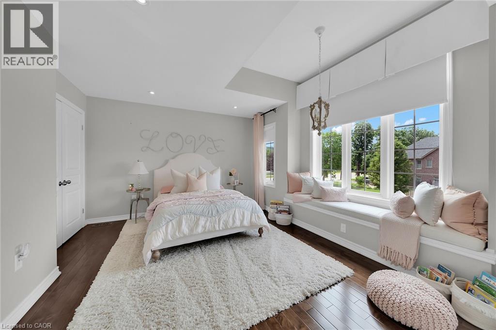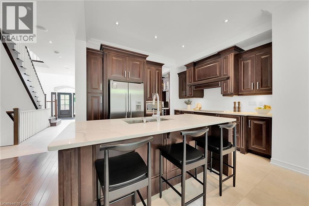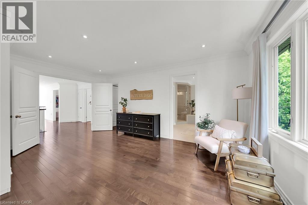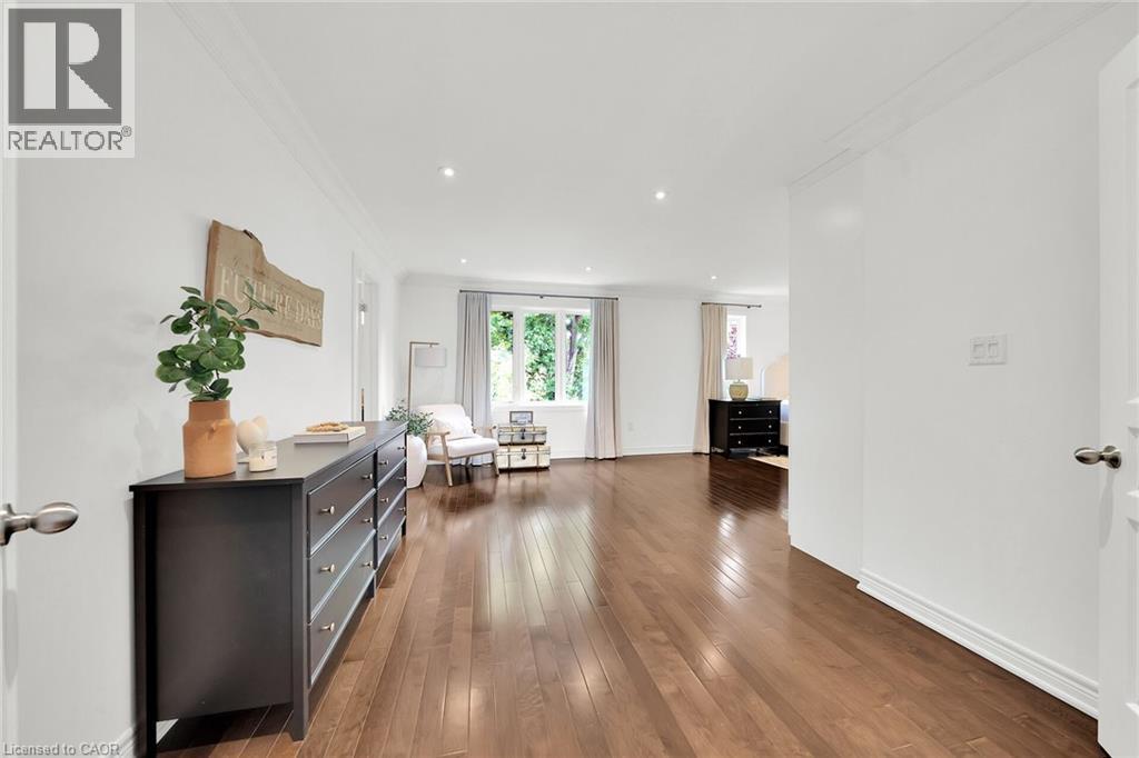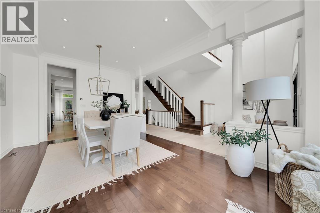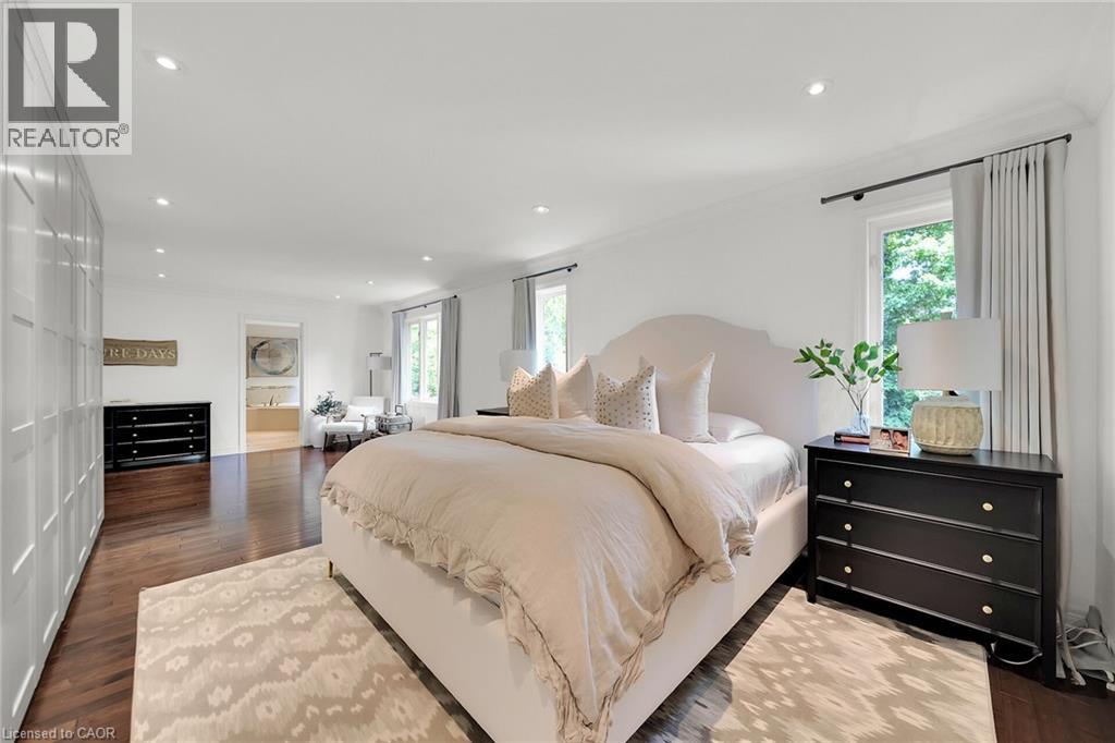 MAGNIFICENT MODEL HOME WITH OVER 4000 SQUARE FEET OF REFINED LUXURIOUS LIVING. Four Bedrooms, 5 Baths with resort-style in-ground, heated, saltwater pool. Located in most sought-after Cherrywood Estates among other Luxury Homes. Featuring: 10 foot ceilings, crown mouldings, recessed lighting, hardwood floors. The unique open-concept design & spacious principal rooms are ideally suited for hosting & entertaining. The gourmet kitchen with high-end appliances, abundant cabinetry, large island, butlers pantry & quartz counters is open to Great Room with soaring ceilings, gas fireplace & large windows overlooking the very private fenced backyard oasis with deck, in ground-heated pool & patios surrounded by mature trees. Main floor office, main floor laundry. Staircase to upper level leads to spacious primary bedroom suite with spa-like 5 PC ensuite bath, wall to wall built-in cabinetry & walk-in closet. Open staircase to lower-level leads to bright & beautifully finished rec room with 9 foot ceilings, bath & ample storage. OTHER FEATURES INCLUDE: C/air, Roughed-in C/vac, garage door opener, new washer and dryer (2023), new pool liner (2025), new pool heater (2021), finished basement (2020), custom drapery (2018), new laundry cabinetry (2023), Kitchen countertops (new 2018). Wine fridge, pool equipment, gas fireplace, built-in microwave, Jack & Jill 5PC bath. Less than 5 minutes to QEW, steps to park with short stroll to school & conveniences. This elegant home shows pride of ownership and is meticulously maintained inside & out with attention to every detail! (70082378)