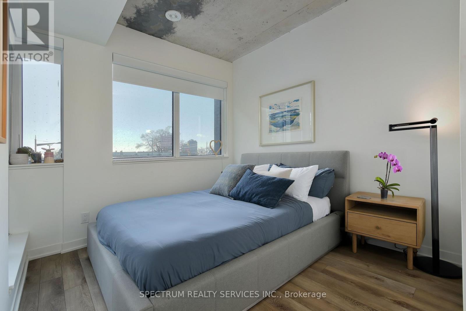 SMART. STYLISH. READY FOR YOU. This modern 2-bed condo is the perfect fit-whether you're buying your first place or adding to your portfolio. Soaring loft-style ceilings and sunny south-facing windows bring in light and volume, while a thoughtful layout makes the most of every square foot. The primary bedroom features its own ensuite; the second flexes effortlessly as an office or guest space. With designer finishes, deeded parking and locker, and top-tier building amenities, this is turnkey living done right. Just move in. (42006479)