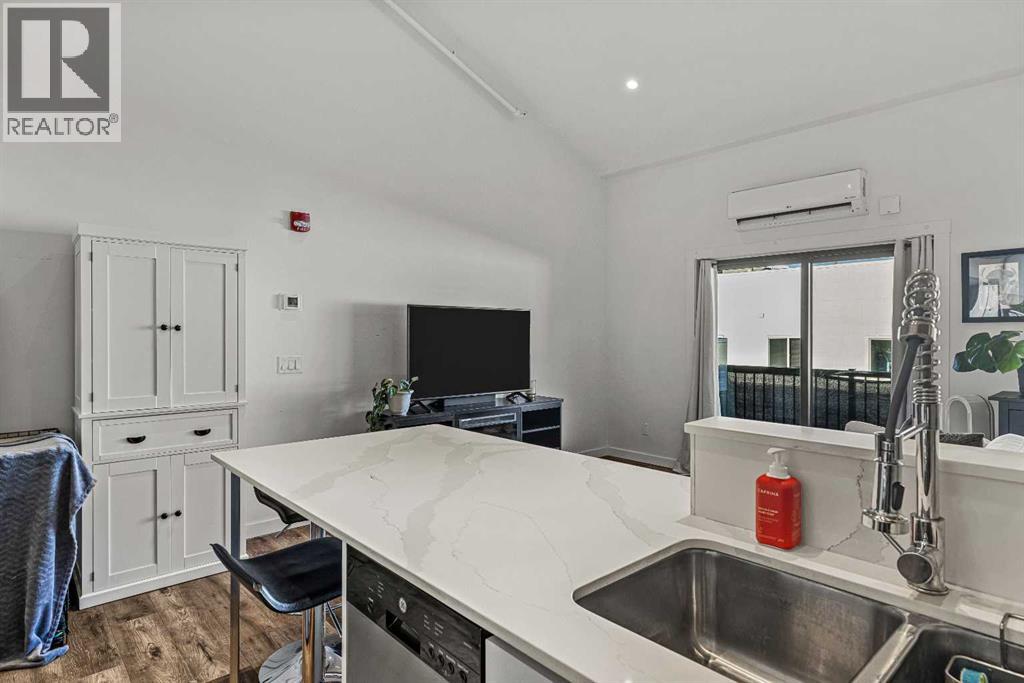 Welcome to Canmore living, where mountain views and everyday convenience come together. This west-facing 1-bedroom, loft-style home offers just over 605 sq. ft. of well-designed living space, with an open, airy layout that maximizes natural light and showcases the stunning mountain scenery that defines life in Canmore.Soaring ceilings and large windows create a bright, inviting main living area that brings the outdoors in. The kitchen features granite countertops, while the functional loft bedroom offers a flexible layout ideal for everyday living or working from home.Ideally located in a highly walkable neighbourhood, this home is steps from schools, the Canmore Arena, Canmore Golf & Curling Club, and the skate park. Walking and biking trails are right outside your door, grocery stores are minutes away, and quick highway access makes commuting to the mountains or the city effortless. Additional conveniences include secure bike storage, a separate storage locker, and access to industrial washers and dryers in the building—perfect for larger loads.Whether you’re a first-time buyer or looking to get into Canmore ownership, this loft at I Place delivers an exceptional blend of location, views, and lifestyle.Please note: short-term rentals are not permitted. Book your private showing today! (31564167)