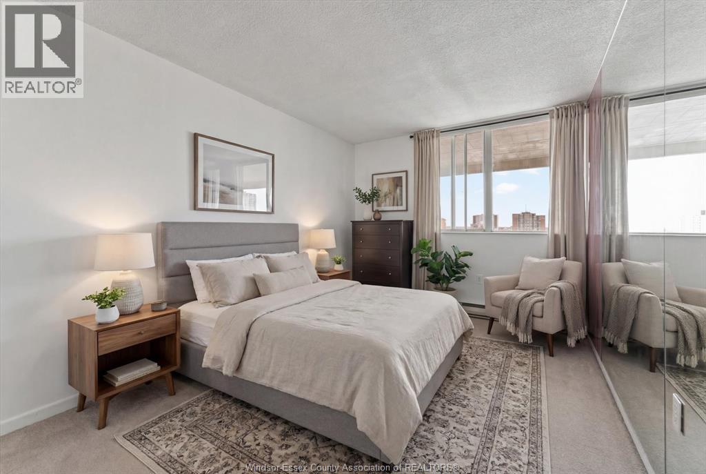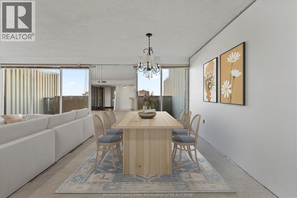 Royal Windsor Terrace, this distinguished two-storey loft condominium offers refined urban living in the heart of downtown Windsor. Encompassing approximately 1,230 square feet, the residence features two bedrooms and two bathrooms, thoughtfully designed to balance style, comfort, and functionality. The south-facing orientation delivers expansive skyline and neighbourhood views, filling the space with natural light throughout the day. The open-concept main level is anchored by a contemporary kitchen complete with modern cabinetry and a four-person breakfast bar—ideal for both casual dining and entertaining. Generous closet space, a same-floor storage locker, and same floor access to a washer and dryer further enhance everyday convenience. Step onto the private balcony, perfectly suited for barbecuing or showcasing a personal garden retreat. The offering includes all utilities except electricity (historically averaging approximately $75 per month), all appliances, and assigned heated underground parking, complete with a dedicated car wash area. Residents enjoy access to an exceptional suite of resort-style amenities, including a heated indoor pool, a fully equipped fitness centre, whirlpool tub, billiards room, and ping-pong lounge—creating a lifestyle that seamlessly blends comfort, recreation, and sophistication. This residence presents an outstanding opportunity for professionals or executive buyers seeking a premium downtown condominium with space, views, and comprehensive amenities. (55284888)