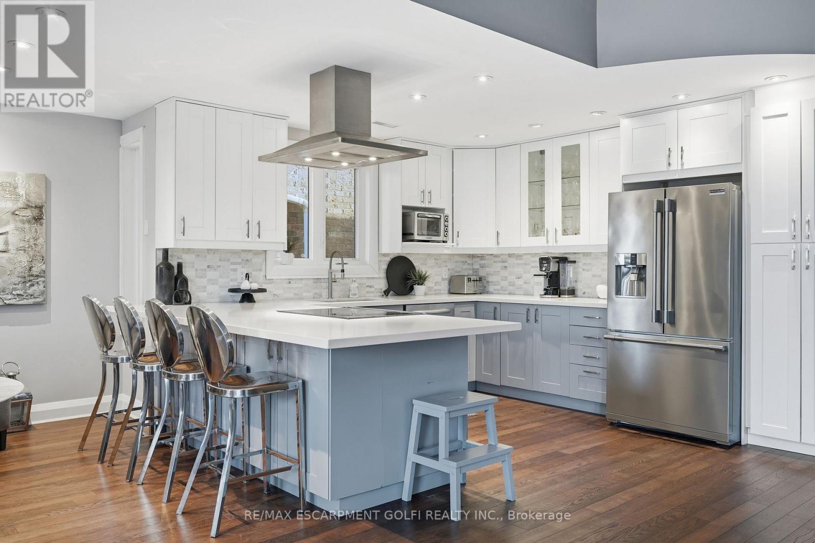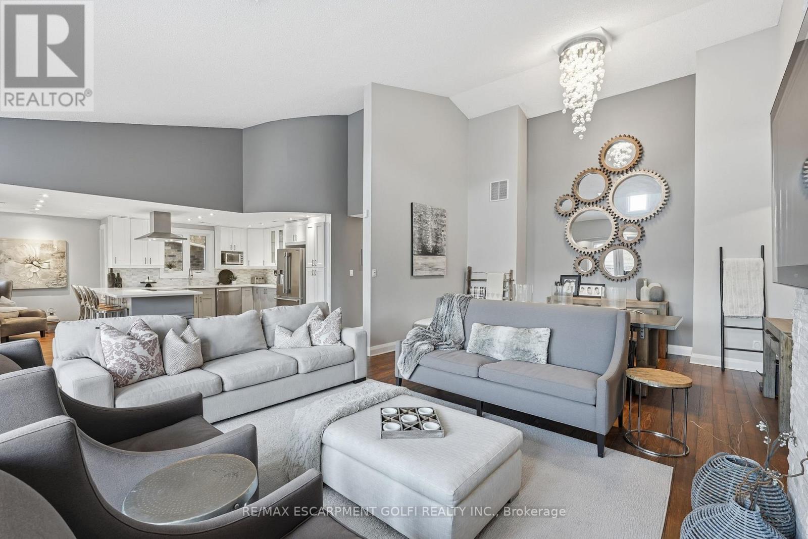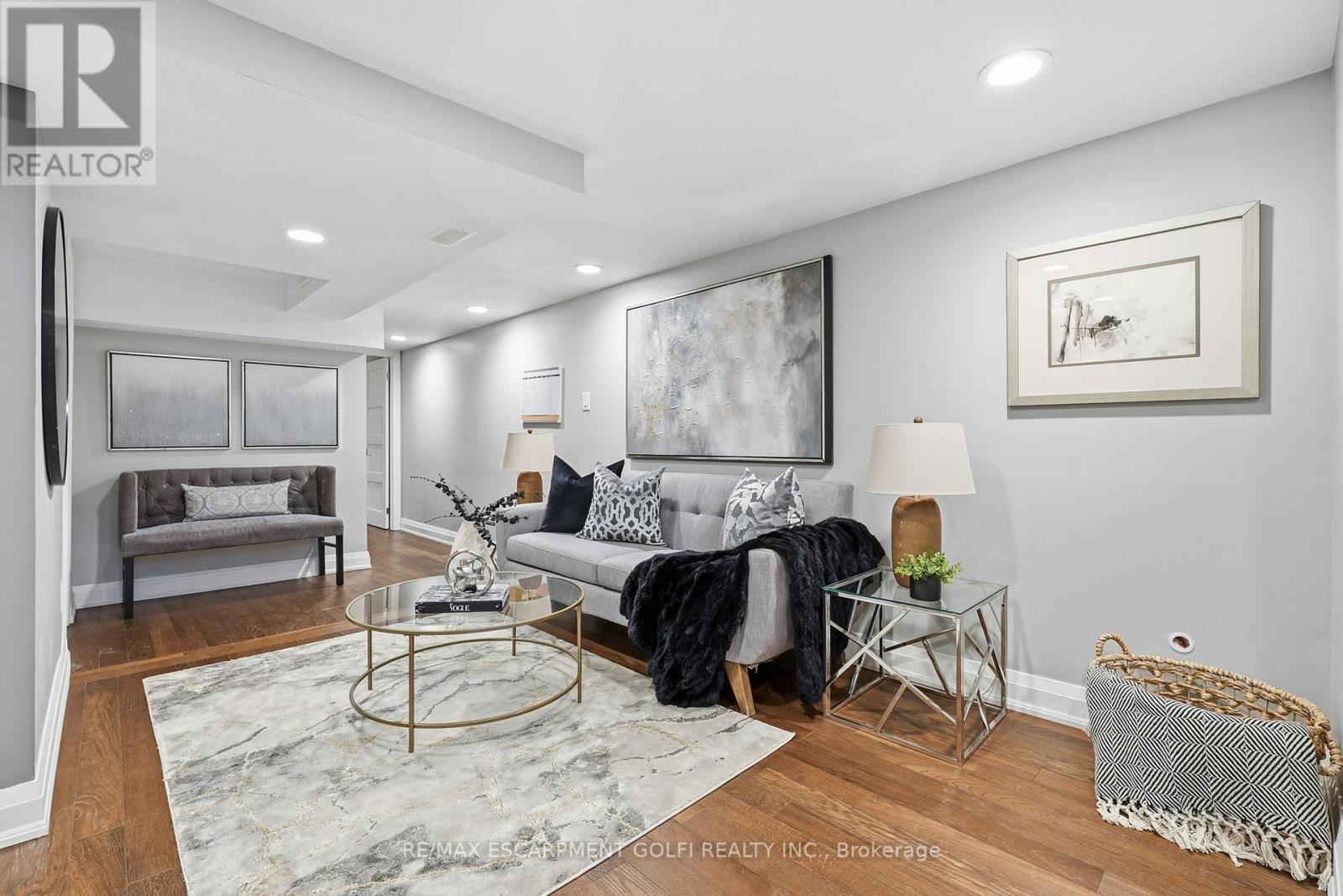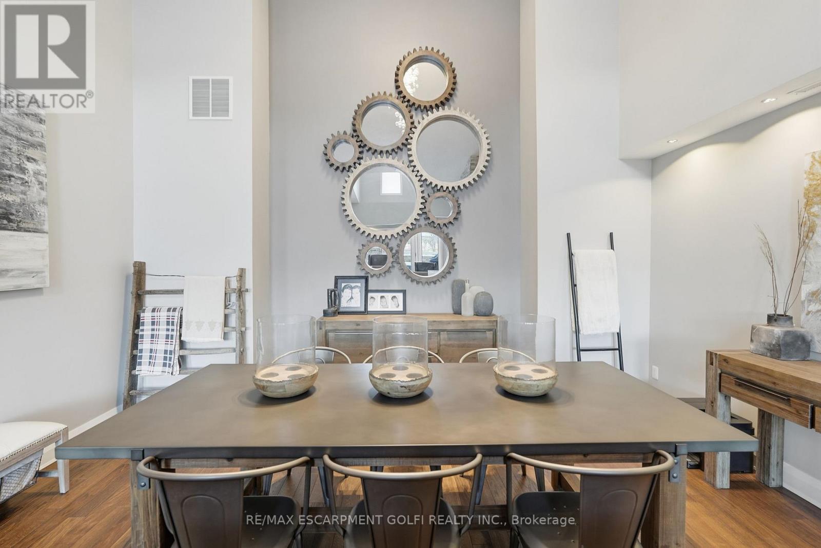 Exceptional executive townhome in The Terraces on New Street. Sun-filled great room with soaring 15.5' cathedral ceilings and gas fireplace. Rich hardwood flooring throughout. Chef-inspired kitchen with quartz counters and generous peninsula. East-facing terrace perfect for morning coffee or entertaining. Two main floor bedrooms, each with full bath. Primary suite features a spa-like 5pc ensuite, walk-in and walk-through closets. Second bedroom with ensuite privilege to 4pc bath. Convenient main-floor laundry. Fully finished lower level with full bath, additional walk-in closet with built-ins, multiple storage closets, and versatile space ideal for gym, office, or guest suite. All new windows replaced in 2024. Inside garage entry, ample storage, and maintenance-free living. Steps to downtown Burlington, the lake, schools, parks, and shopping. A rare turnkey opportunity in a sought-after location. (42007367)