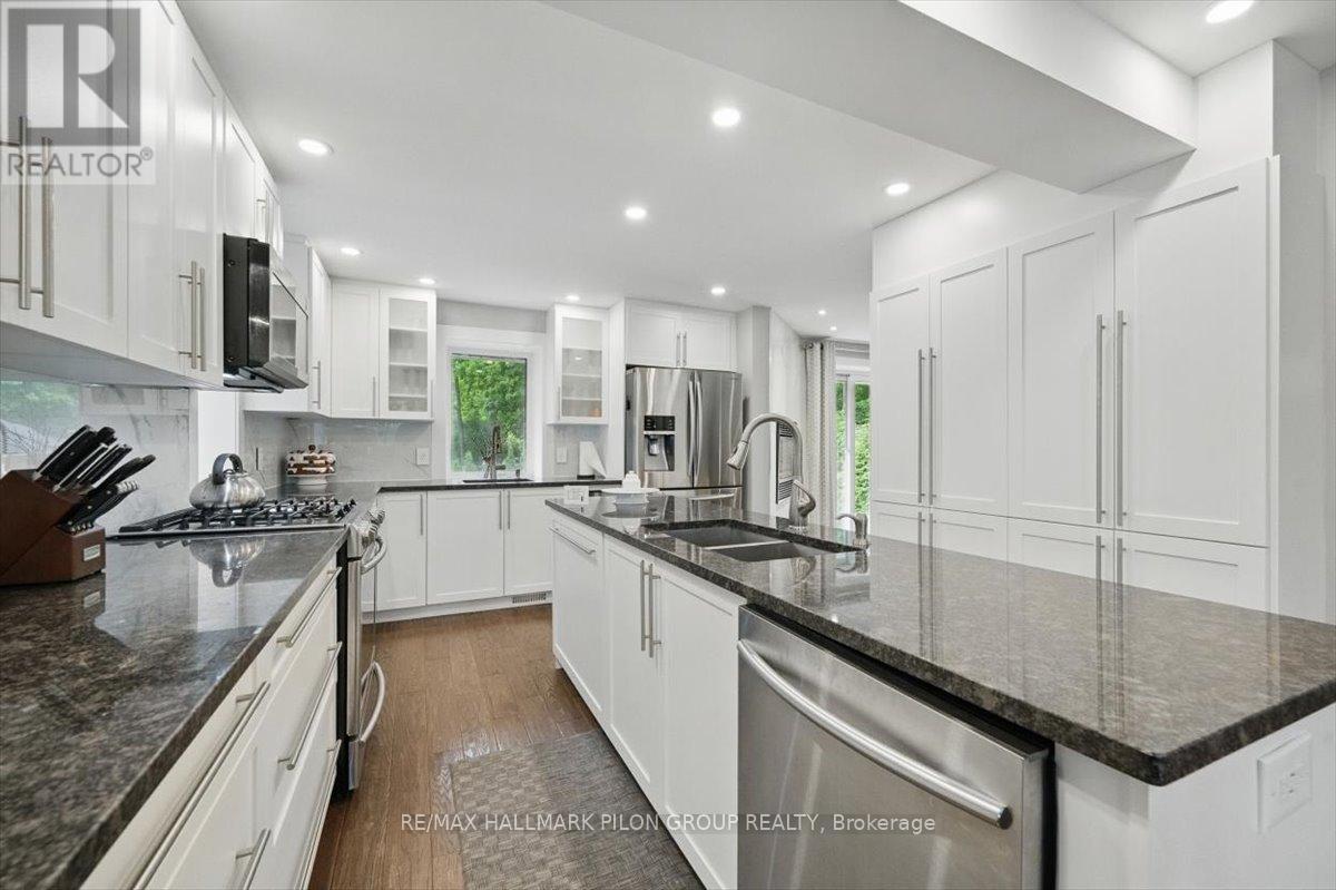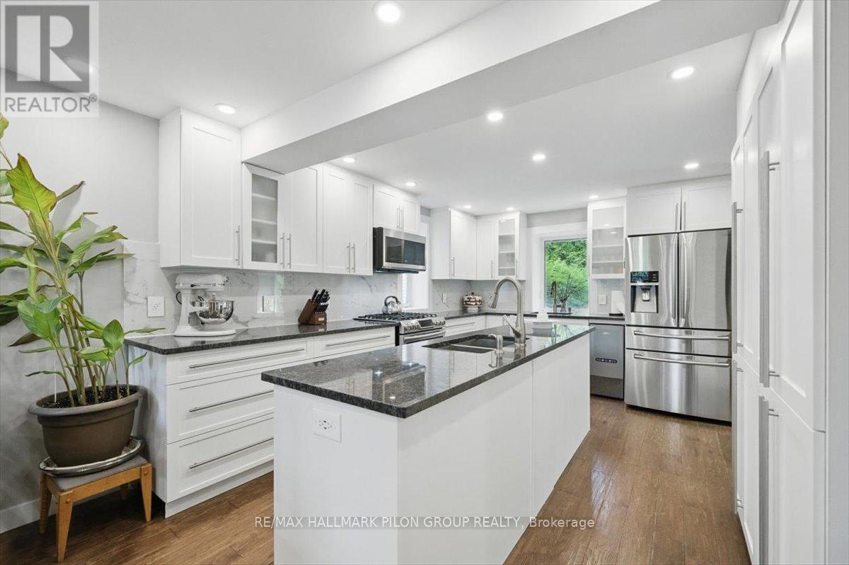 Designed with comfort & modern living in mind, this home offers a perfect blend of style, functionality and rich local history. Originally part of early military infrastructure, this remarkable property is also recognized as one of the original homes of Blackburn Hamlet-and among the oldest still standing-offering a rare opportunity to own a truly distinctive piece of the community's heritage.The kitchen is a true showstopper, fully renovated with oversized island featuring double prep sink, granite counters, marble backsplash, pots & pans drawers, ample cabinetry, built-in wine fridge, gas range, & SS appliances. A 2nd sink is perfectly positioned overlooking the backyard, adding both charm & practicality. The kitchen flows seamlessly into the dining area & a cozy LR anchored by a beautiful gas fireplace. A striking wood staircase w/ glass railing & lighted steps leads to the upper lvl, where you'll find the serene primary bedroom w/ WIC & updated ensuite. 3 additional bedrooms & fully renovated bathroom complete the 2nd floor.The LL offers flexibility with welcoming family rm featuring wet bar, large foyer, den that could easily become a 5th bedroom, full bath, & spacious laundry/utility rm with ample storage. W/ separate electrical panel in place & separate entrance, this lvl offers great potential.Outside, enjoy the fenced backyard w/ no neighbours on one side, offering added privacy. Entertain or unwind under the gazebo, soak in the hot tub, & enjoy the convenience of a natural gas BBQ hookup.Renovated in 2018 with attention to detail throughout, this home also features R60 attic insulation and foam insulation in the main floor exterior walls for energy efficiency. Additional upgrades include a 200 amp electrical service, generator wiring, Nest Protect system, & newer furnace, heat pump, A/C, & hot water tank, all installed in 2018. This home is carpet-free, move-in ready, & packed w/ potential. A rare find in a quiet, family-friendly community. (42007719)