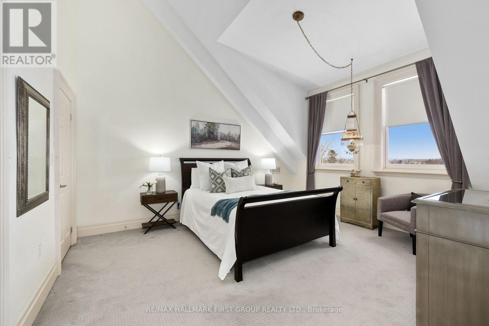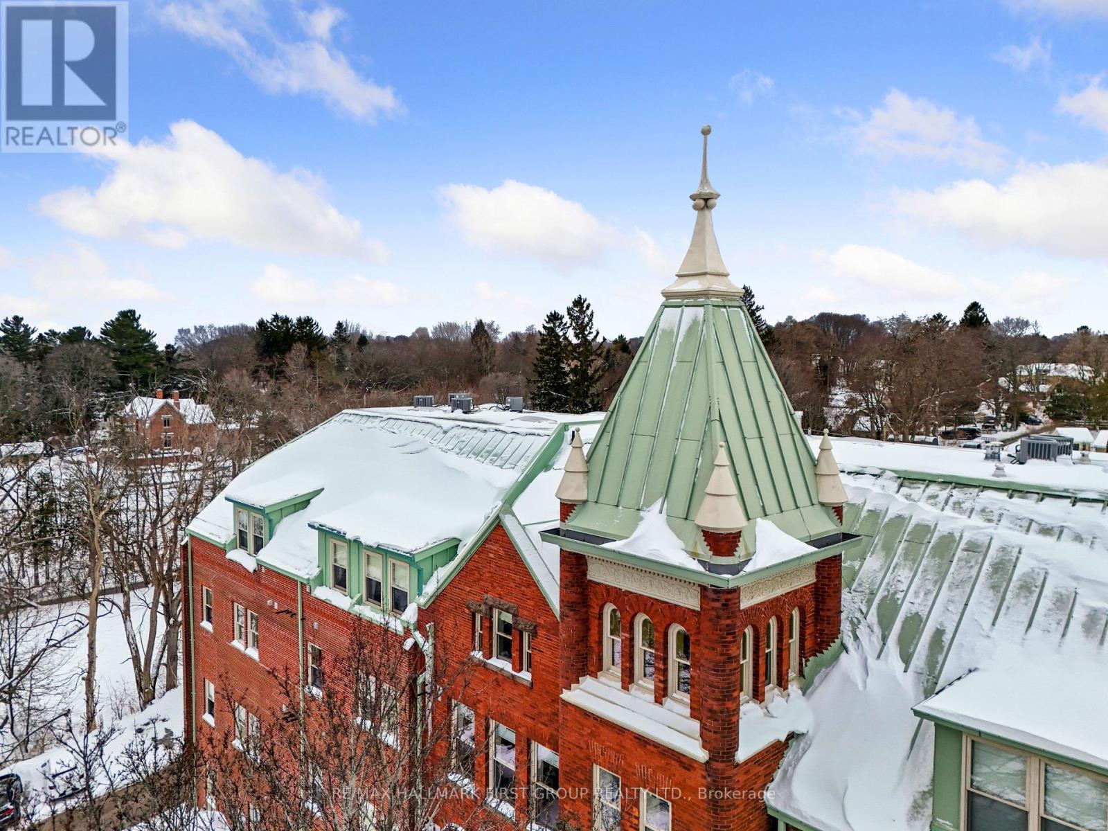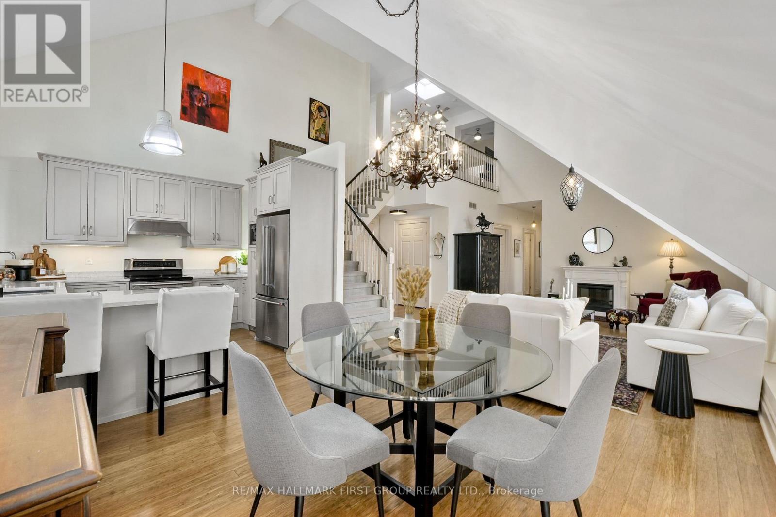 Welcome to The Pines in Port Hope, a boutique condominium conversion of a historic schoolhouse offering luxurious loft-style living. Renowned for its architectural character, soaring ceilings, and unbeatable location just moments from downtown, this unique residence blends timeless charm with modern comfort. The bright, open-concept living space features a carpet-free layout and a sun-soaked living room with dramatic vaulted ceilings. A well-appointed dining area flows seamlessly into the kitchen, where you'll find stainless steel appliances, ample cabinetry, a breakfast bar, and a large window over the undermount sink that fills the space with natural light. The main level offers a spacious primary suite with impressive ceiling height, a walk-in closet, and a spa-inspired ensuite complete with a glass-enclosed shower and separate soaker tub. An additional bedroom and full bathroom complete this level. Upstairs, the second level provides a generous family room with an office nook, along with a guest bedroom featuring a skylight for added brightness. The building includes garage parking and is conveniently located close to amenities, downtown Port Hope, and offers easy access to the 401. This is the low-maintenance lifestyle you've been looking for, without compromising on space, style, or character. (42007823)