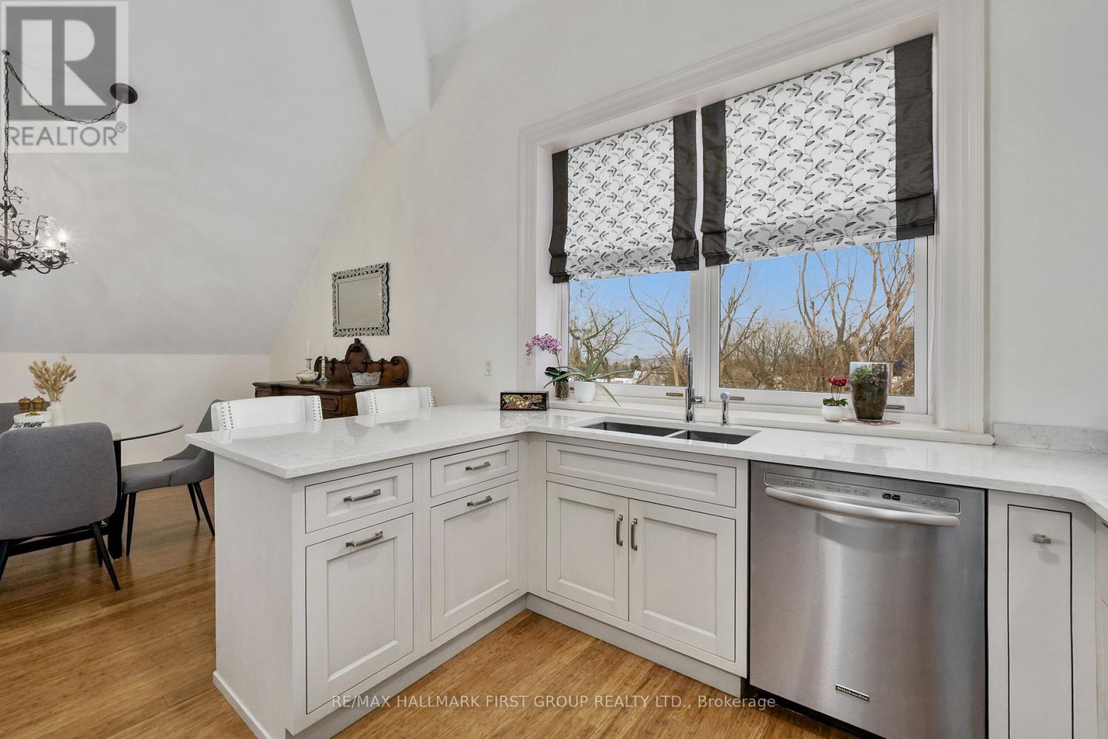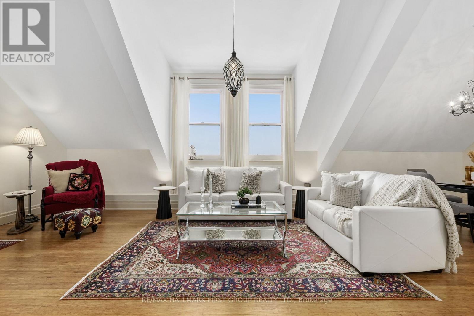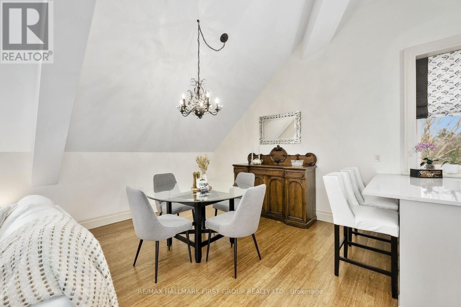 Welcome to The Pines in Port Hope, a boutique condominium conversion of a historic schoolhouse offering luxurious loft-style living. Renowned for its architectural character, soaring ceilings, and unbeatable location just moments from downtown, this unique residence blends timeless charm with modern comfort. The bright, open-concept living space features a carpet-free layout and a sun-soaked living room with dramatic vaulted ceilings. A well-appointed dining area flows seamlessly into the kitchen, where you'll find stainless steel appliances, ample cabinetry, a breakfast bar, and a large window over the undermount sink that fills the space with natural light. The main level offers a spacious primary suite with impressive ceiling height, a walk-in closet, and a spa-inspired ensuite complete with a glass-enclosed shower and separate soaker tub. An additional bedroom and full bathroom complete this level. Upstairs, the second level provides a generous family room with an office nook, along with a guest bedroom featuring a skylight for added brightness. The building includes garage parking and is conveniently located close to amenities, downtown Port Hope, and offers easy access to the 401. This is the low-maintenance lifestyle you've been looking for, without compromising on space, style, or character. (42007823)