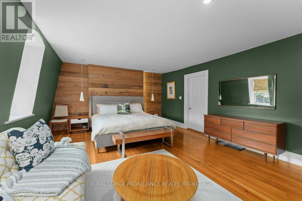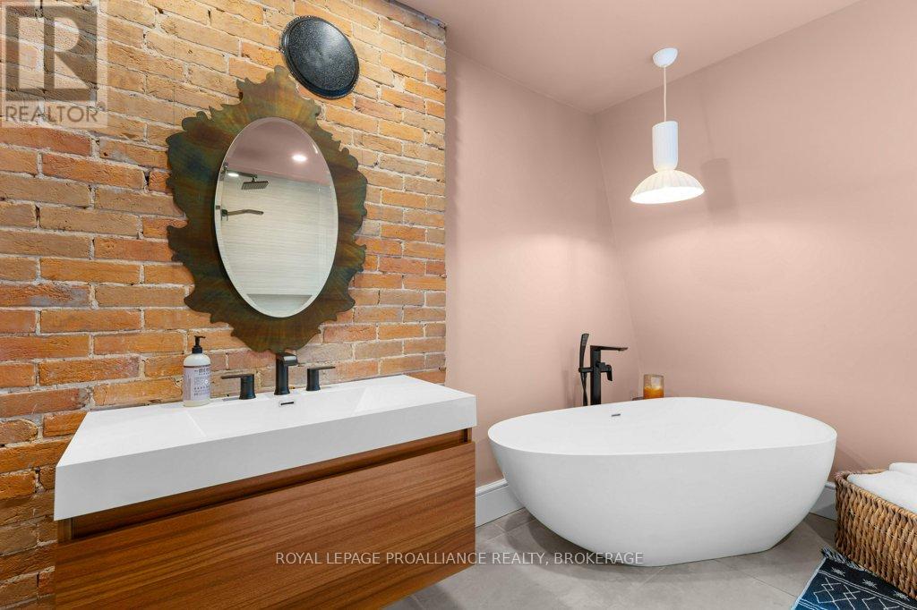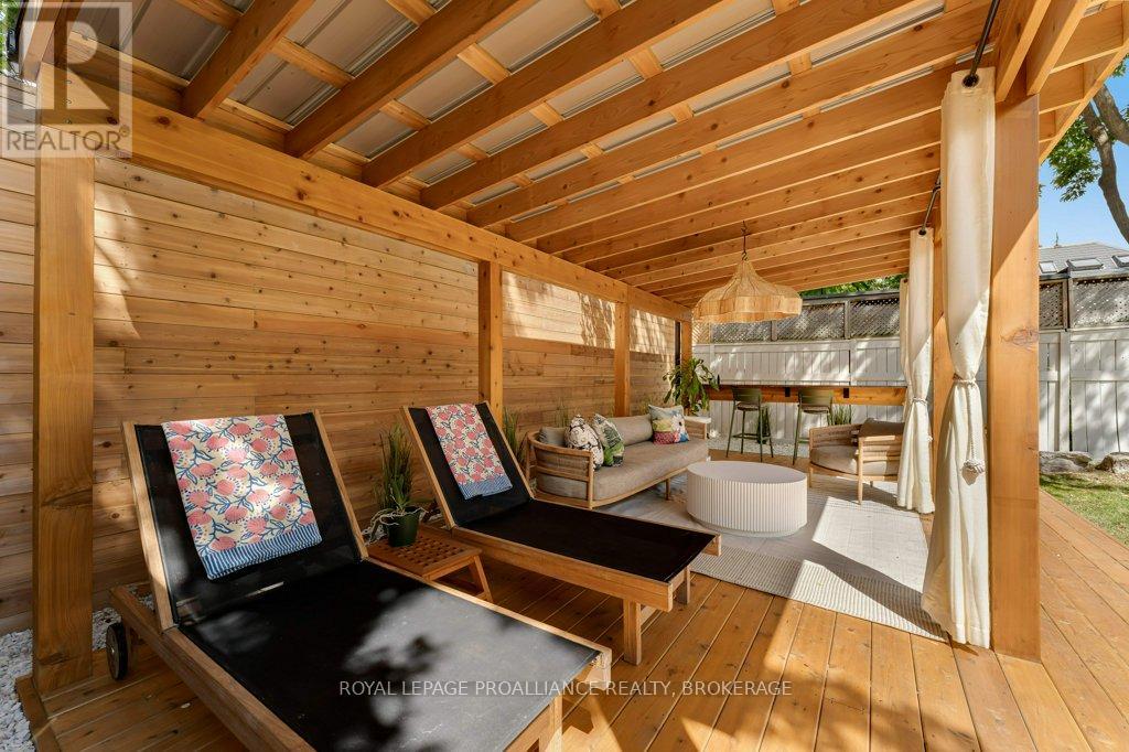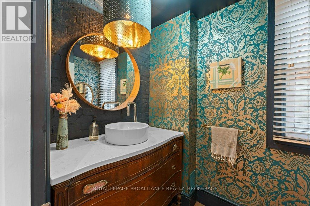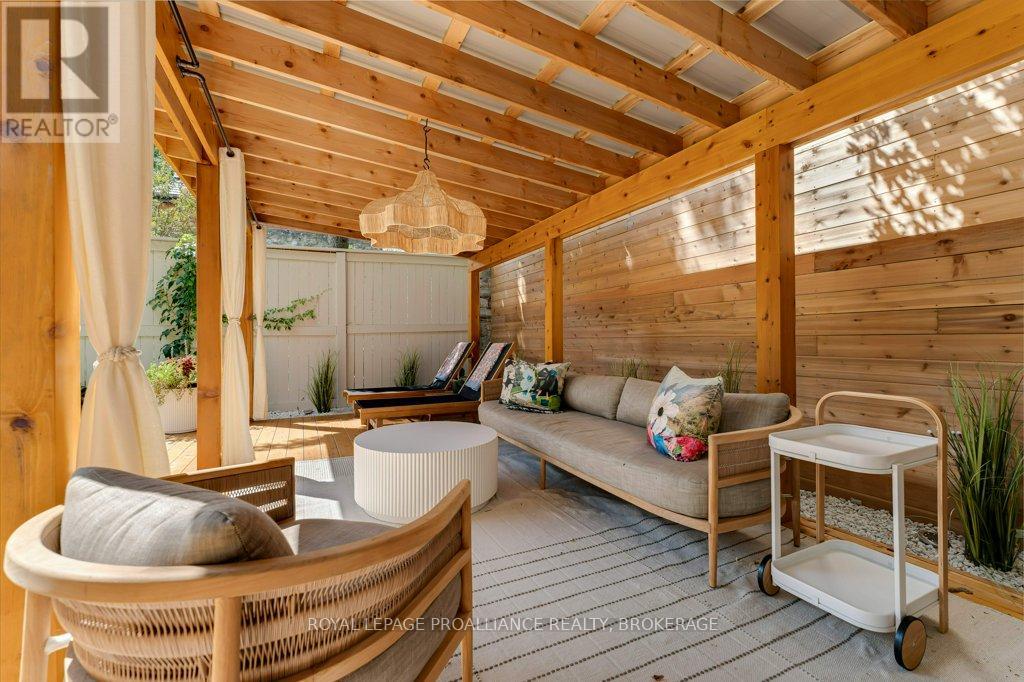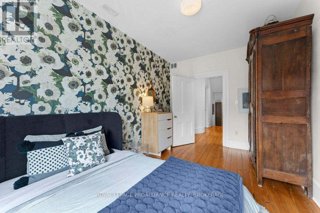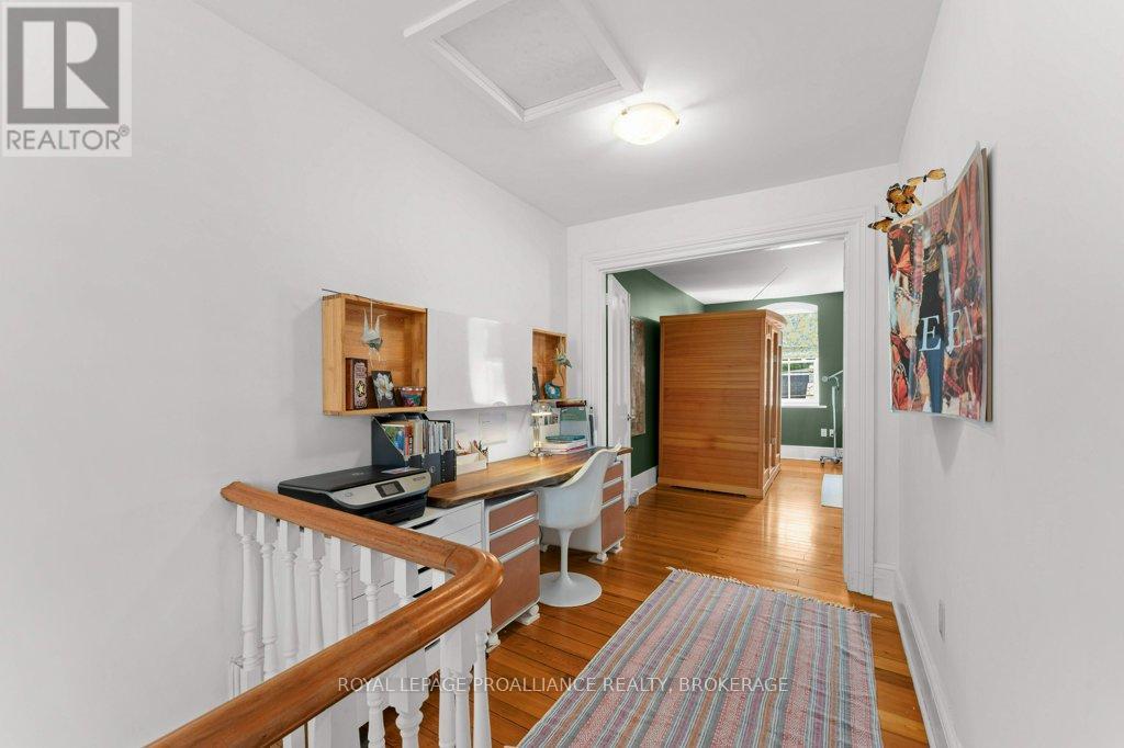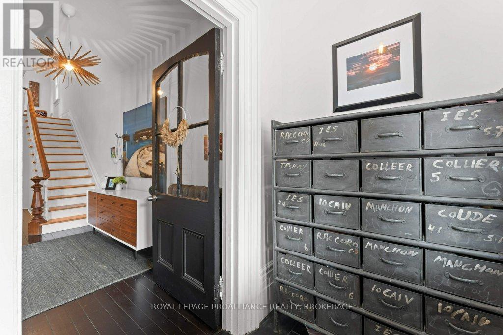 Rare opportunity to take over a piece of history with this classic and delightful five-bedroom family home, in the heart of the coveted Sydenham Ward in downtown Kingston. This charming residence was meticulously designed by renowned architect Jonathan Power in 1878, and benefits from a remarkably large garden, difficult ever to find in this central location, just steps from Market Square, KGH and Queens .Enjoy the comforts of modern living with a recent full renovation (designed by the interior designer owner) which included a new kitchen, luxurious bathrooms, and an elegantly finished basement equipped with 8 high ceilings and ample natural light. The expansive rear garden is a true gem, featuring a stylish deck and a European-style gazebo(just built), providing an idyllic space for relaxation and entertainment. Plus a gas fire piton the terrace to enjoy on cooler evenings. This home harmoniously blends classic architecture(both inside and out) with contemporary amenities. Enjoy the original restored radiators for character, alongside modern air conditioning on the top three storeys and efficient radiant heat from a new gas-fired boiler. From the fully restored front porch and balcony crafted with cedar and ipe wood to the inline parking accommodating up to three vehicles with a carport, every detail has been considered. With five generously sized bedrooms and three baths, there is plenty of room for the entire family to live and thrive. This is a unique opportunity to own a stunning home that offers both historic charm and modern convenience in the heart of Sydenham Ward. (42007921)