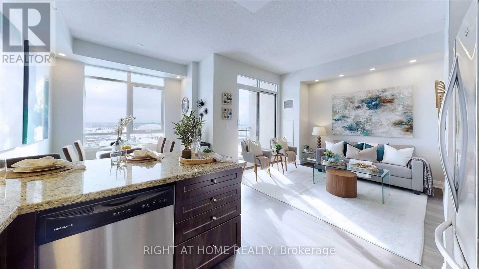 Experience upscale living in this stunning Penthouse Suite in the luxurious Allegra Condos. This beautifully designed One Bedroom + Den Suite offers a bright, open concept design with modern laminate flooring throughout. The kitchen features stainless steel appliances, stone countertops and a functional breakfast bar. The spacious living and dining area create an inviting space to relax or host. Retreat to the large primary bedroom, complete with a private ensuite bath & spacious walk-in closet. The sizeable den provides a versatile space ideal for a home office, study nook or extra storage. With 9' ceilings throughout, a private balcony and unobstructed south facing views, this Penthouse Suite delivers a wonderful living experience! (42007966)