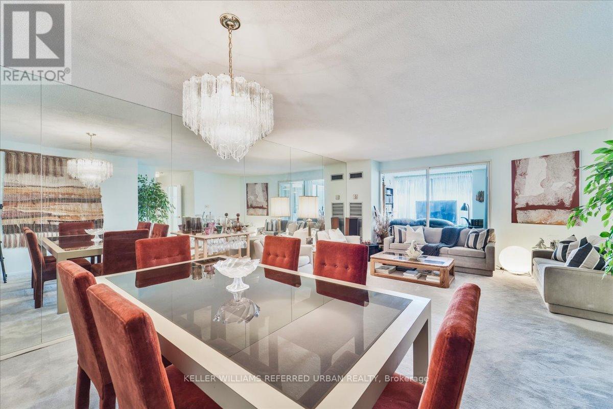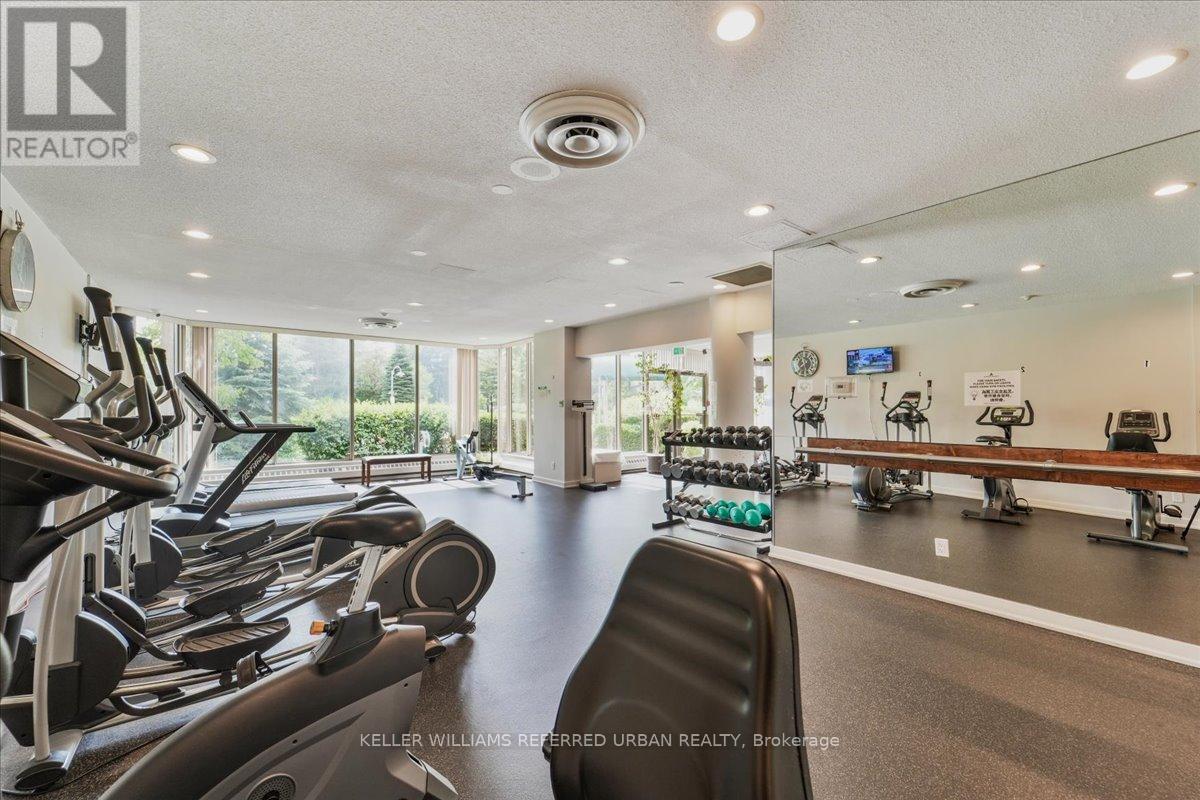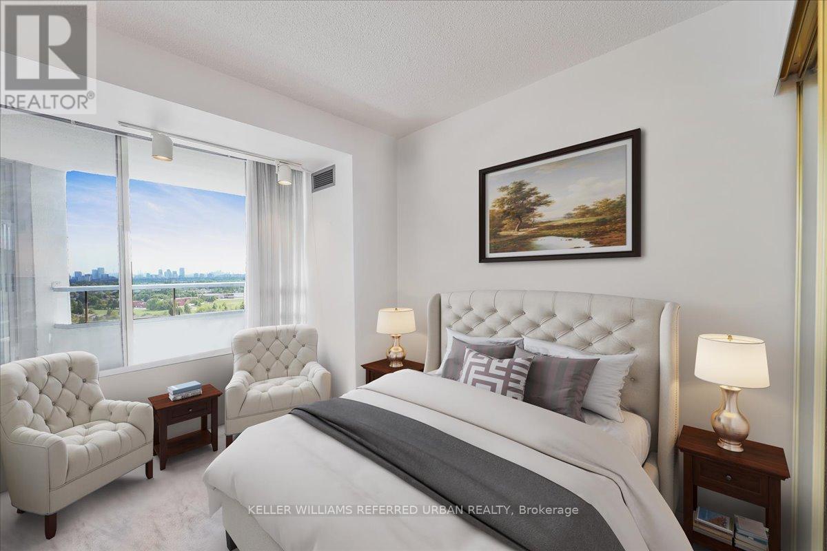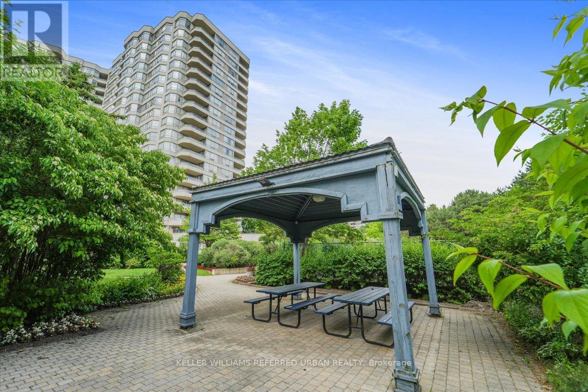 Fabulous bright and super spacious 2+1 bed / 2 full bath 1400+ Sq ft corner condo has 2 parking spots! Friendly well-managed building in an established residential community. Resort style amenities is the cherry on top! Exciting floor plan offers an eat in kitchen that walks out to a private balcony. The open-concept living and dining area allows for an abundance of natural light and the den/family room area with walkout provides additional living space or a perfect work-from home option! Generous Primary bedroom features a large walk-in closet and a private 4-piece ensuite bath - spectacular south/west views. The second bedroom and full 3 piece guest bath add flexibility for families or downsizers. Four walkouts to a private south facing balcony with unobstructed city skyline & sunset views. Includes two underground parking spots and one storage locker + All utilities - including cable TV! Cancel your club membership - residents here enjoy a full range of resort style amenities including 24-hour security, indoor pool/hot tub/sauna, gym, tennis courts, party room, squash, billiards++ Ideally located close to TTC transit, highways 401/404/407, schools, shopping, and restaurants. (42008360)
