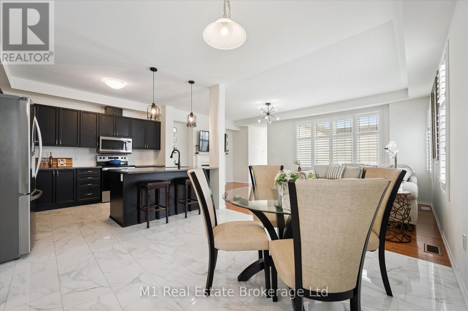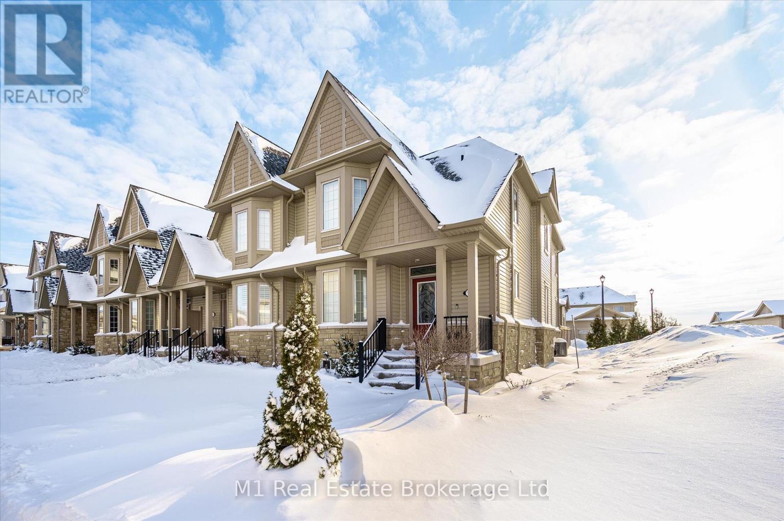 Welcome to Unit 1 at 45 Elliot Ave East in Fergus, an end-unit townhome offering added privacy and extra natural light in a quiet, pedestrian-friendly courtyard with a parkette just steps from the front door. The main floor features upgraded vinyl and tile flooring and a functional open layout connecting the kitchen, dining, and living areas. The kitchen includes granite countertops. Just off the garage, you'll find a convenient laundry area and powder room that work well as a practical mudroom space. Upstairs, the primary bedroom includes its own ensuite and a walk-in closet, with two additional well-sized bedrooms and a full bathroom. The fully fenced backyard offers extra privacy along the end side of the home and provides a great space for relaxing, entertaining, or outdoor play with a low-maintenance setup. Parking is easy with an attached garage and a private driveway accessed from the rear. Located within walking distance to schools, trails, parks, and shopping, this home offers comfortable living with the added benefit of an end-unit location in one of Fergus's most desirable communities. (42008563)