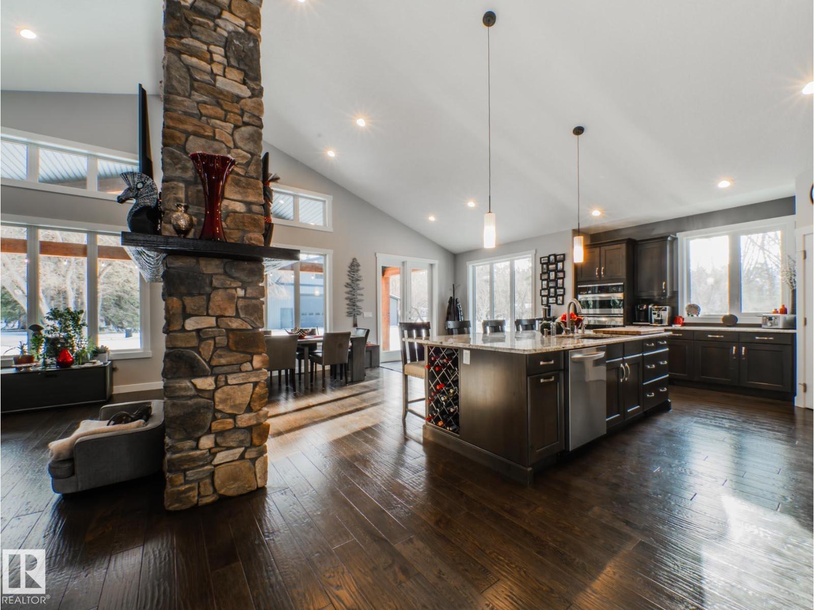 Ellie is Rare. This “Acreage-In-The-City” Executive Bungalow is set on a private, fully fenced 3-acre parcel in South Edmonton. Once a tree farm, transformed in 2014 into a custom Estate. Built with commercial-grade construction, systems, and high end finishings , no expenses were spared. Surrounded by mature trees, it offers estate-style privacy while remaining in Edmonton, close to schools, and shopping. This property features a 64’ x 64’ executive heated shop with additional sqft above—ideal for a home-based business, hobbies, storage, or workspace. This 2,071 sqft Executive bungalow offers 4 bedrooms, vaulted ceilings, a wet bar, fully finished basement, and 3-zone heating and cooling with central A/C. The attached garage includes a pressure washer, air compressor, and central vacuum. Acreage-grade infrastructure includes a cistern, well, and an advanced septic treatment system, RV/trailer parking, and low-maintenance exposed aggregate concrete, making this a one of a kind acreage in the City! (33754841)