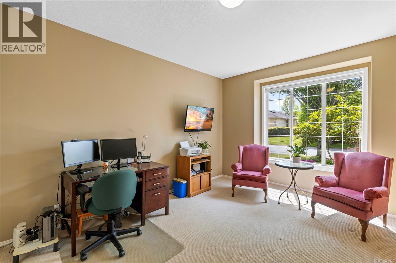 Situated in the desirable 55+ community of The Terraces, this main-level entry townhouse with a walk-out basement offers a practical and inviting layout in a convenient North Nanaimo location close to all amenities. The open-concept main floor boasts a living room with a gas fireplace, dining area, and kitchen equipped with eating bar and 3 appliances. A balcony off the living room with distant ocean views provides a peaceful outdoor space. On this level, you'll also find two bedrooms, including the primary with dual closets and three-piece ensuite, as well as a four-piece main bathroom and laundry area. The lower level includes a spacious family room, third bedroom, and three-piece bathroom—ideal for guests. Additional features include a storage area and a dark room with a sink, perfect for creative projects. The complex features a strong sense of community, a clubhouse, and permits one dog or cat up to 12kg. All data and measurements are approx and must be verified if fundamental. (30307982)