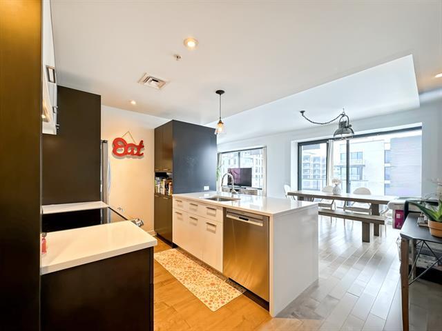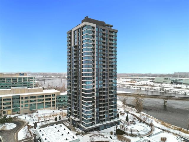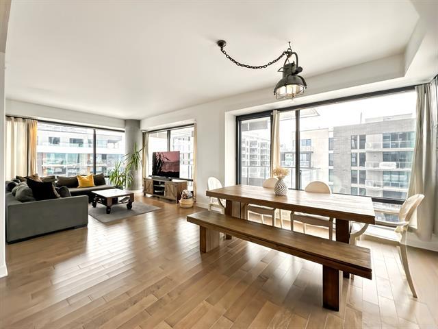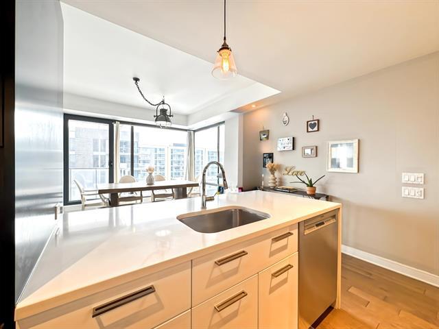 Corner condo offering 2 bedrooms and 2 full bathrooms, filled with natural light and featuring 1,020 sq. ft. of well-designed living space. Located on the 5th floor of the prestigious Evolo 1 building, in the sought-after Pointe-Nord area of Île-des-Soeurs, this unit stands out with its breathtaking panoramic views. The open-concept layout combines modern comfort and elegance and opens onto a large private balcony. Appliances are included, along with one indoor parking space (garage) and an indoor storage unit. (42967600)