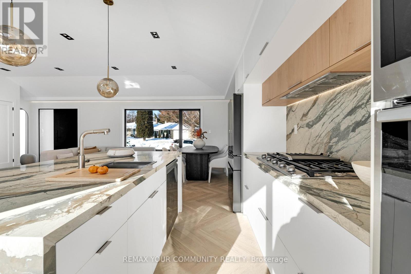 Stunning fully renovated side-split in the heart of Bayview Village. Rebuilt with closed permits, this 4+1 bedroom home features a bright, open-concept layout designed by architectural plans, soaring ceilings up to 10 ft on the main floor, and custom designer LED lighting.The entire home has been spray-foam insulated, including full insulation in all walls and ceilings, with all-new framing, windows, and doors. Major upgrades include a new roof and skylight (2025), a 200-amp electrical panel with new wiring throughout, completely updated plumbing with new underground drainage, a new 50-gallon hot water tank, and a waterproofed foundation with damp proofing, weeping tile, sump pump, and backflow prevention valve.This home offers two kitchens and two laundry areas with a separate entrance, ideal for in-law living or additional income potential. Set on a rare wide lot expanding to approximately 69 ft at the rear, the property also features a new asphalt driveway, a new deck, a fully redesigned backyard with fresh landscaping, and a private outdoor seating area with a gas line for BBQ and fire pit.Easily accessible to major highways, and close to excellent schools, hospitals, libraries, and shopping. with just minutes' walk to ravine trails-offering and Tennis court, the perfect combination of convenience and lifestyle. (42008923)