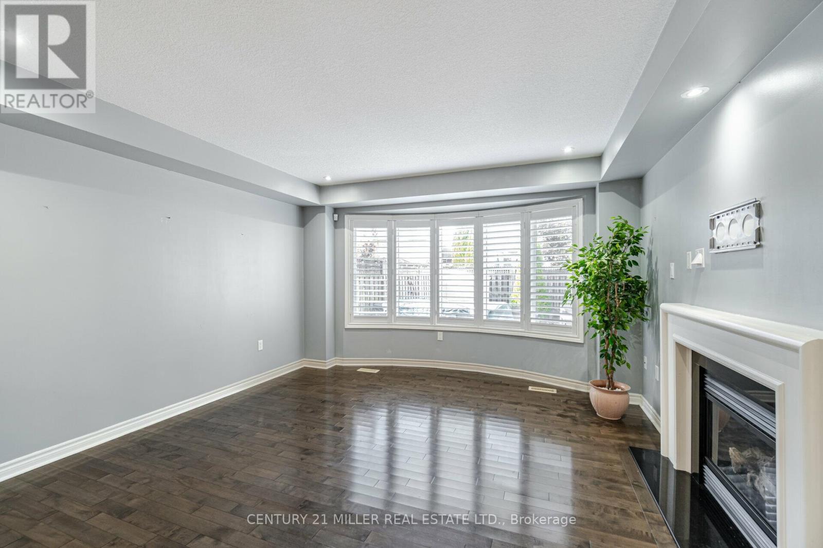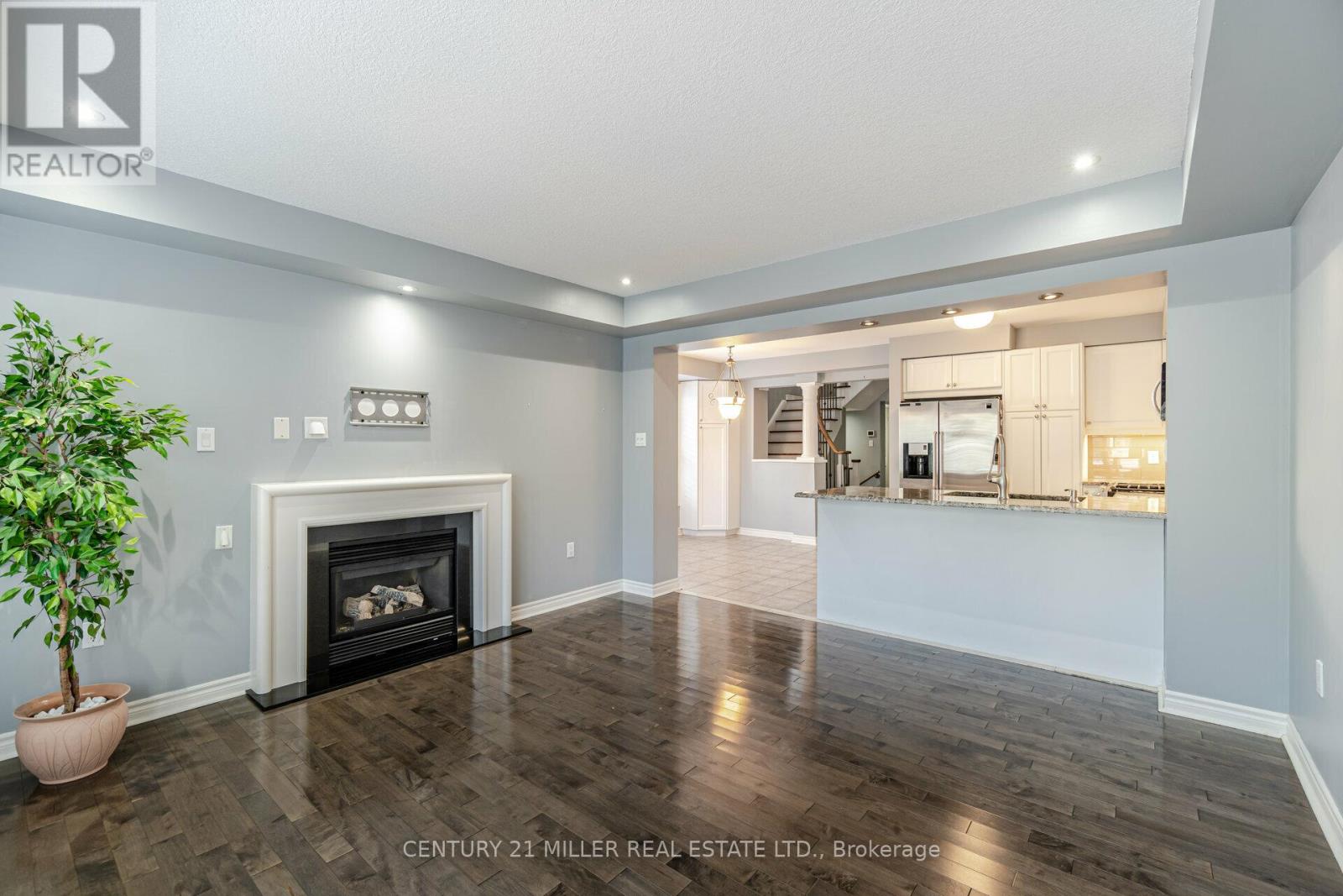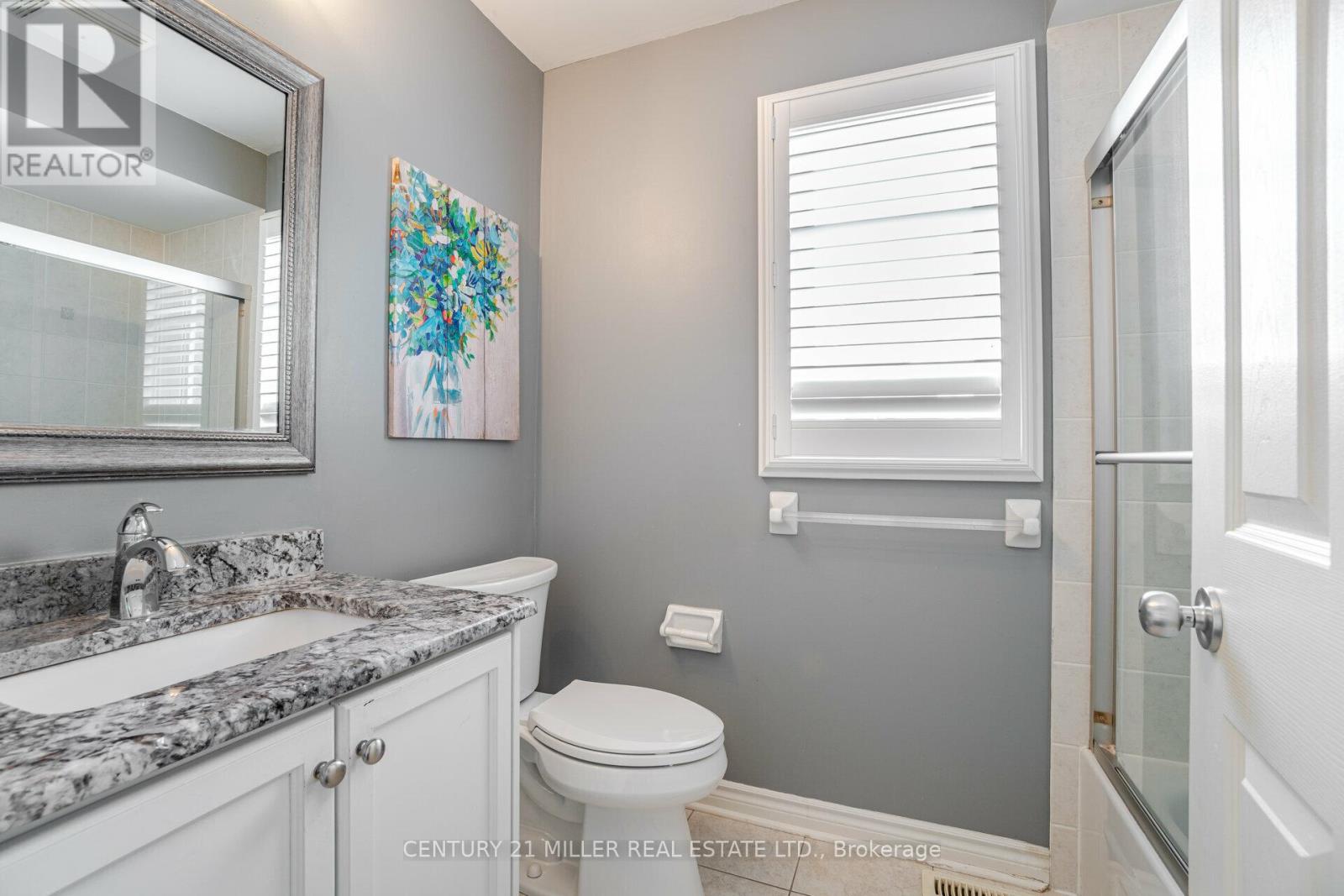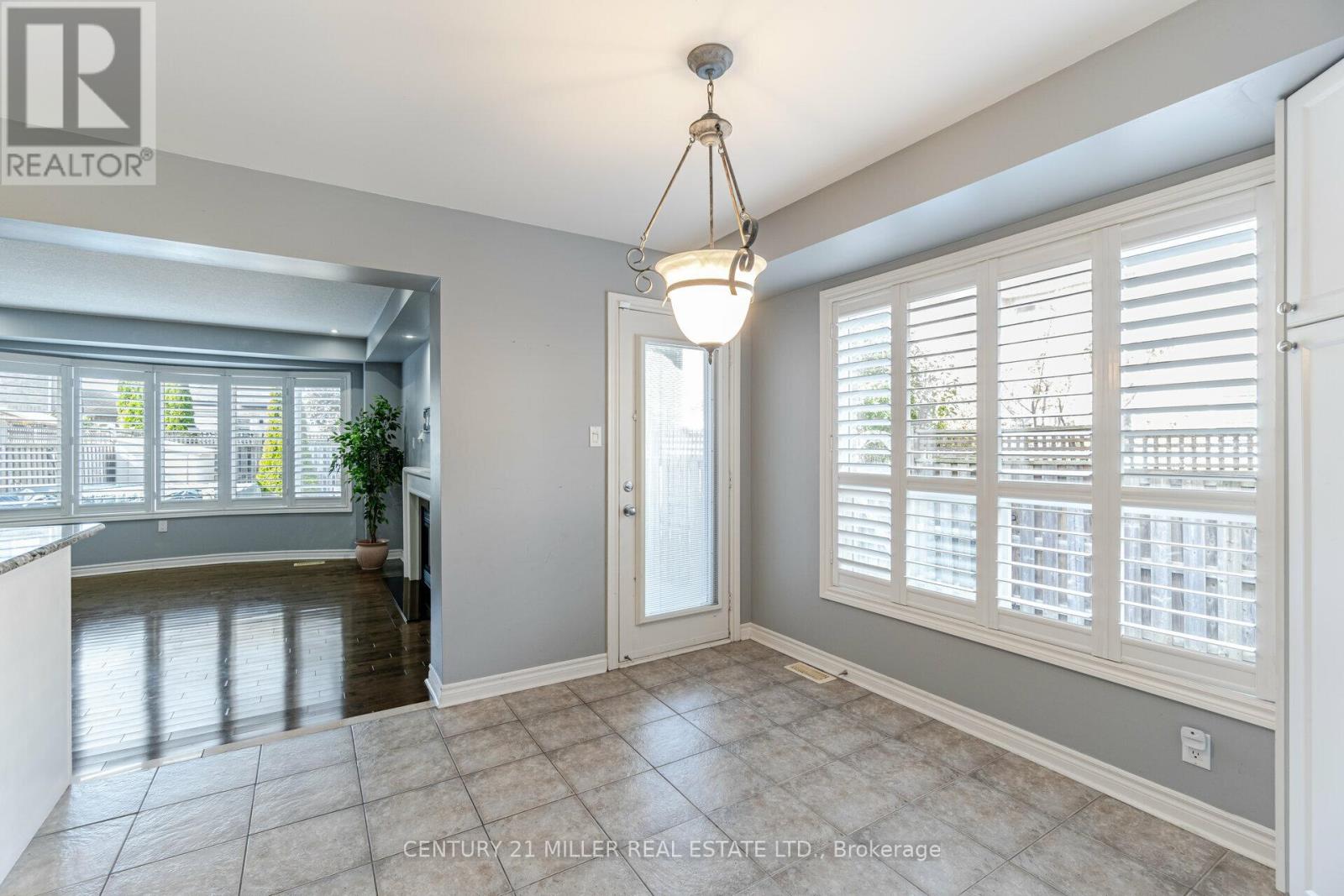 Beautiful End Unit 3 Bed, 4 Bath Freehold Townhome in Prestigious Millcroft. Hardwood flooring and California shutters throughout. Separate dining room. Spacious eat-in kitchen features granite countertops, ample cabinetry, pot lights, under-mount lighting, ceramic tile flooring, and garden door walk-out to backyard. Bright open-concept living area with maple hardwood floors, gas fireplace, and bow window overlooking the backyard. Upper level offers hardwood flooring and iron picket staircase. Large primary bedroom with walk-in closet, second closet, and 4-pc ensuite with granite counter, separate shower, and soaker tub. Generous second and third bedrooms with neutral carpet and double closets. Second 4-pc bath with granite counter and tub/shower combo. Open loft/office space with skylight. Finished lower-level media room with neutral ceramic tile flooring.Close To Shopping, Parks, Highways And Fantastic Schools (42009009)