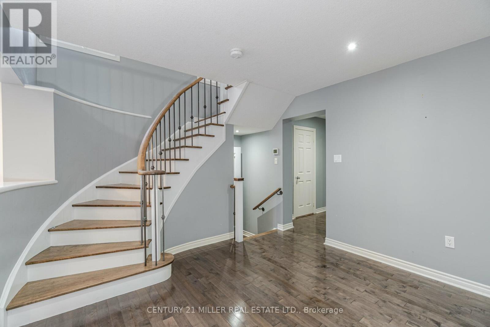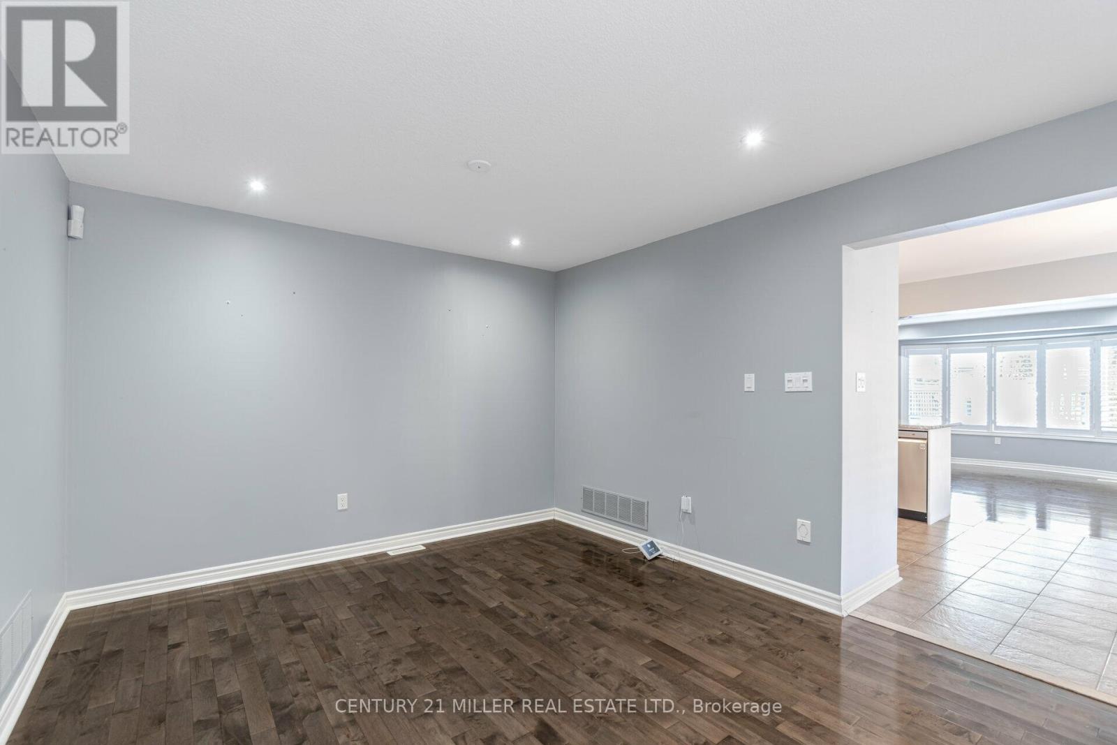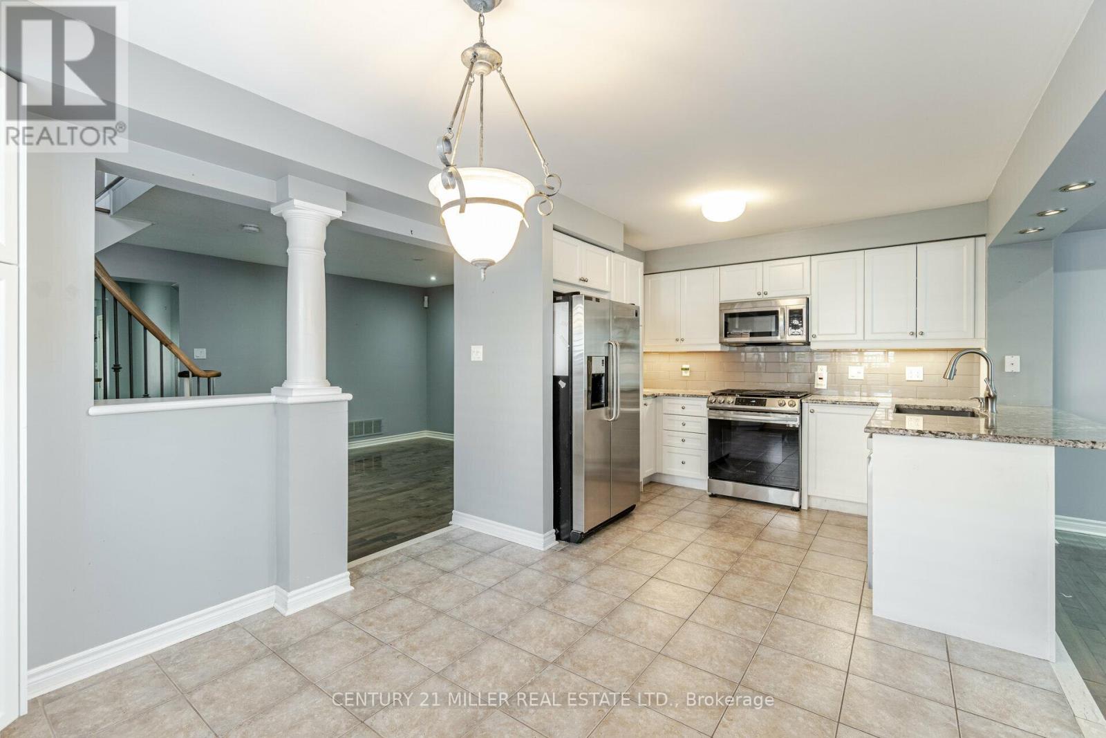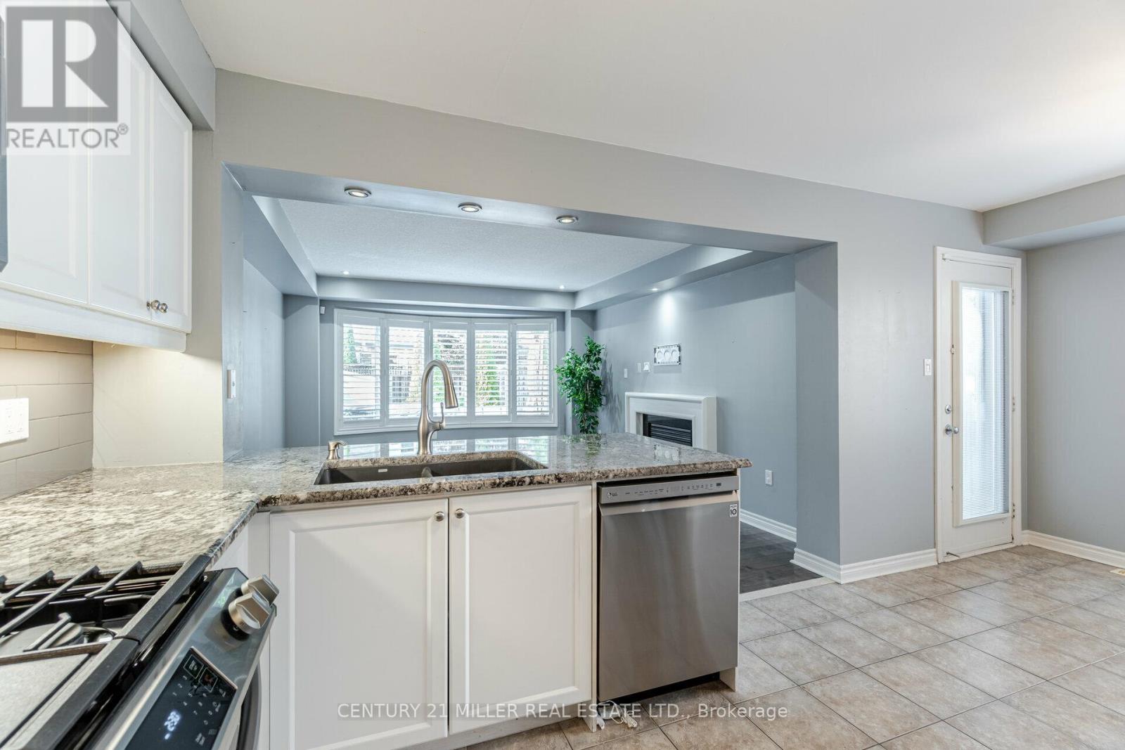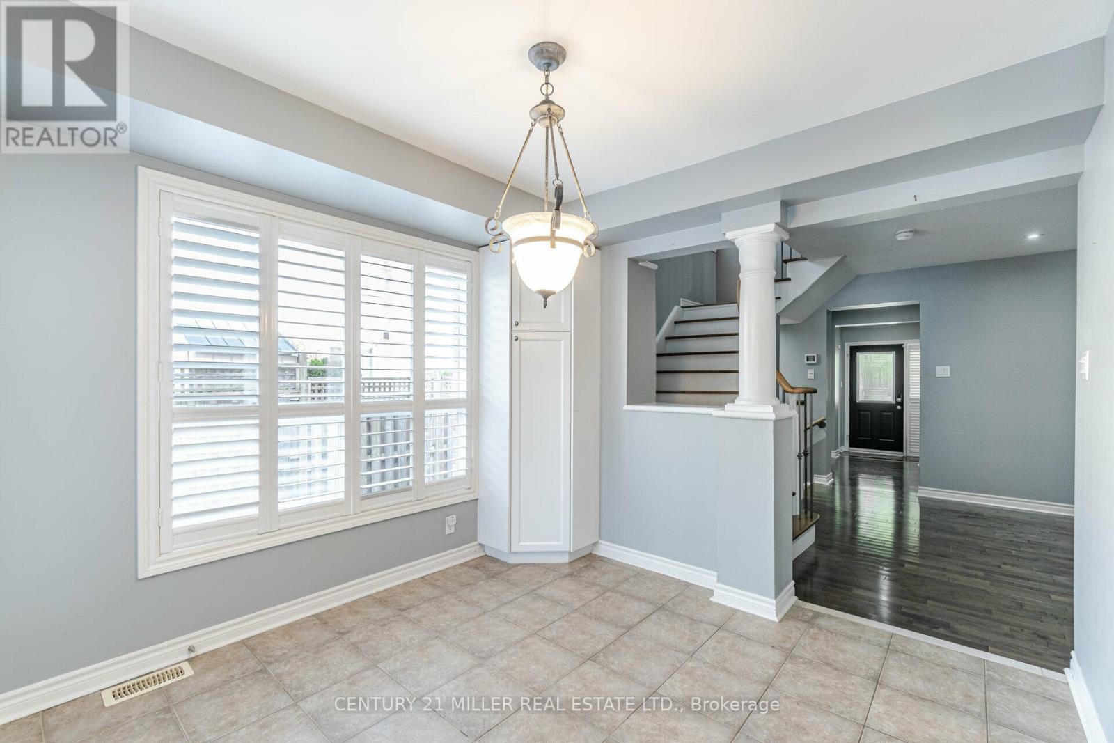 Beautiful End Unit 3 Bed, 4 Bath Freehold Townhome in Prestigious Millcroft. Hardwood flooring and California shutters throughout. Separate dining room. Spacious eat-in kitchen features granite countertops, ample cabinetry, pot lights, under-mount lighting, ceramic tile flooring, and garden door walk-out to backyard. Bright open-concept living area with maple hardwood floors, gas fireplace, and bow window overlooking the backyard. Upper level offers hardwood flooring and iron picket staircase. Large primary bedroom with walk-in closet, second closet, and 4-pc ensuite with granite counter, separate shower, and soaker tub. Generous second and third bedrooms with neutral carpet and double closets. Second 4-pc bath with granite counter and tub/shower combo. Open loft/office space with skylight. Finished lower-level media room with neutral ceramic tile flooring.Close To Shopping, Parks, Highways And Fantastic Schools (42009009)