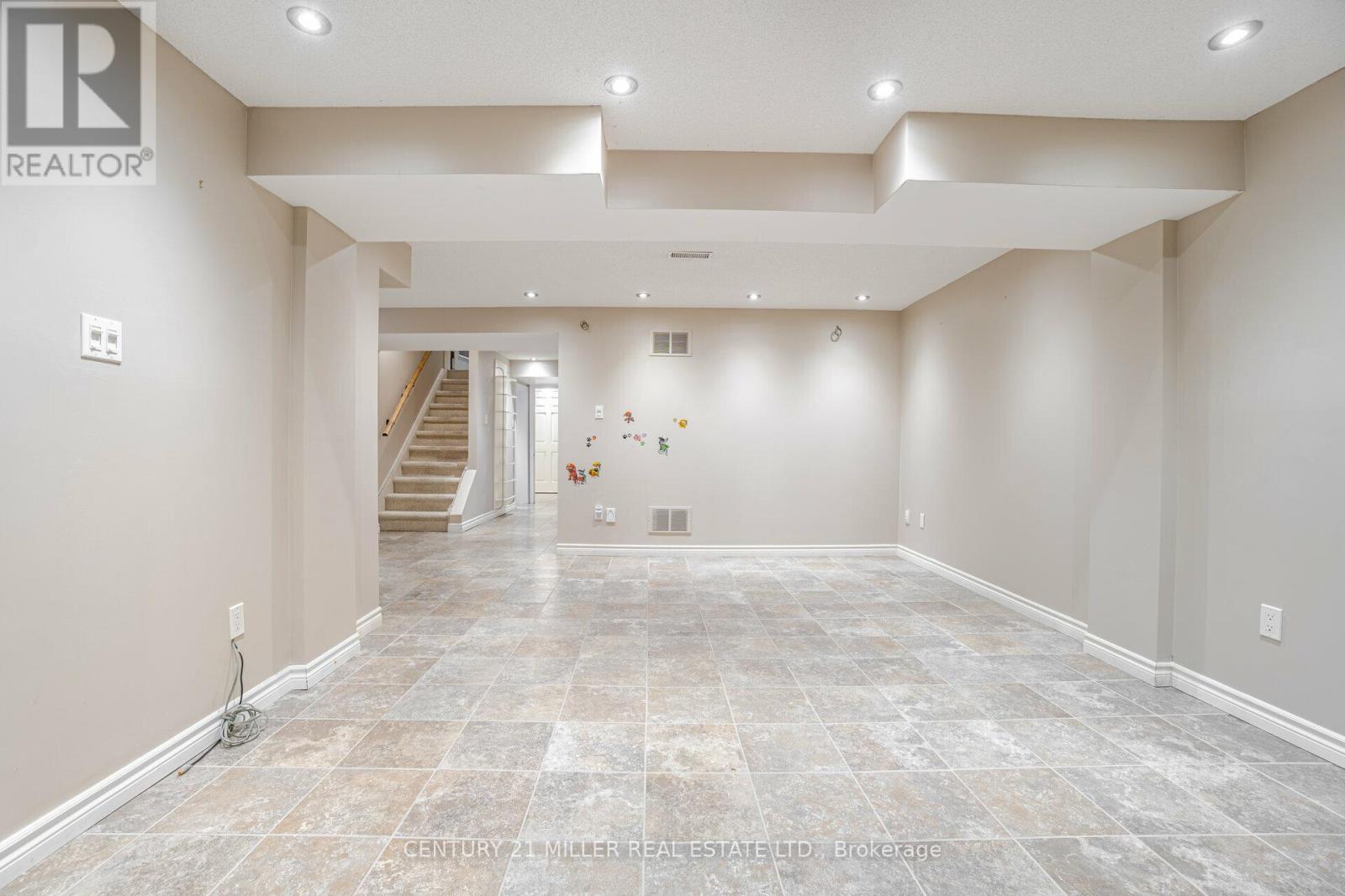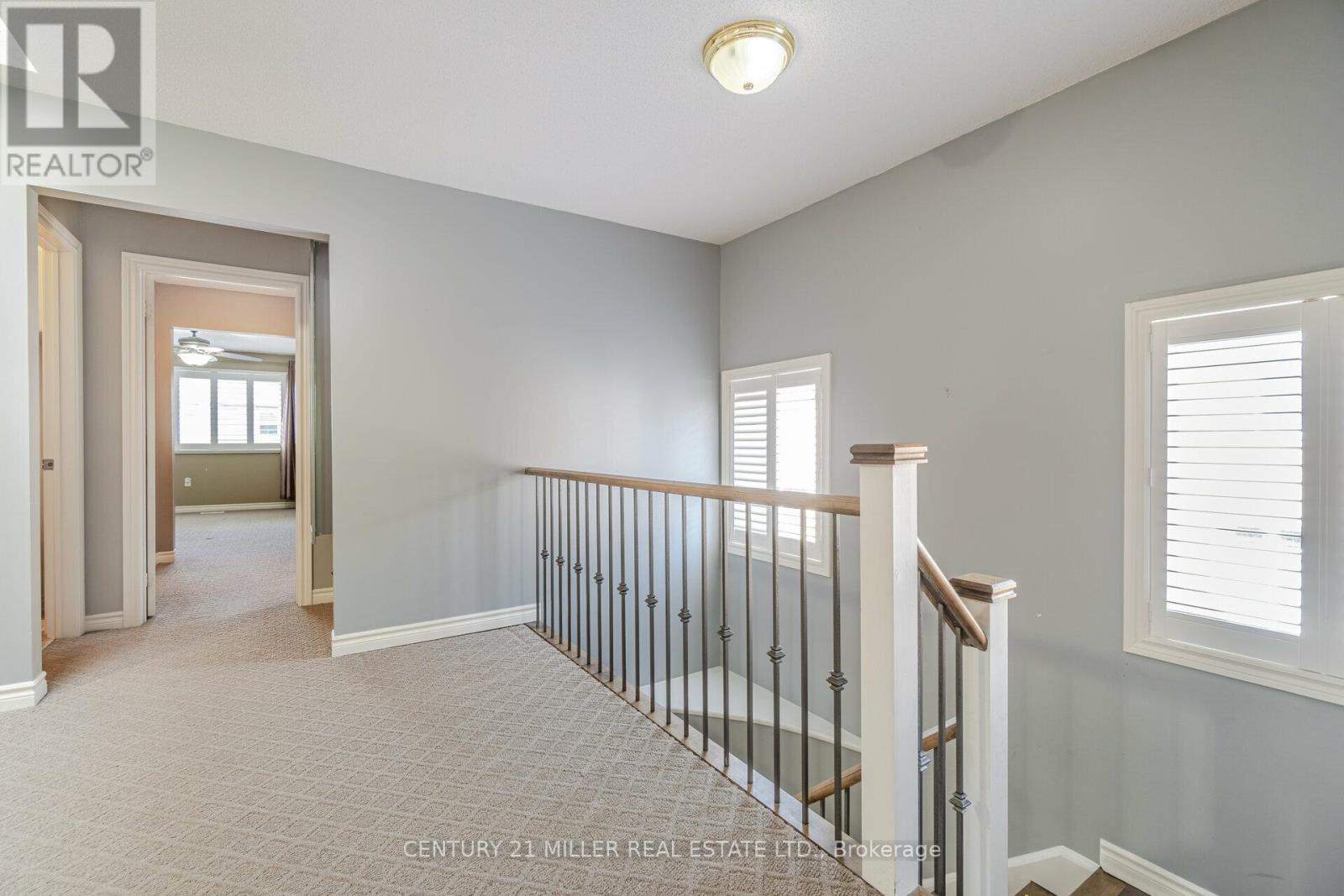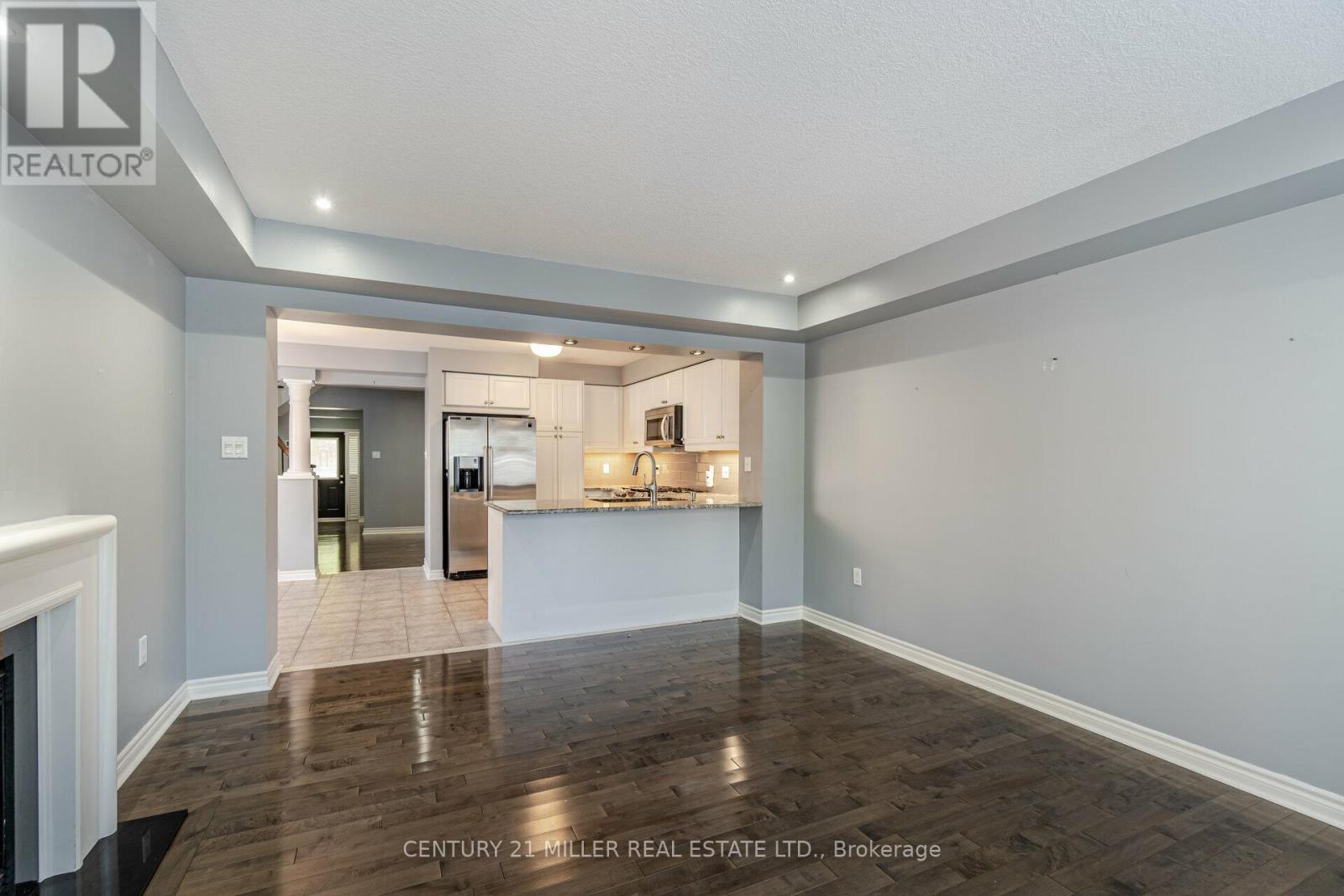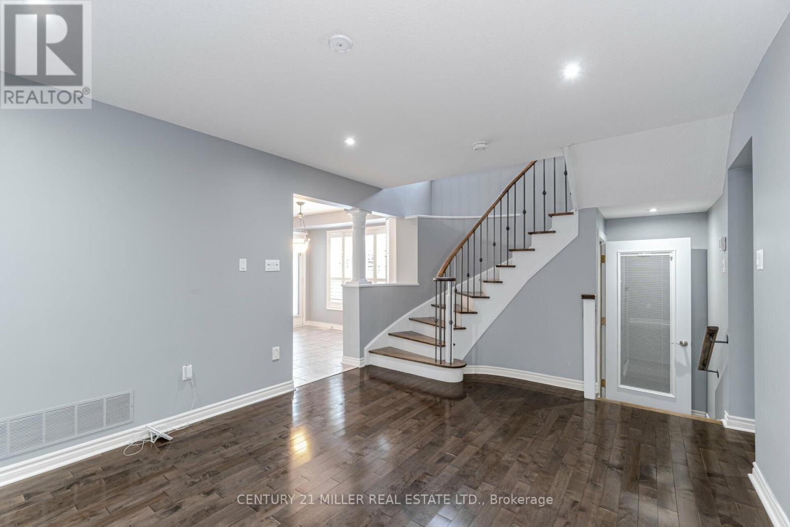 Beautiful End Unit 3 Bed, 4 Bath Freehold Townhome in Prestigious Millcroft. Hardwood flooring and California shutters throughout. Separate dining room. Spacious eat-in kitchen features granite countertops, ample cabinetry, pot lights, under-mount lighting, ceramic tile flooring, and garden door walk-out to backyard. Bright open-concept living area with maple hardwood floors, gas fireplace, and bow window overlooking the backyard. Upper level offers hardwood flooring and iron picket staircase. Large primary bedroom with walk-in closet, second closet, and 4-pc ensuite with granite counter, separate shower, and soaker tub. Generous second and third bedrooms with neutral carpet and double closets. Second 4-pc bath with granite counter and tub/shower combo. Open loft/office space with skylight. Finished lower-level media room with neutral ceramic tile flooring.Close To Shopping, Parks, Highways And Fantastic Schools (42009009)