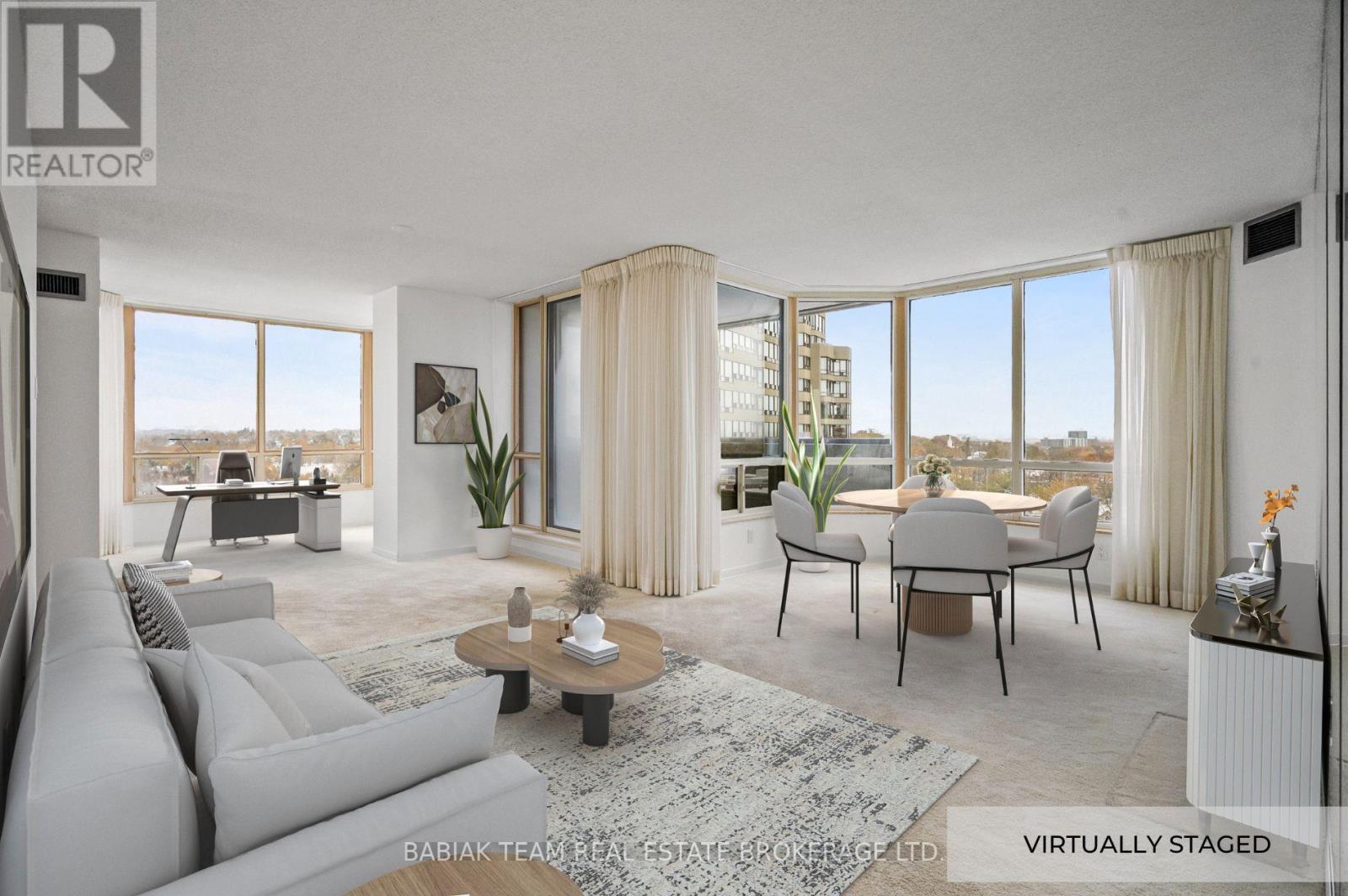 Welcome to Suite #1601 - 2-bedroom plus den, 2-bathroom corner suite boasting panoramic golf course and sunset views in the sought-after Barclay Terrace. Spanning approximately 1,485 sq. ft., this light-filled residence offers generous living spaces, including combined living & dining rooms with a walkout to a covered balcony, a window-wrapped den, a family room with a passthrough to an eat-in kitchen featuring stainless steel appliances. The spacious primary retreat features both a double closet and a walk-in closet, along with an ensuite bath complete with a large soaking tub, separate shower, and vanity. Additional highlights include in-suite laundry and storage locker, and one parking space.Monthly maintenance fees conveniently cover cable TV, A/C, heat, hydro, and water. Residents enjoy an impressive array of amenities such as an indoor pool, fitness centre, squash and tennis courts, sauna, concierge, and visitor parking. Ideally located just steps to charming Islington Village with its shops, cafes, and pubs, the Islington subway, Mimico Creek trails, and Montgomery's Inn with its popular farmer's market. A rare opportunity to own a spacious and sunlit suite in a desirable Etobicoke community. (42009130)